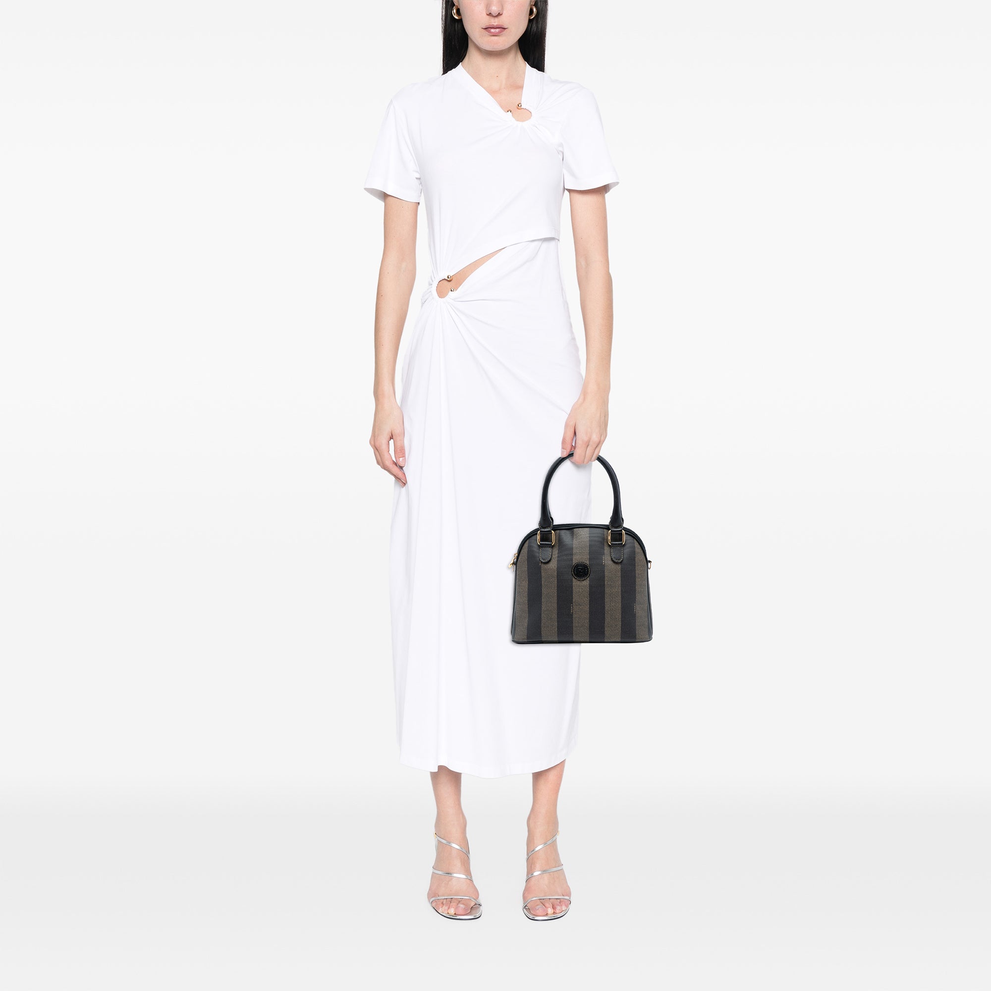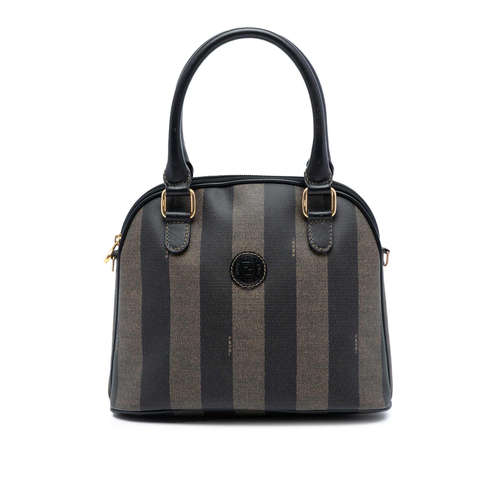 Brown Fendi Pequin Coated Canvas Dome Satchel