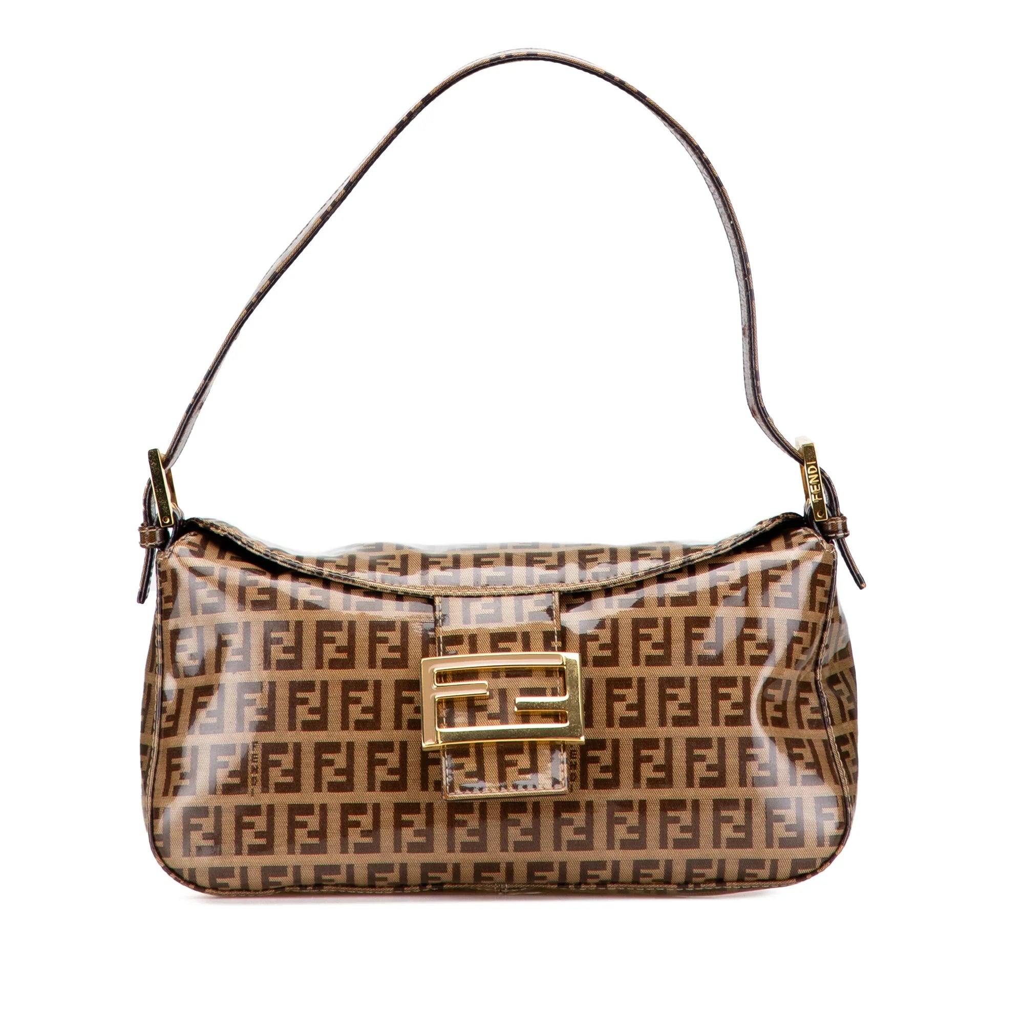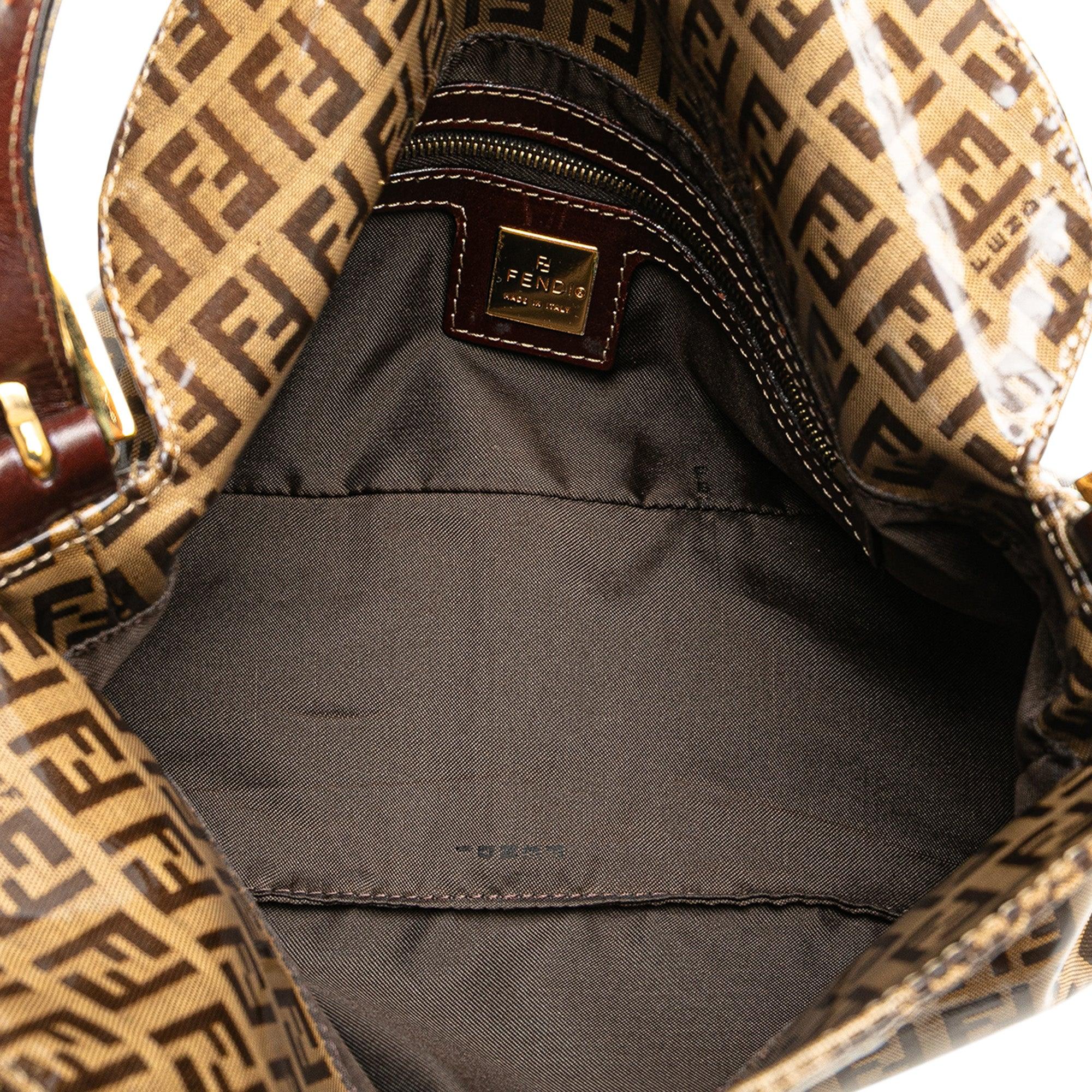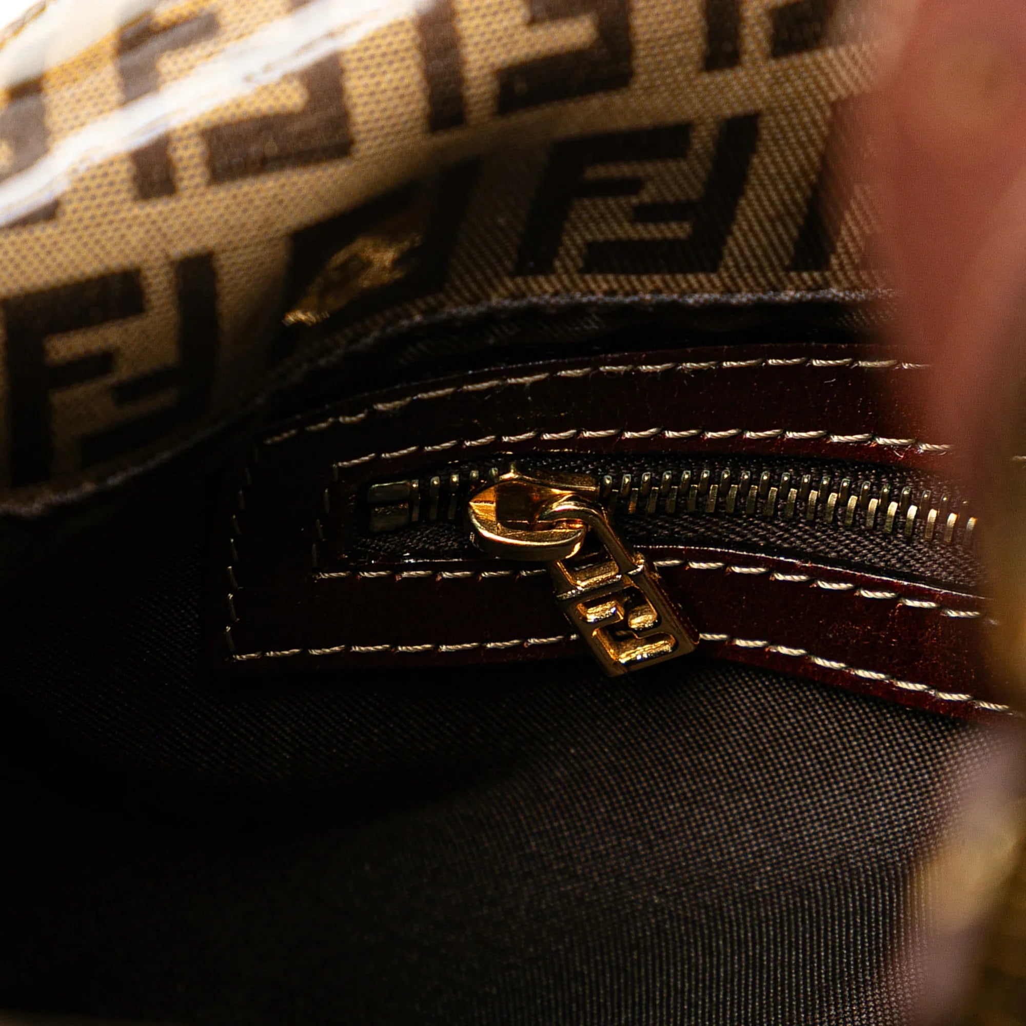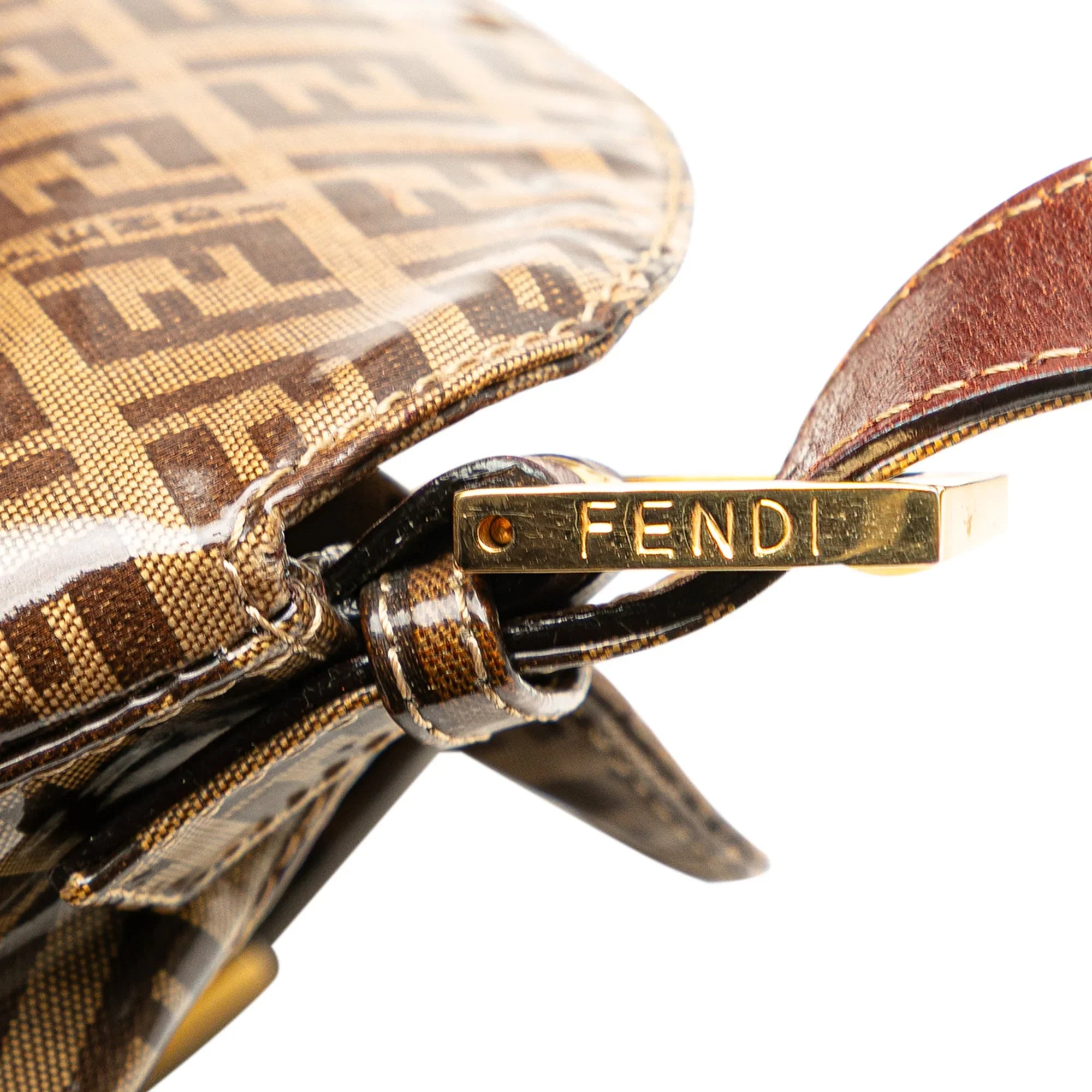 Brown Fendi Zucchino Crystal Double Flap Shoulder Bag