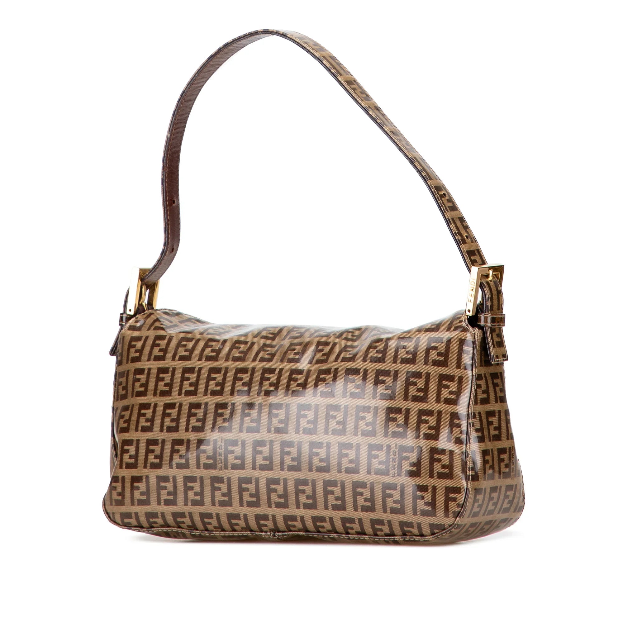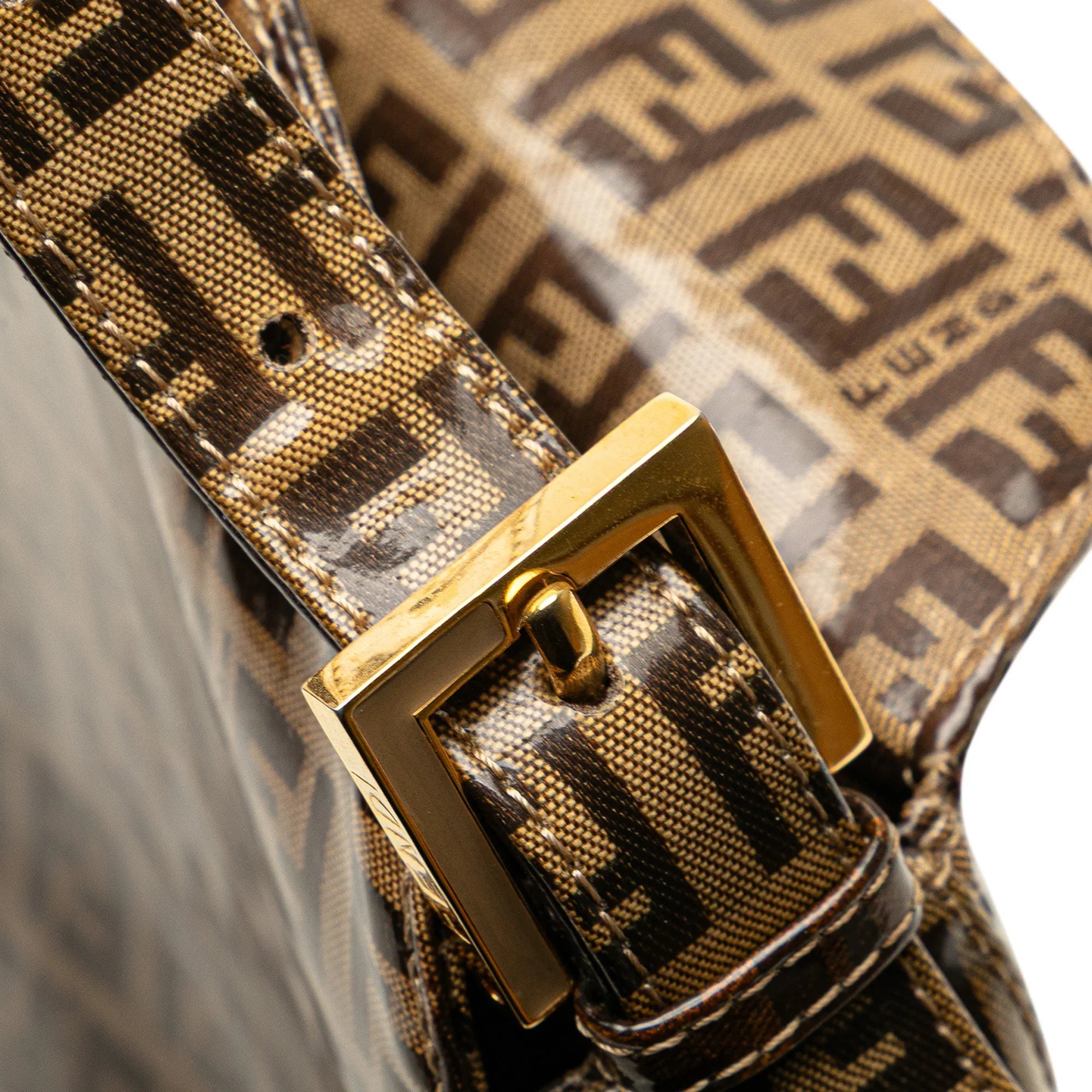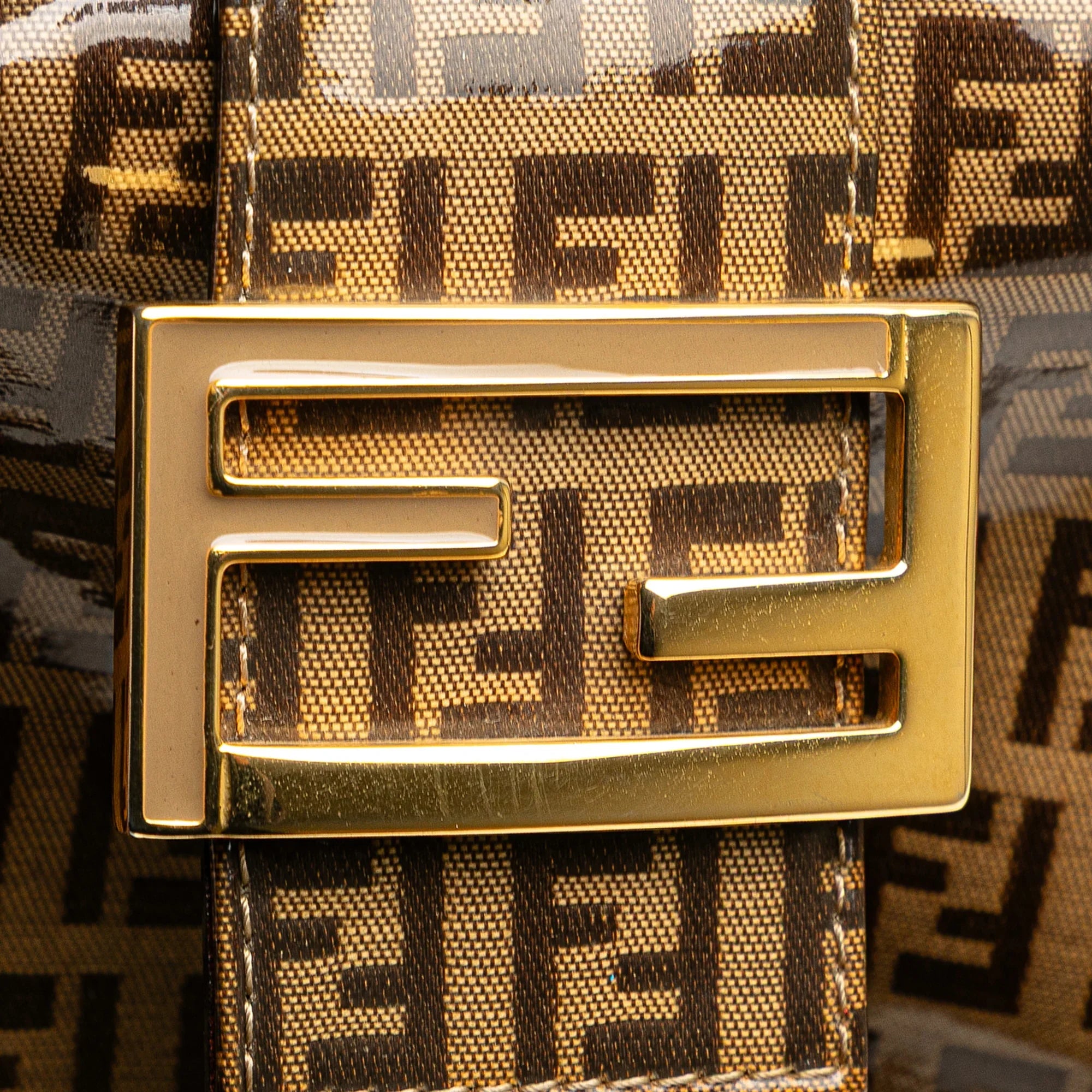 Please note this is a pre-owned item that may display signs of wear consistent with the condition listed above and shown in photos. Designer Revival guarantees this is an authentic Brown Fendi Zucchino Crystal Double Flap Shoulder Bag or 100% of your money back. Learn more about our authentication process.
