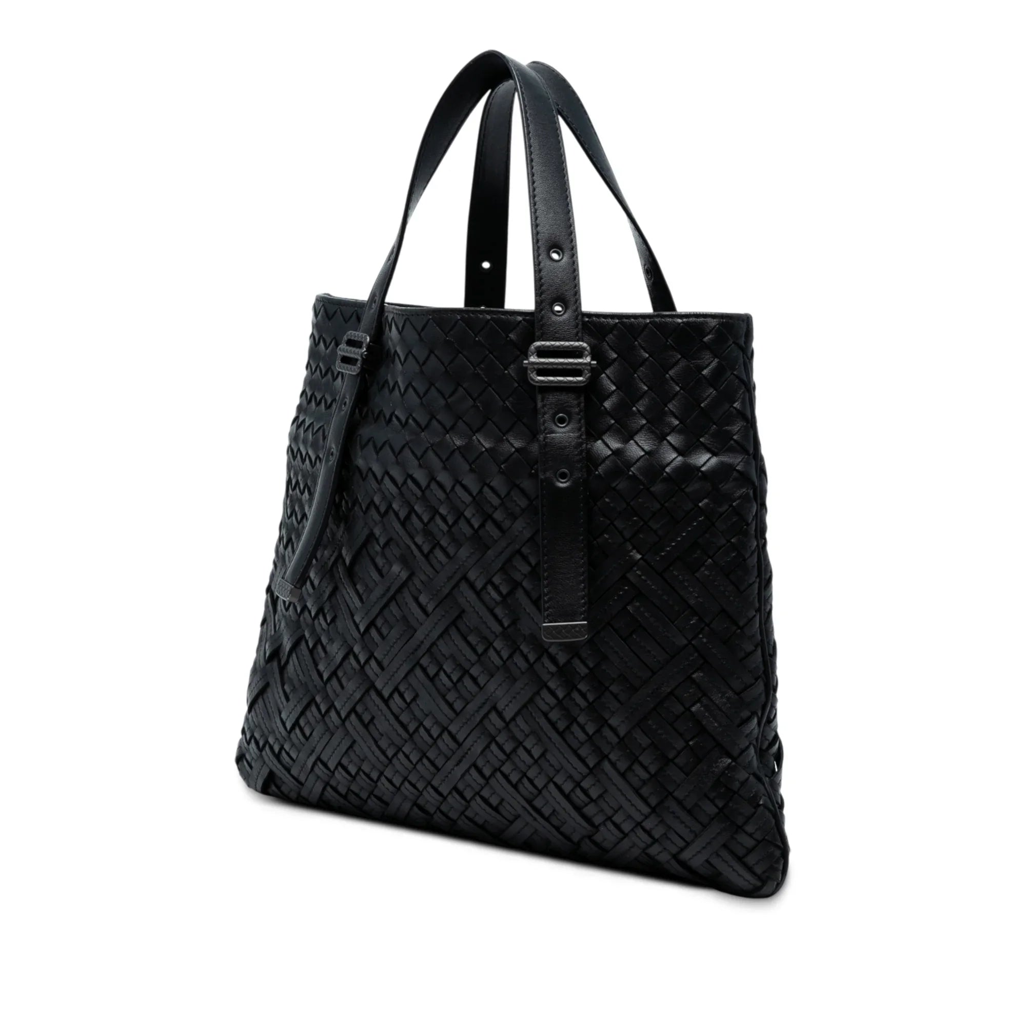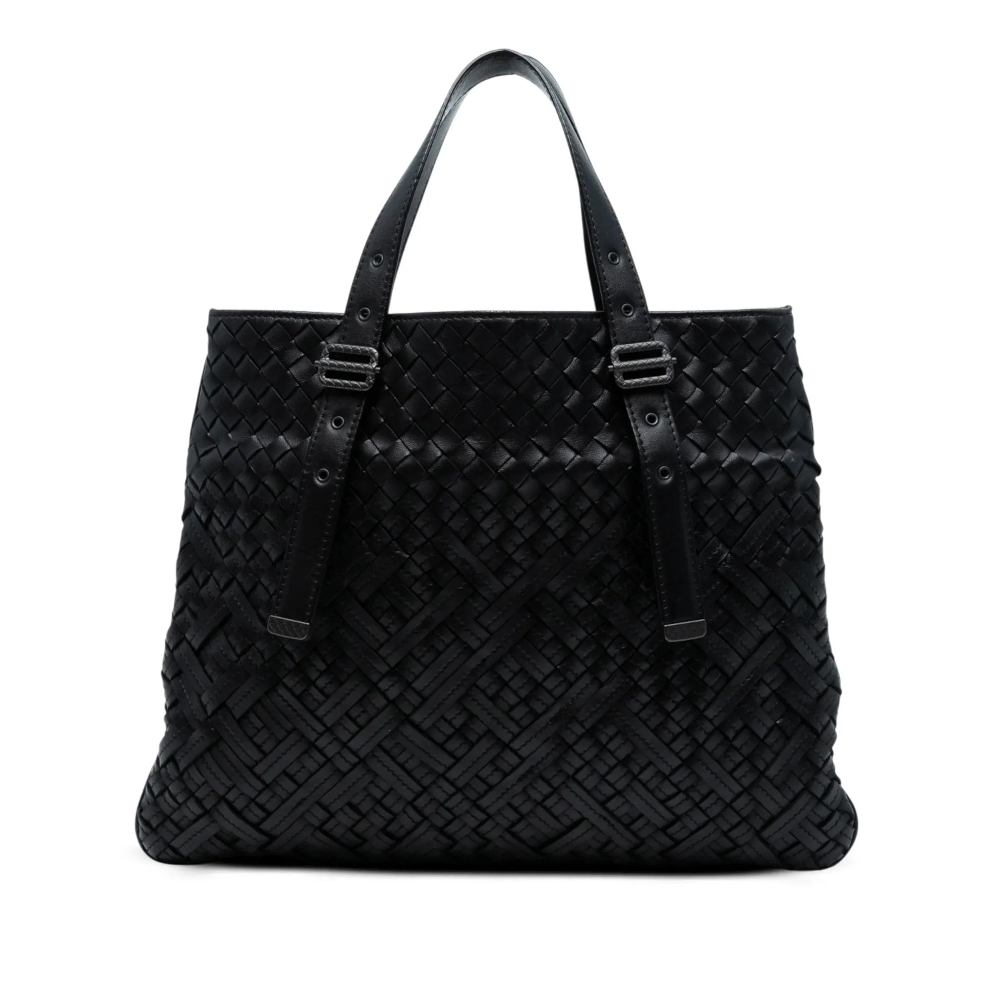Black Bottega Veneta Nappa Intrecciato Belted Flat Tote
