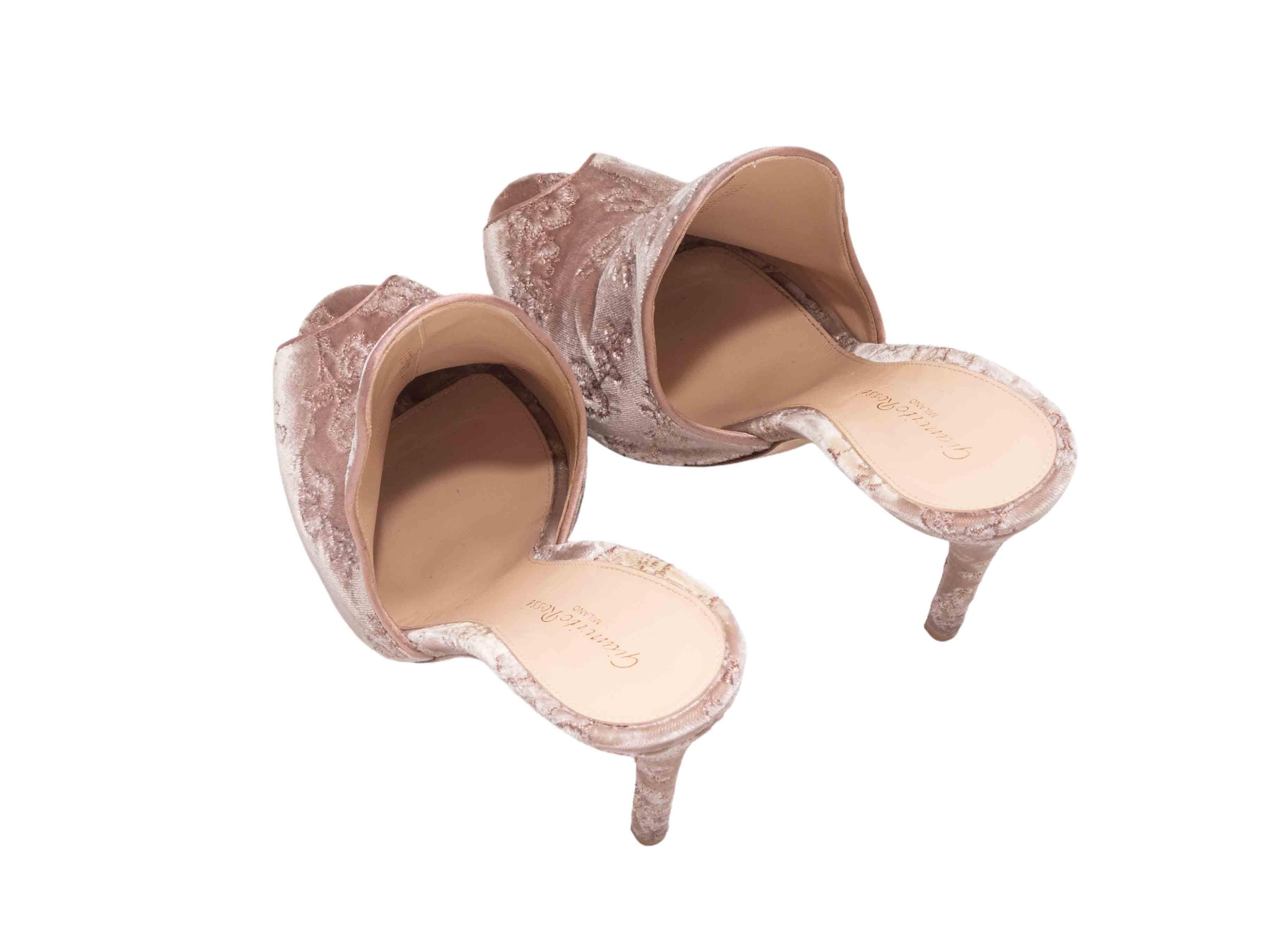 Product Details: Blush embroidered velvet heeled mules by Gianvito Rossi. 4.5" heel height.