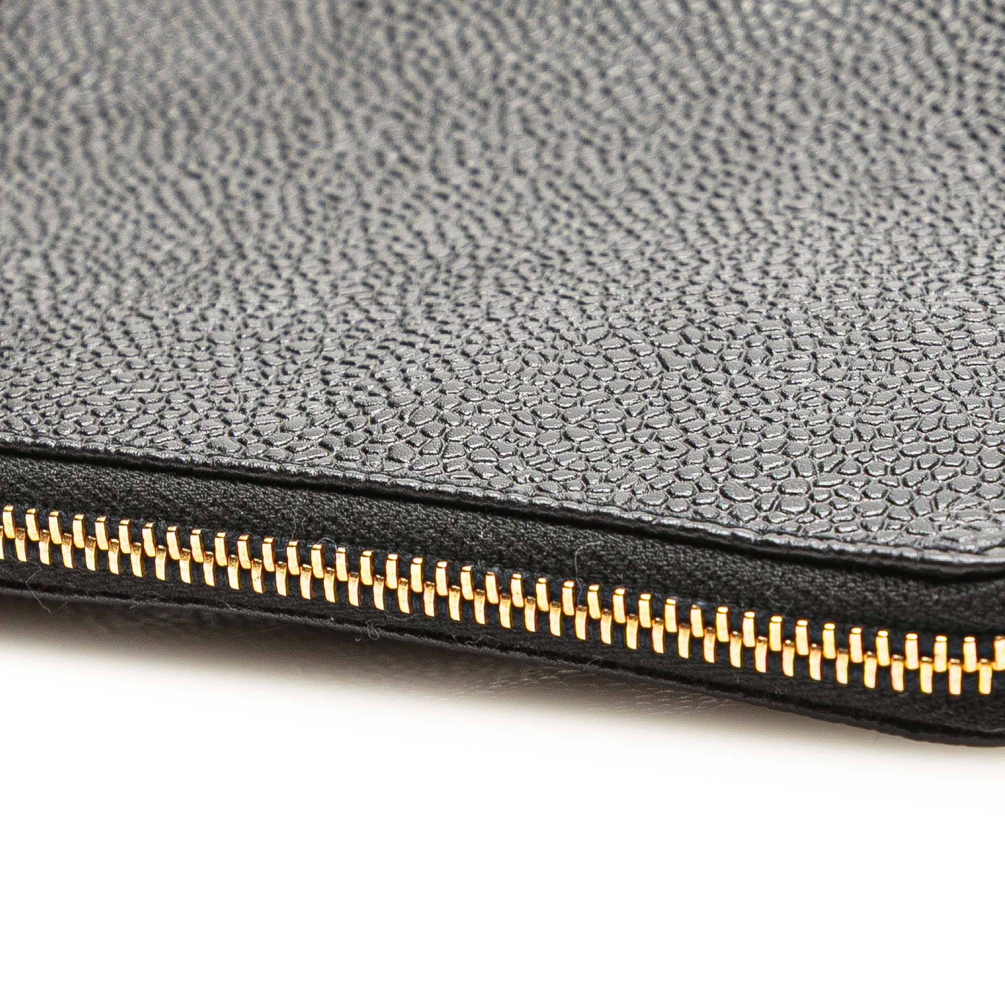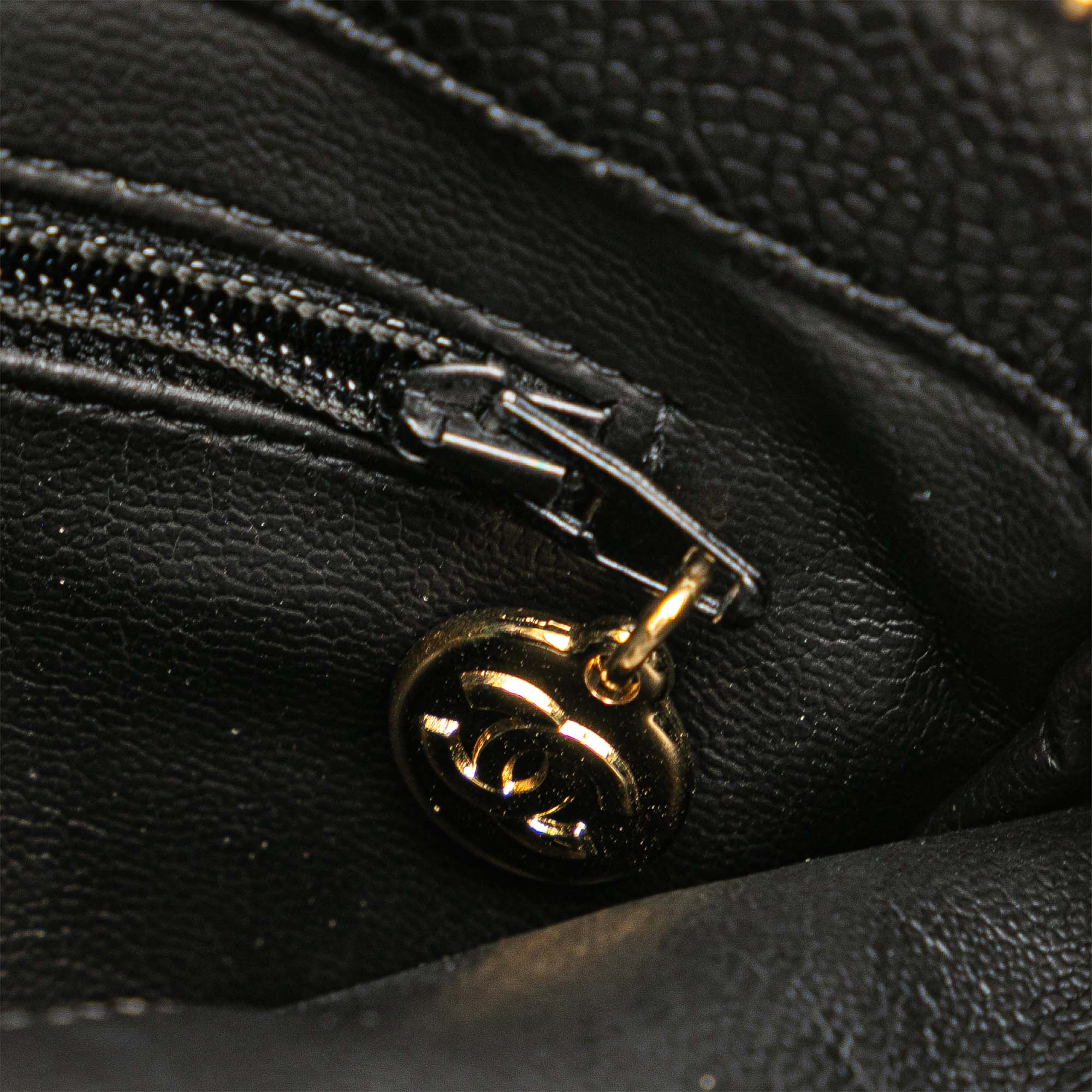 Product Details: Black Chanel CC Caviar Cosmetic Pouch. This pouch features a caviar leather body, a top zip closure, and an interior zip pocket. 4.3" L x 6.1" W x 1.8" D. Serial number 4477944.