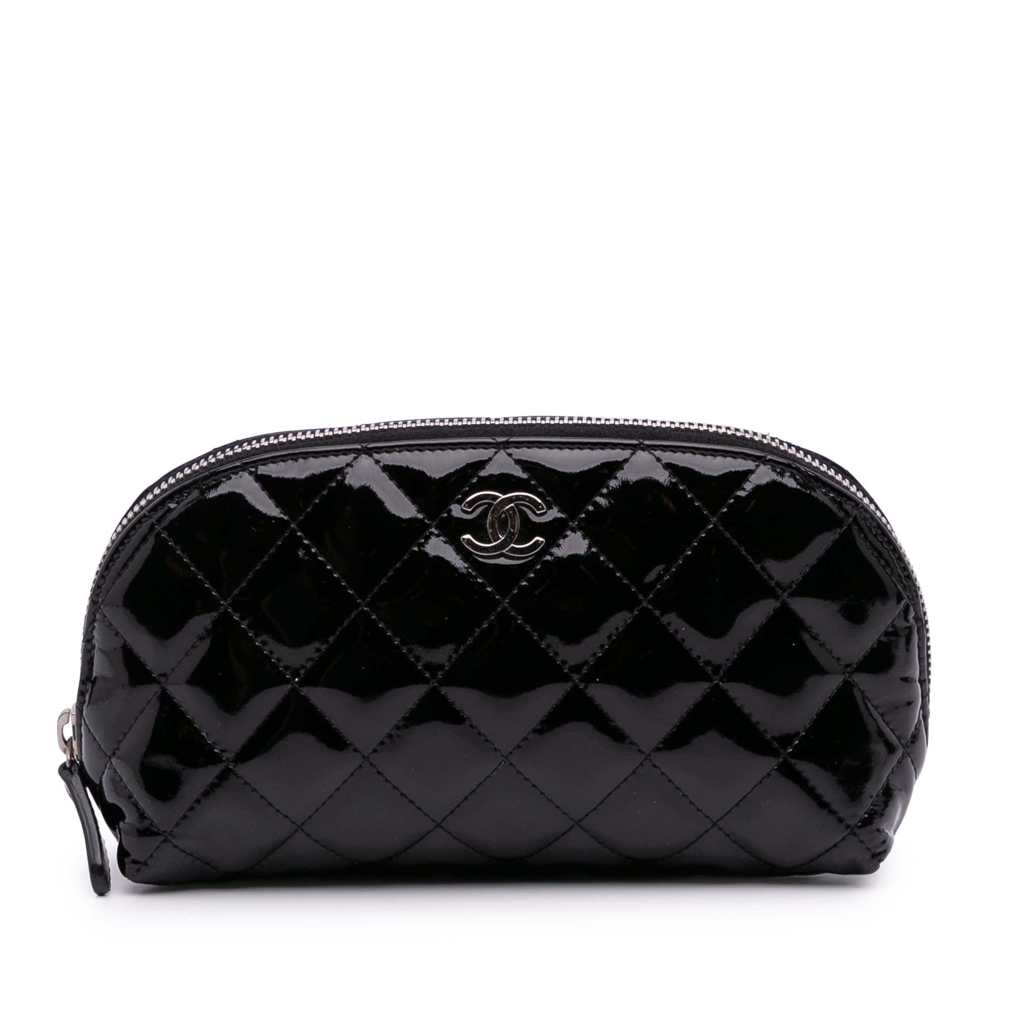 Black Chanel CC Quilted Patent Cosmetic Pouch