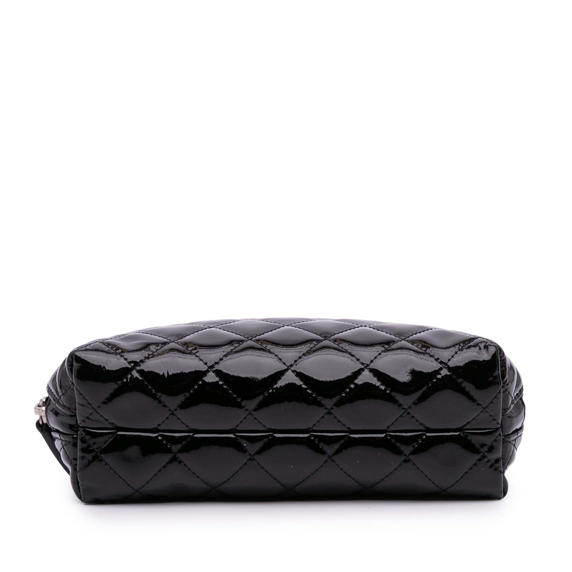Black Chanel CC Quilted Patent Cosmetic Pouch - Designer Revival Black Chanel CC Quilted Patent Cosmetic Pouch - Designer Revival