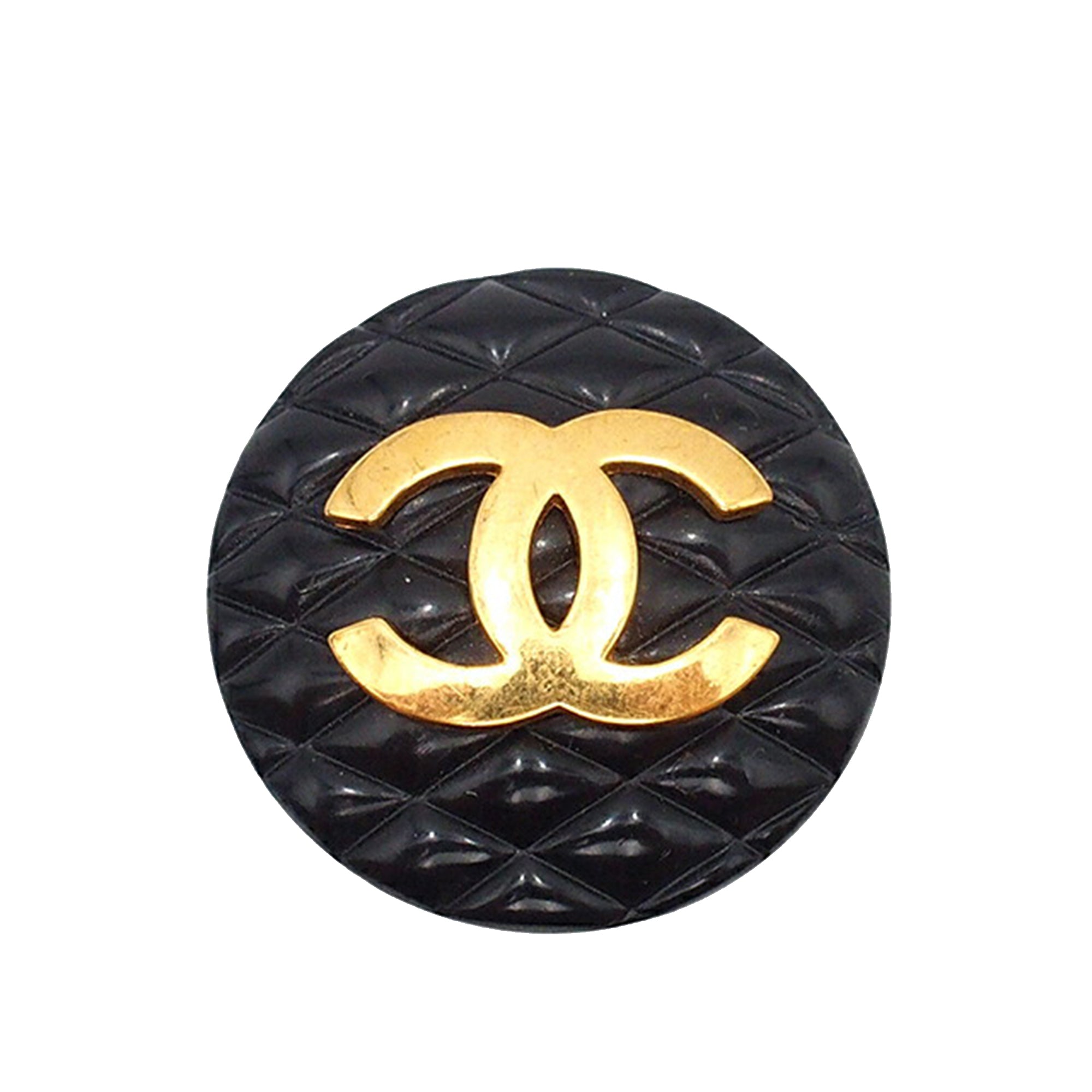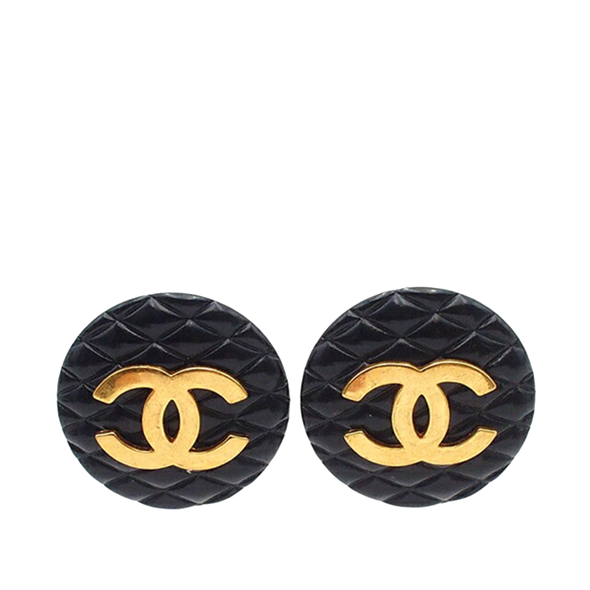 Black Chanel CC Resin and Gold Plated Quilted Button Clip On Earrings