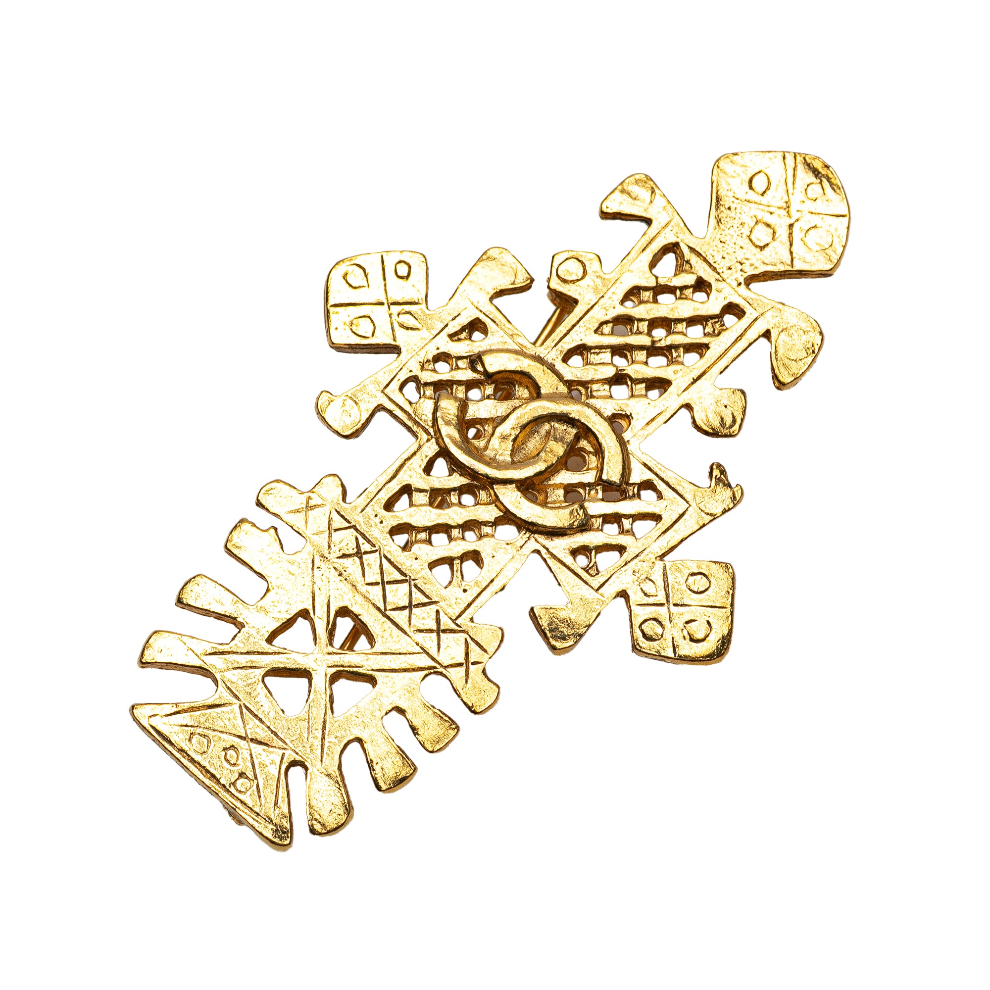 Gold Chanel CC Gold Plated Cross Brooch