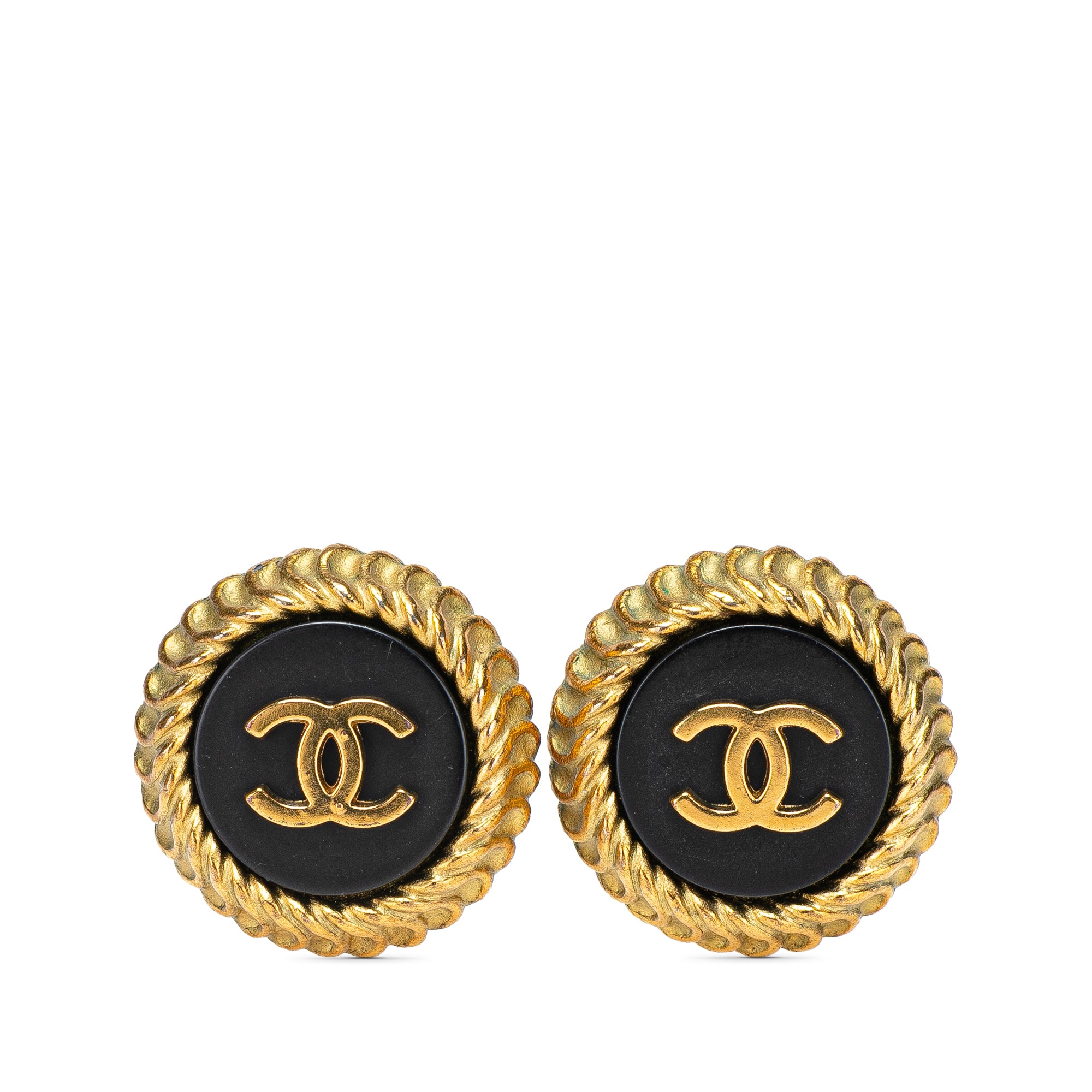Gold Chanel CC Gold Plated Resin Button Clip on Earrings - Designer Revival Gold Chanel CC Gold Plated Resin Button Clip on Earrings - Designer Revival