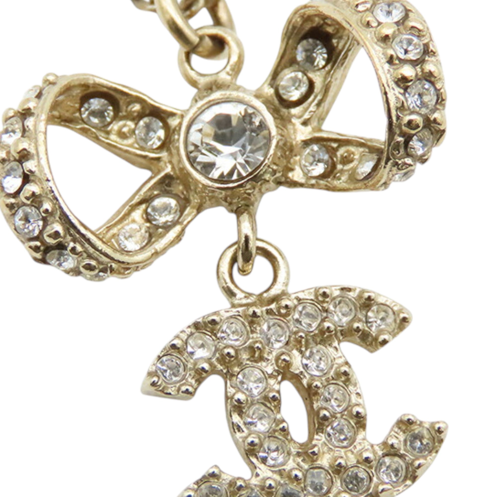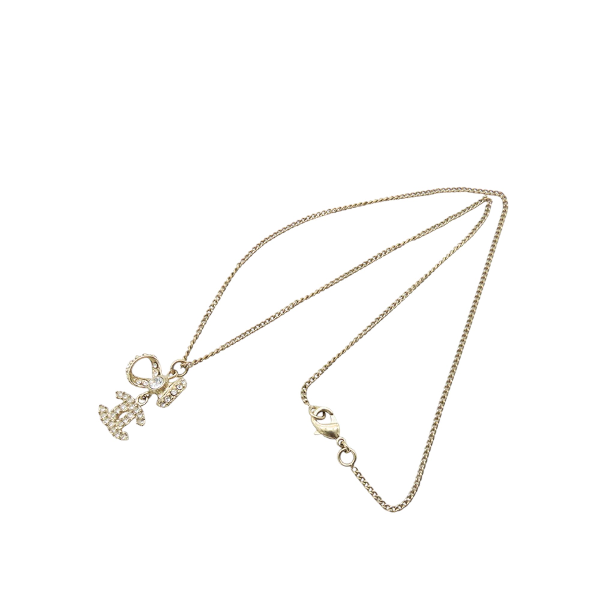 Gold Chanel Gold Plated CC Bow Crystal Pendant Necklace
