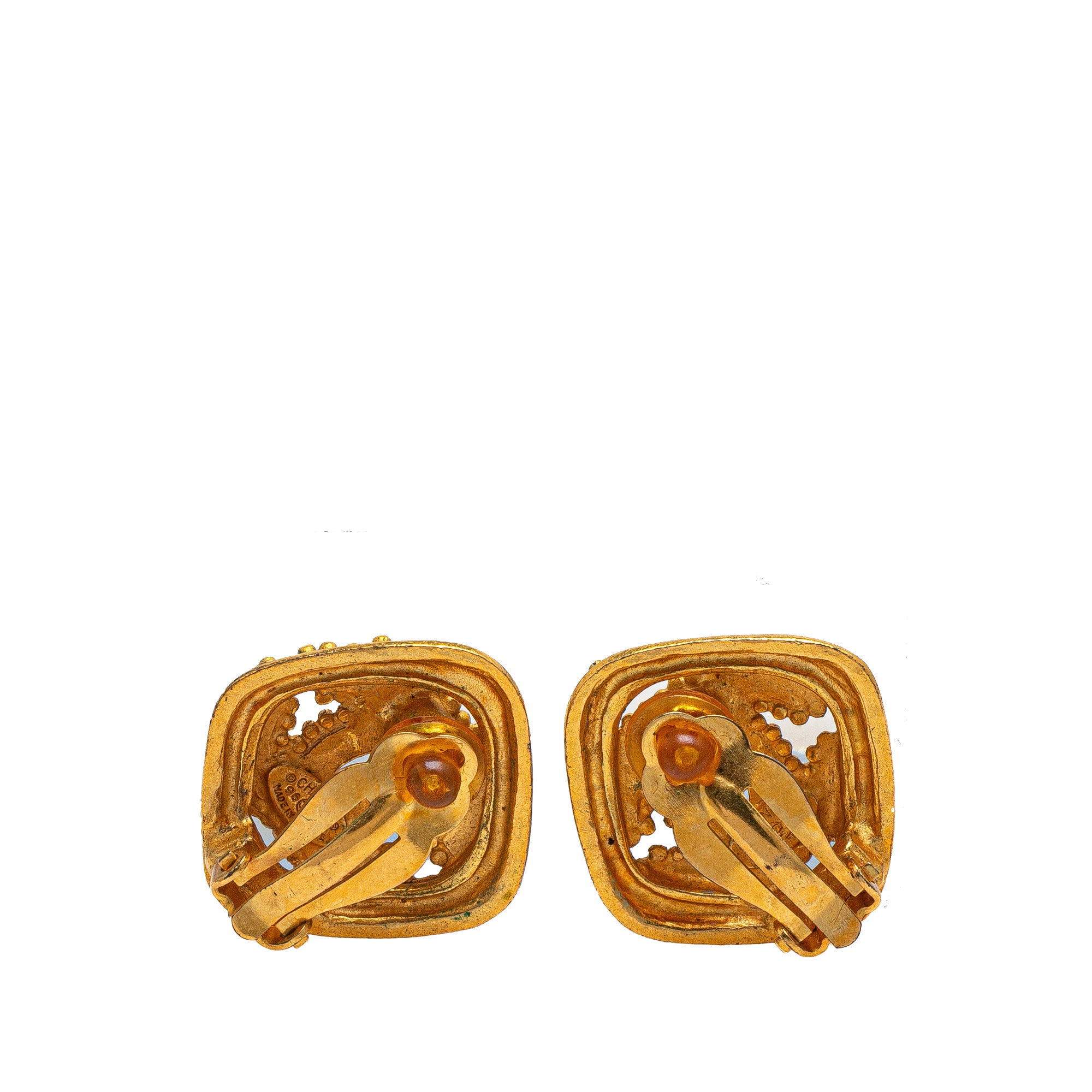 Gold Chanel Gold Plated CC Diamond Clip on Earrings