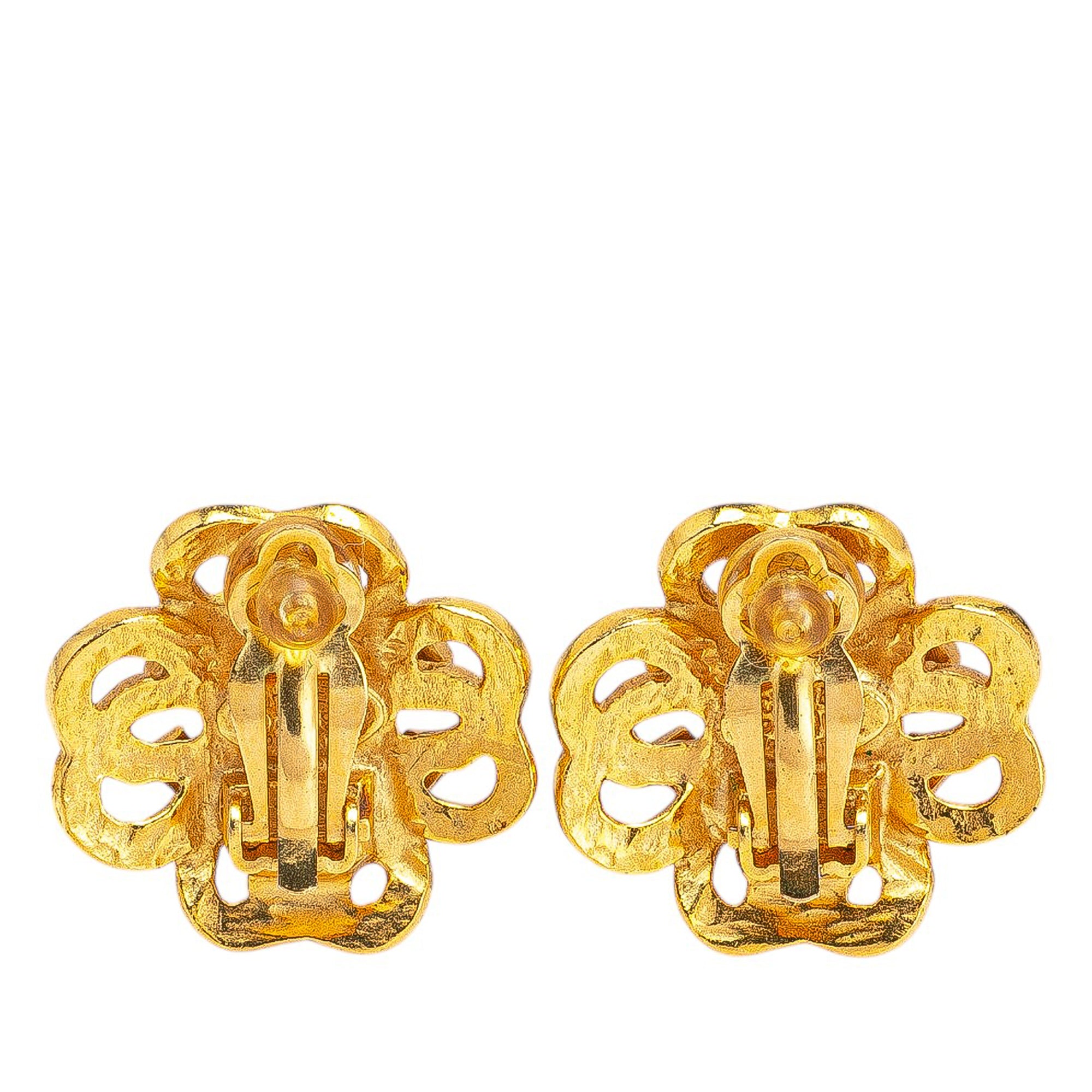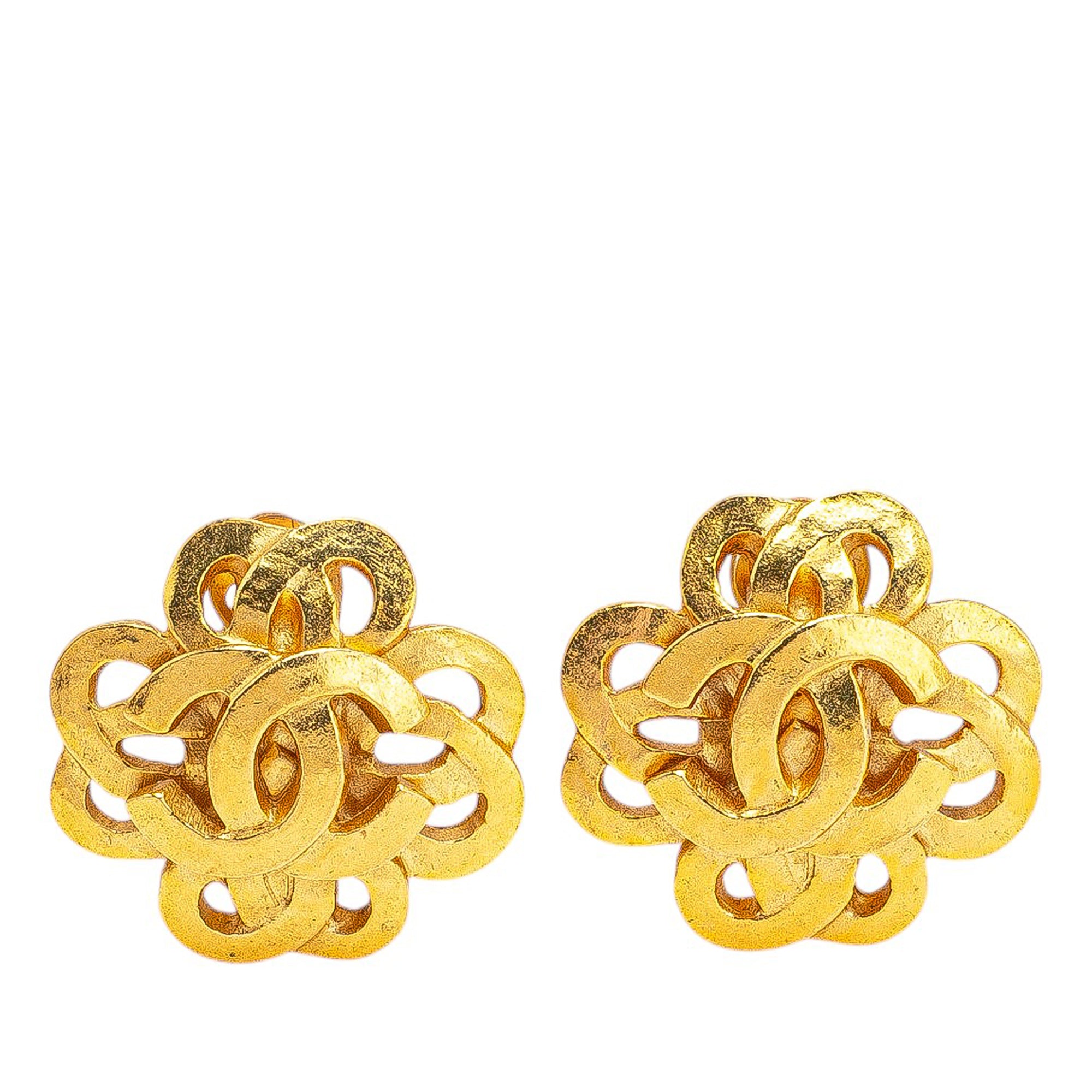 Gold Chanel Gold Plated CC Flower Clip On Earrings - Designer Revival Gold Chanel Gold Plated CC Flower Clip On Earrings - Designer Revival