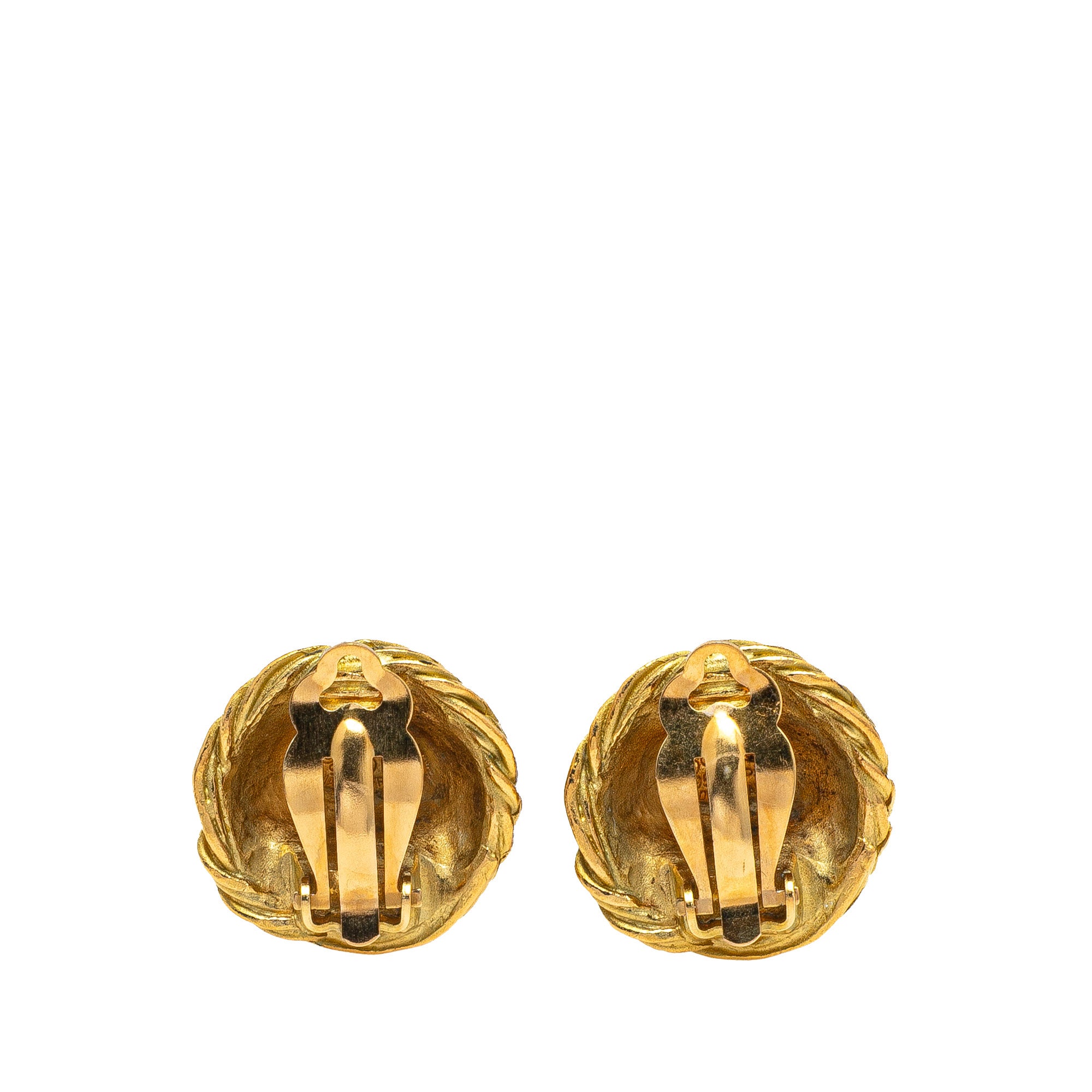 Gold Chanel Gold Plated CC Quilted Round Clip On Earrings - Designer Revival Gold Chanel Gold Plated CC Quilted Round Clip On Earrings - Designer Revival