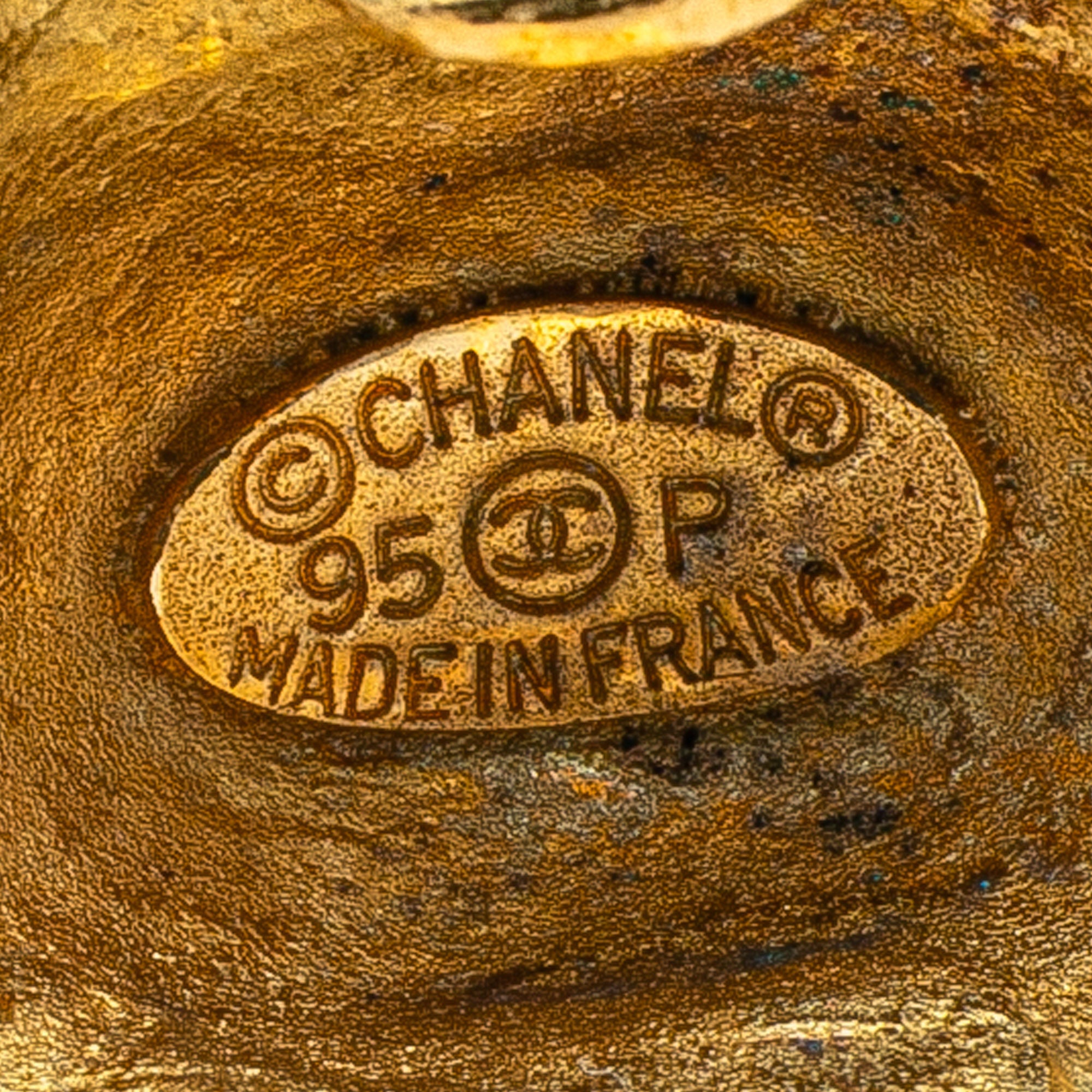 Product Details: Gold Chanel Gold Plated CC Quilted Round Clip On Earrings. These earrings feature a gold-plated body and clip-on closures. 0.9" L x 0.9" W x 0" D. Serial number 95P.