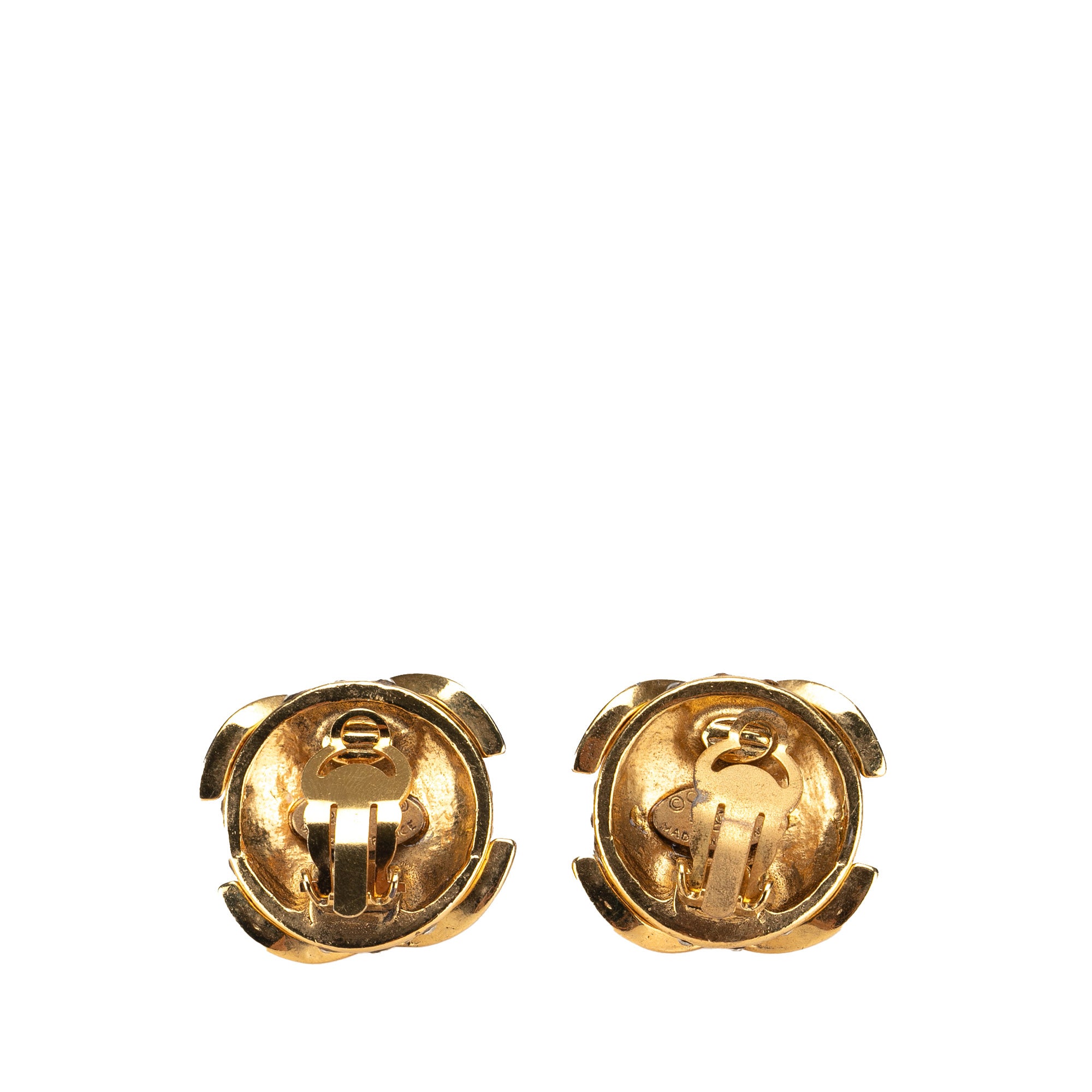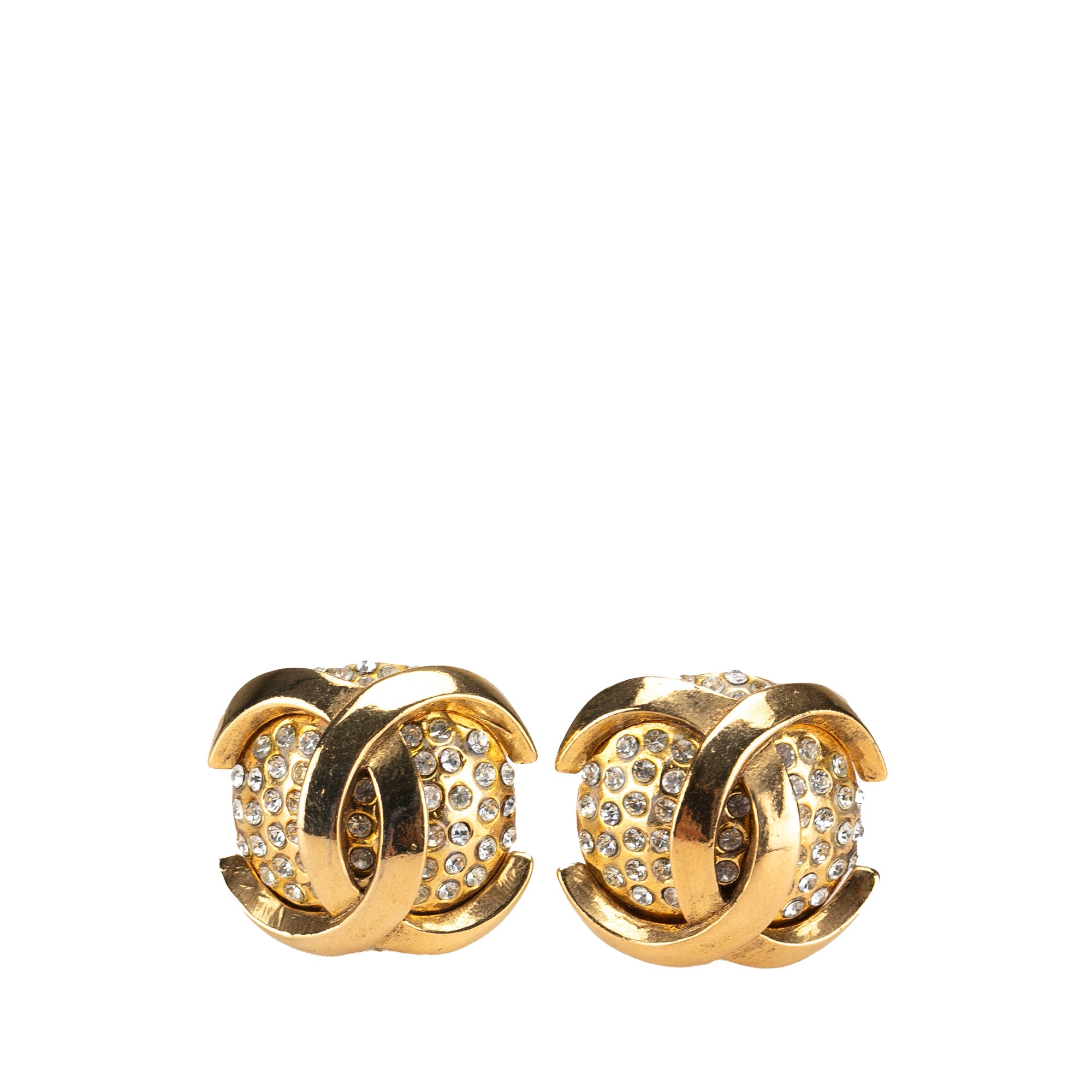 Gold Chanel Gold Plated CC Rhinestone Clip On Earrings