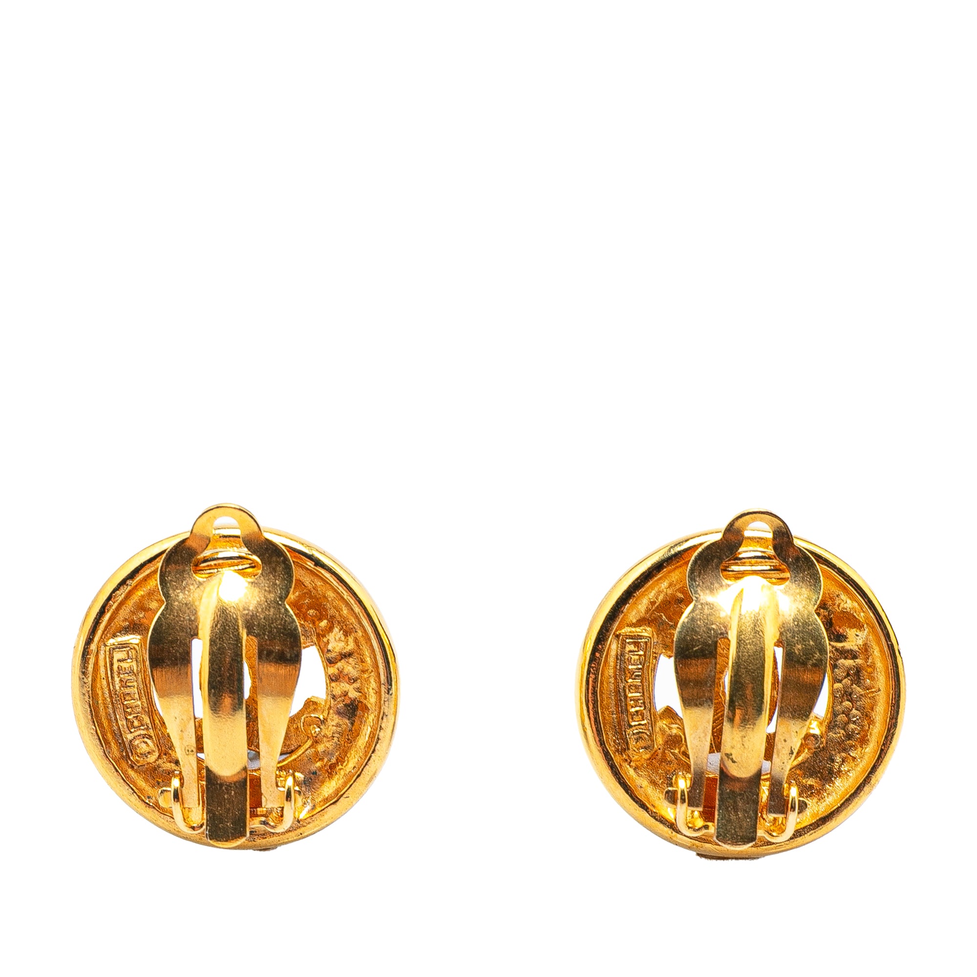Gold Chanel Gold Plated CC Round Clip On Earrings
