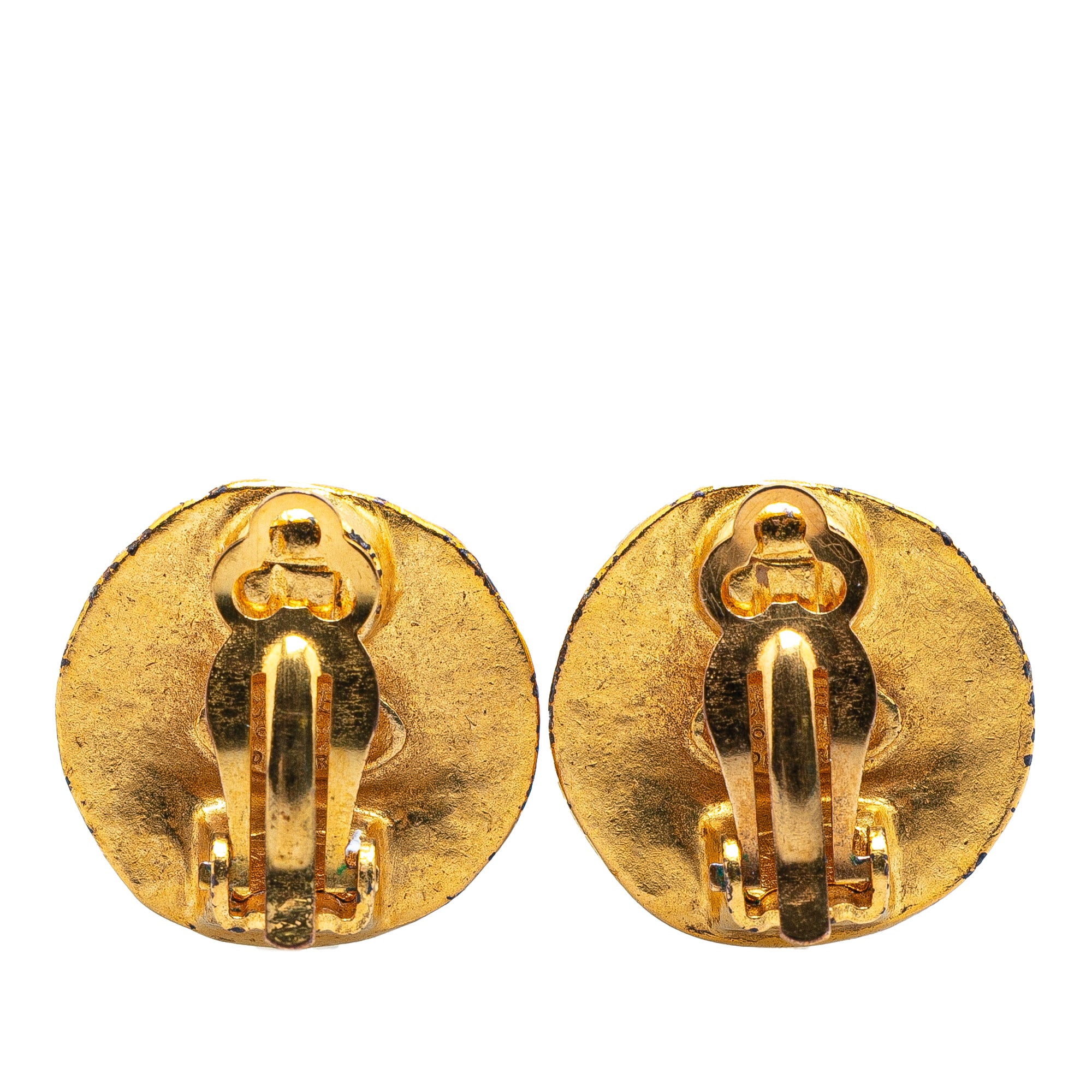Gold Chanel Gold Plated CC Round Clip On Earrings - Designer Revival Gold Chanel Gold Plated CC Round Clip On Earrings - Designer Revival