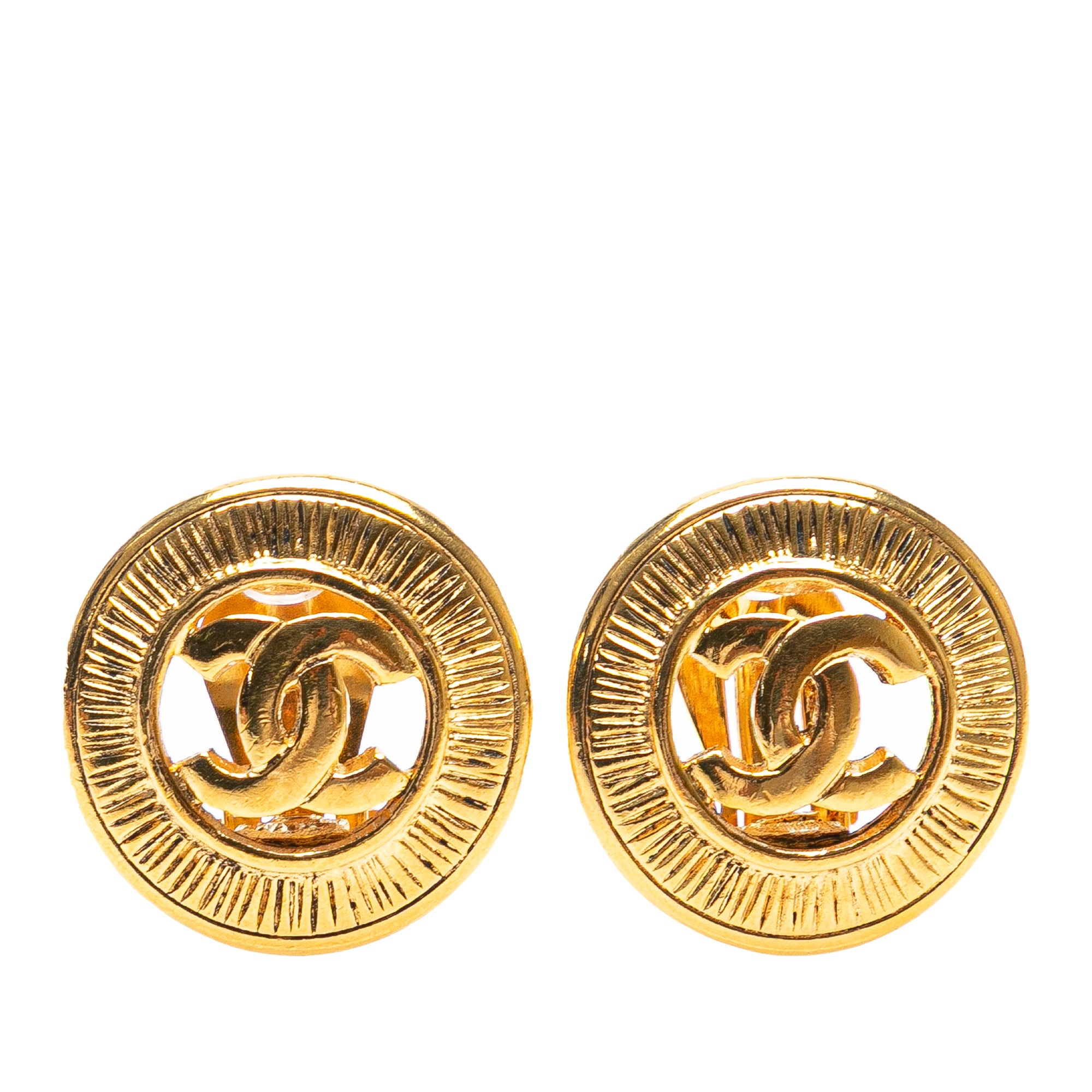 Gold Chanel Gold Plated CC Round Clip on Earrings - Designer Revival Gold Chanel Gold Plated CC Round Clip on Earrings - Designer Revival