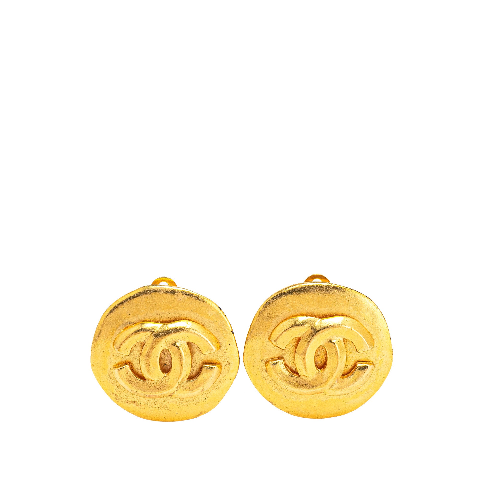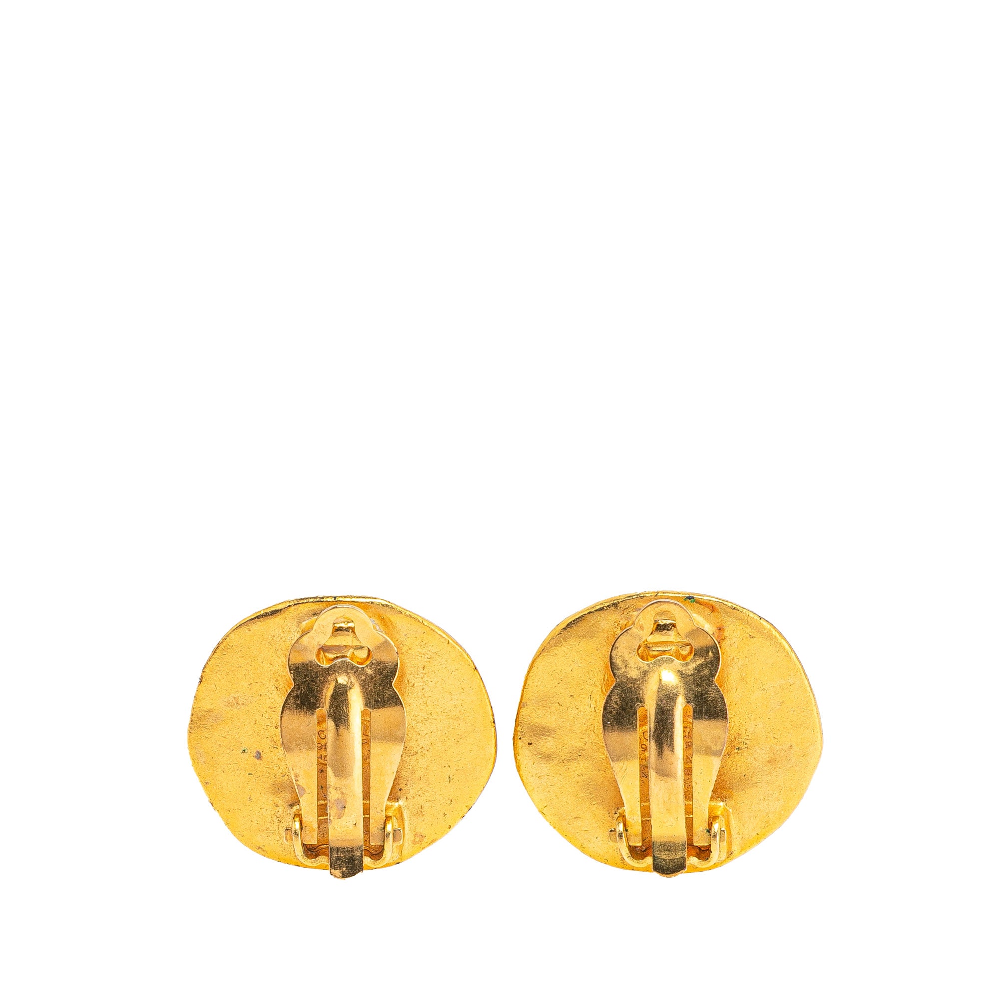 Gold Chanel Gold Plated CC Round Clip On Earrings