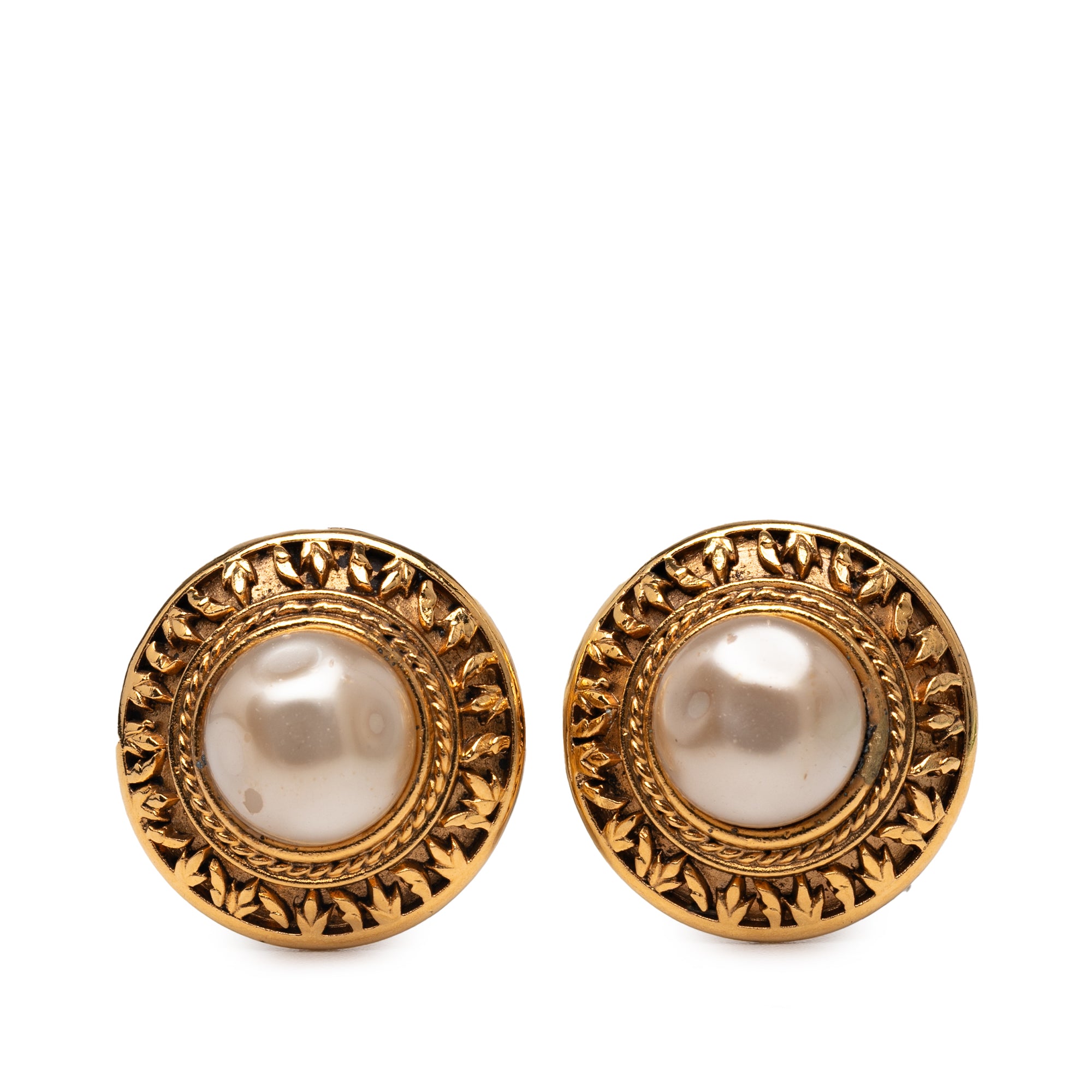 Gold Chanel Gold Plated Faux Pearl Clip On Earrings