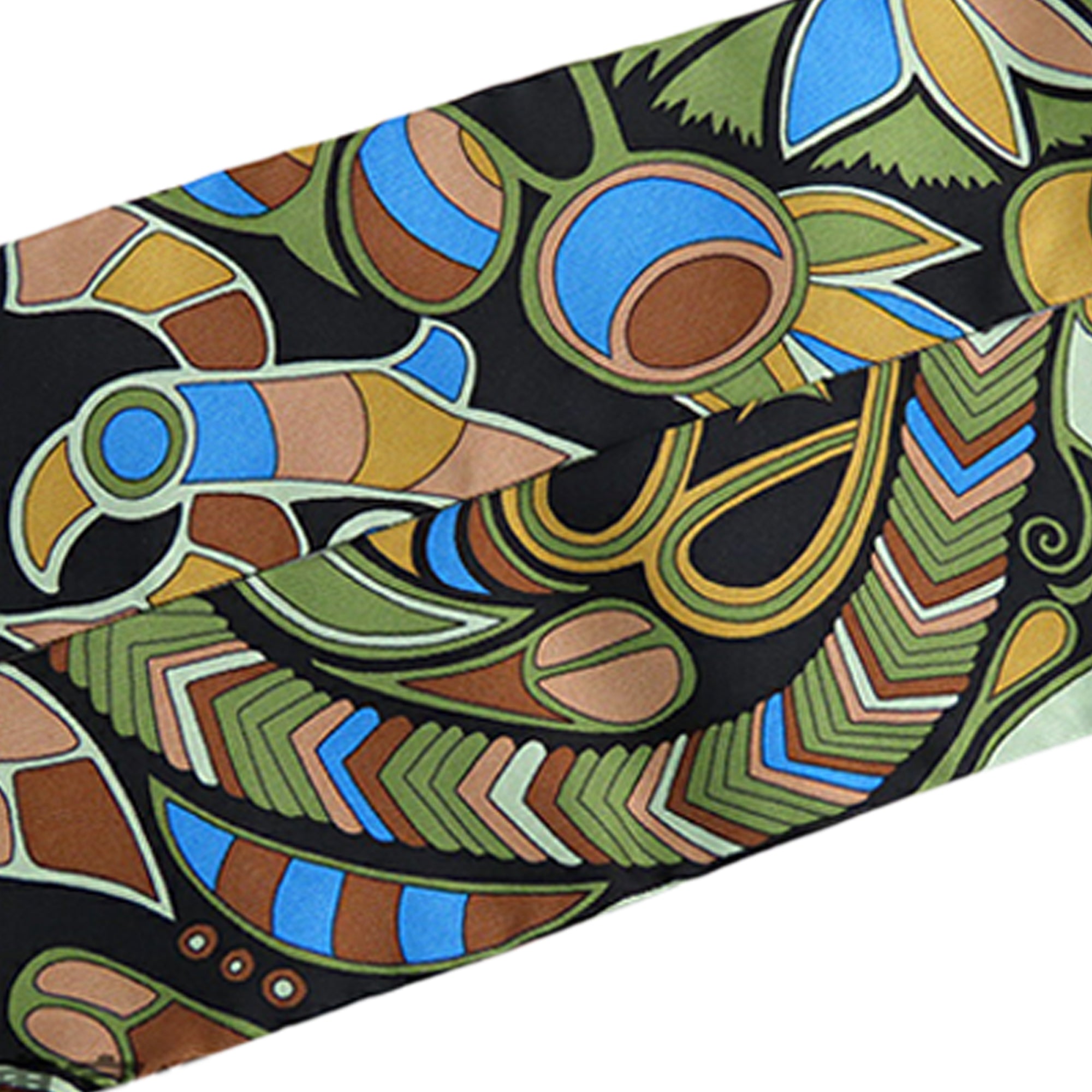 Green Hermès Folklore Silk Twilly Scarf Scarves