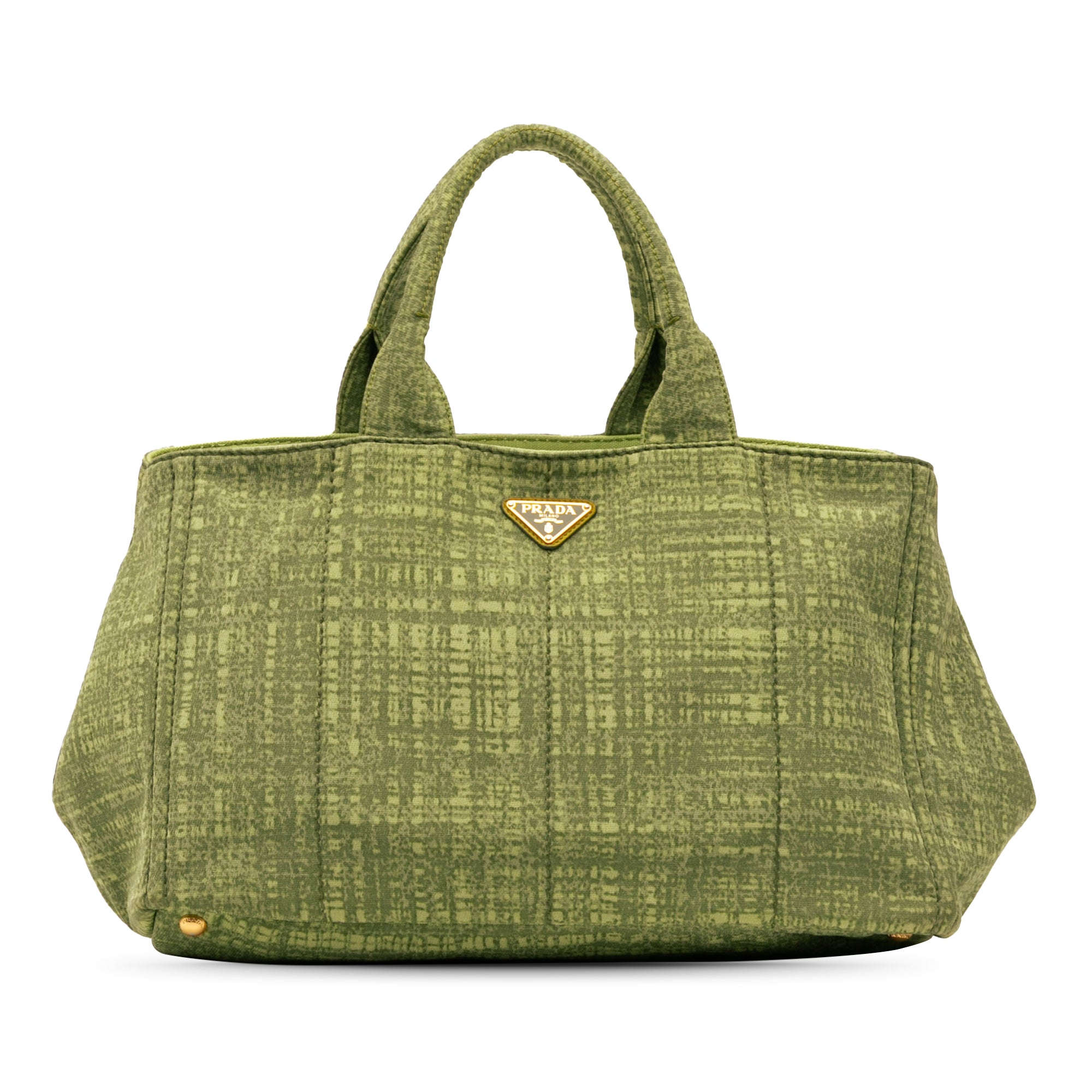 Please note this is a pre-owned item that may display signs of wear consistent with the condition listed above and shown in photos. Designer Revival guarantees this is an authentic Green Prada Large Canvas Canapa Satchel or 100% of your money back. Learn more about our authentication process.