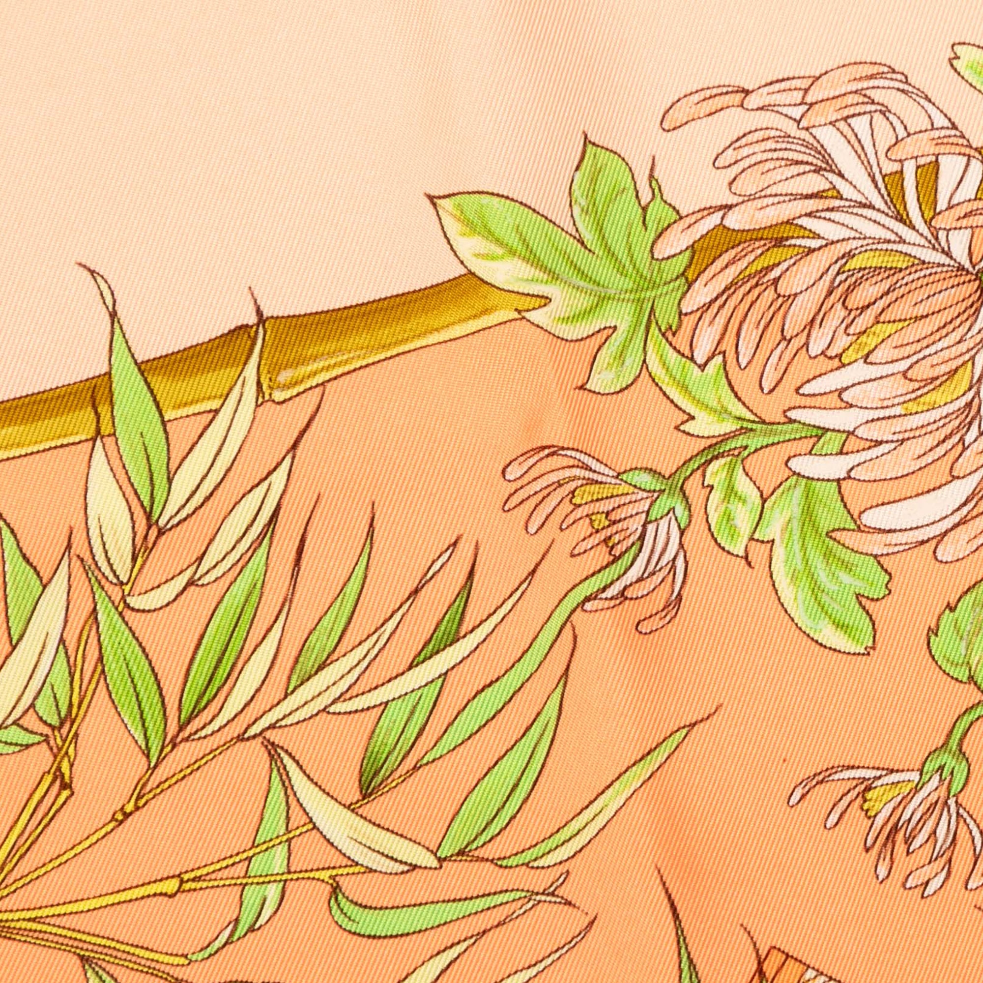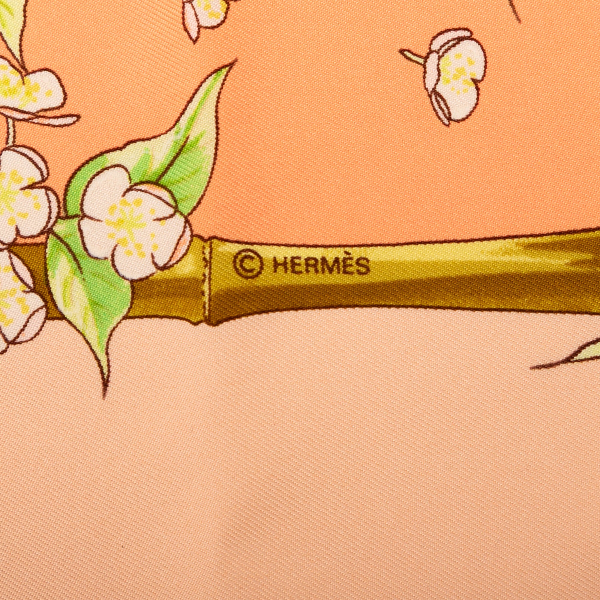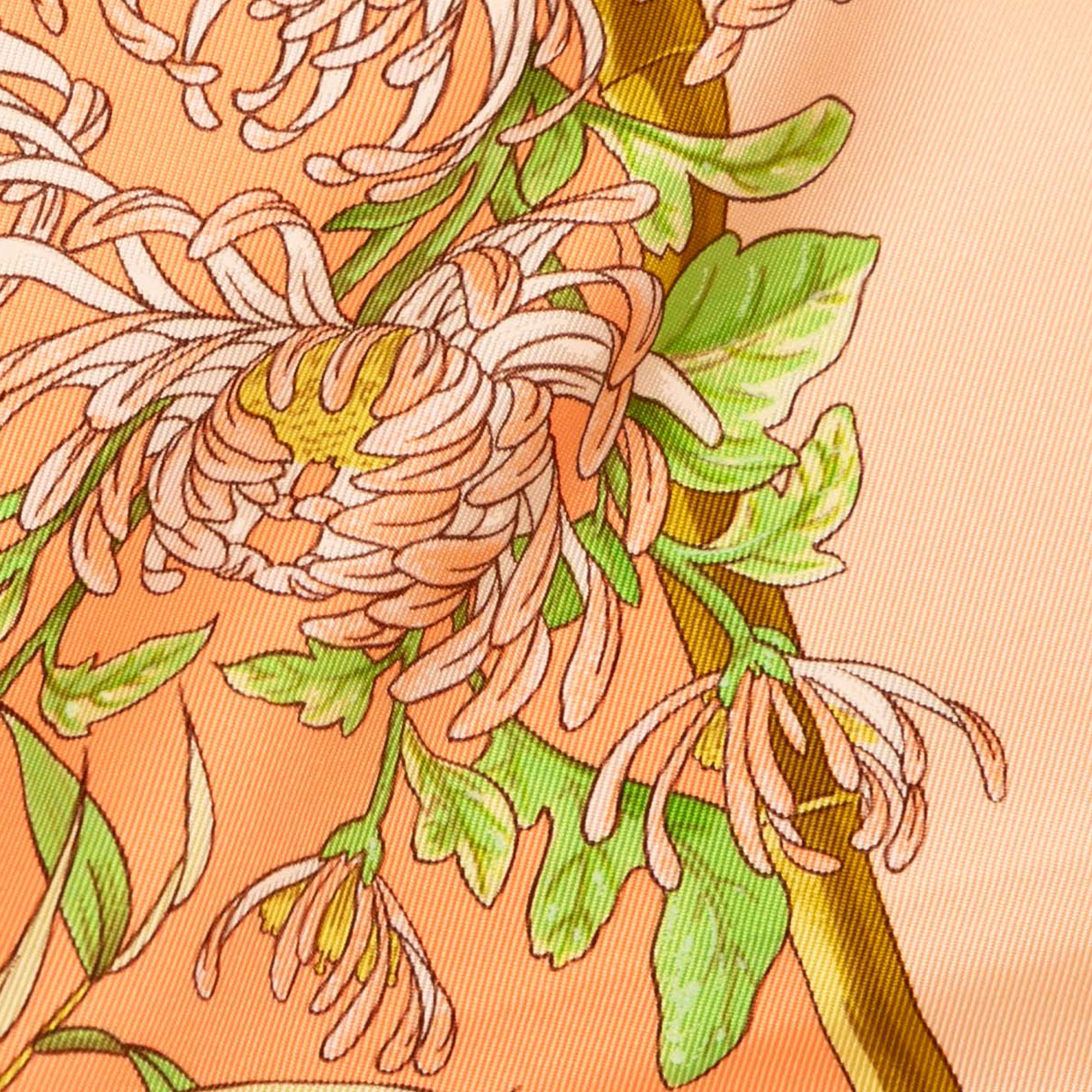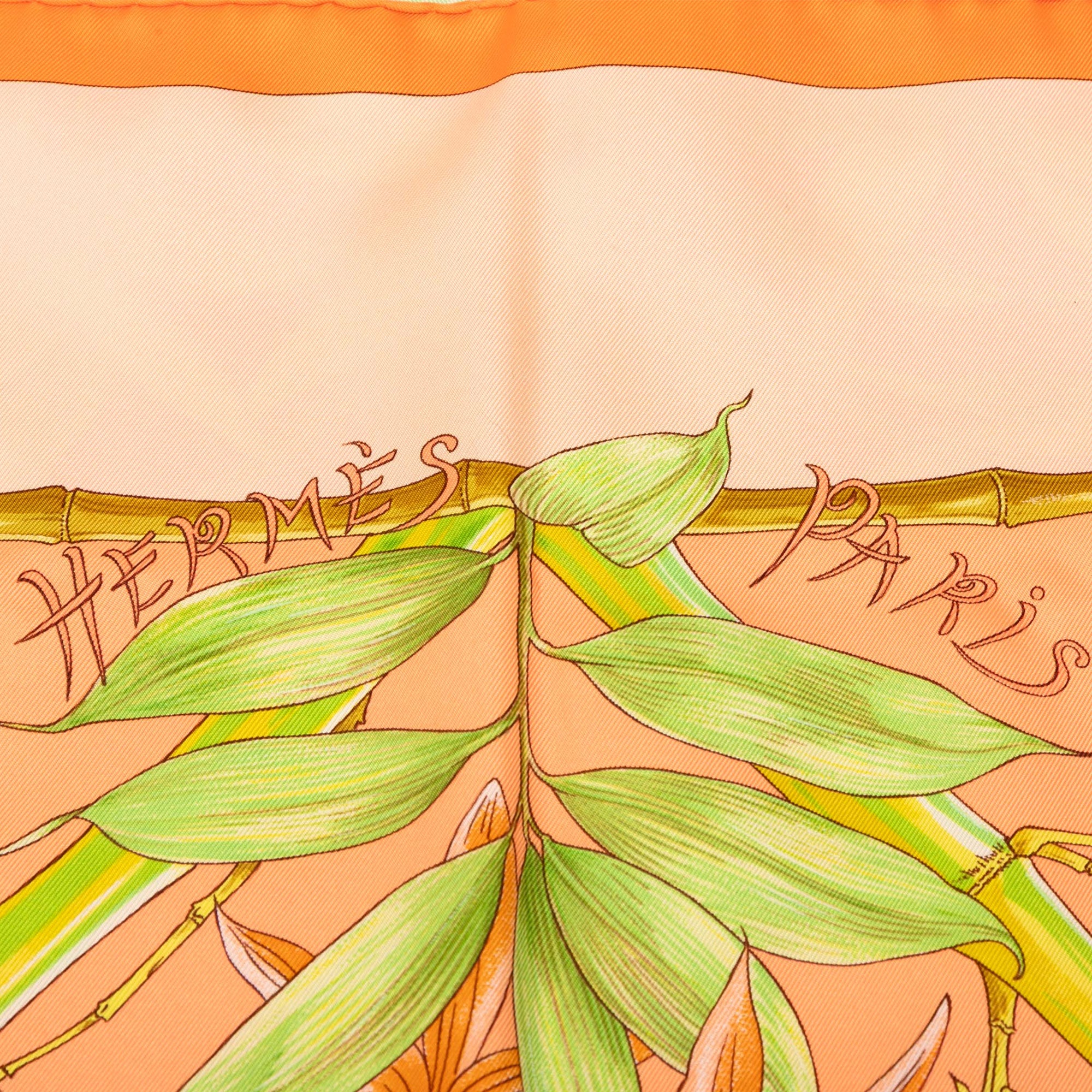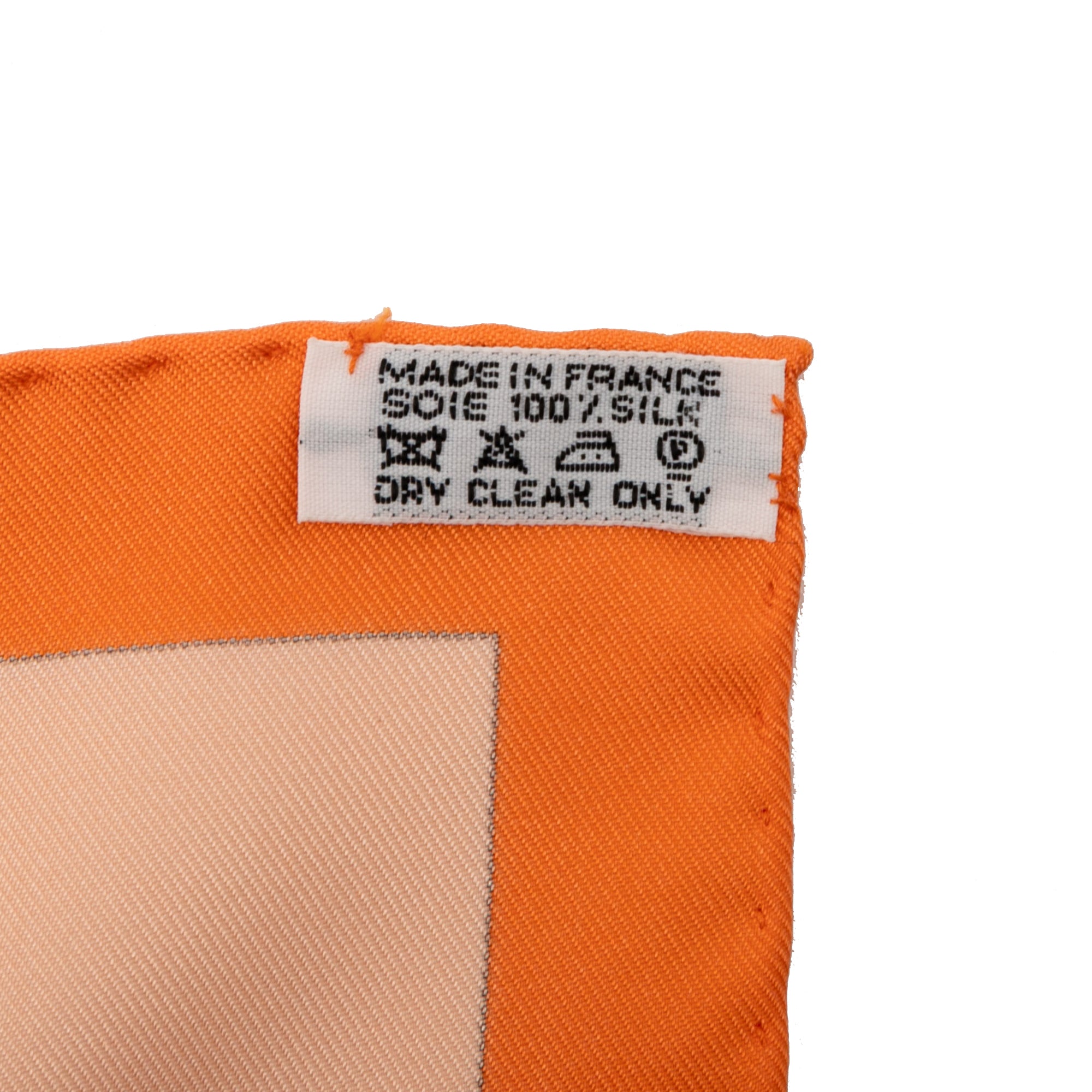 Product Details: Orange Hermès Serenite Silk Scarf 90 Scarves. This scarf features the Serenite print on 100% silk. 35" L x 35.4" W x 0" D.