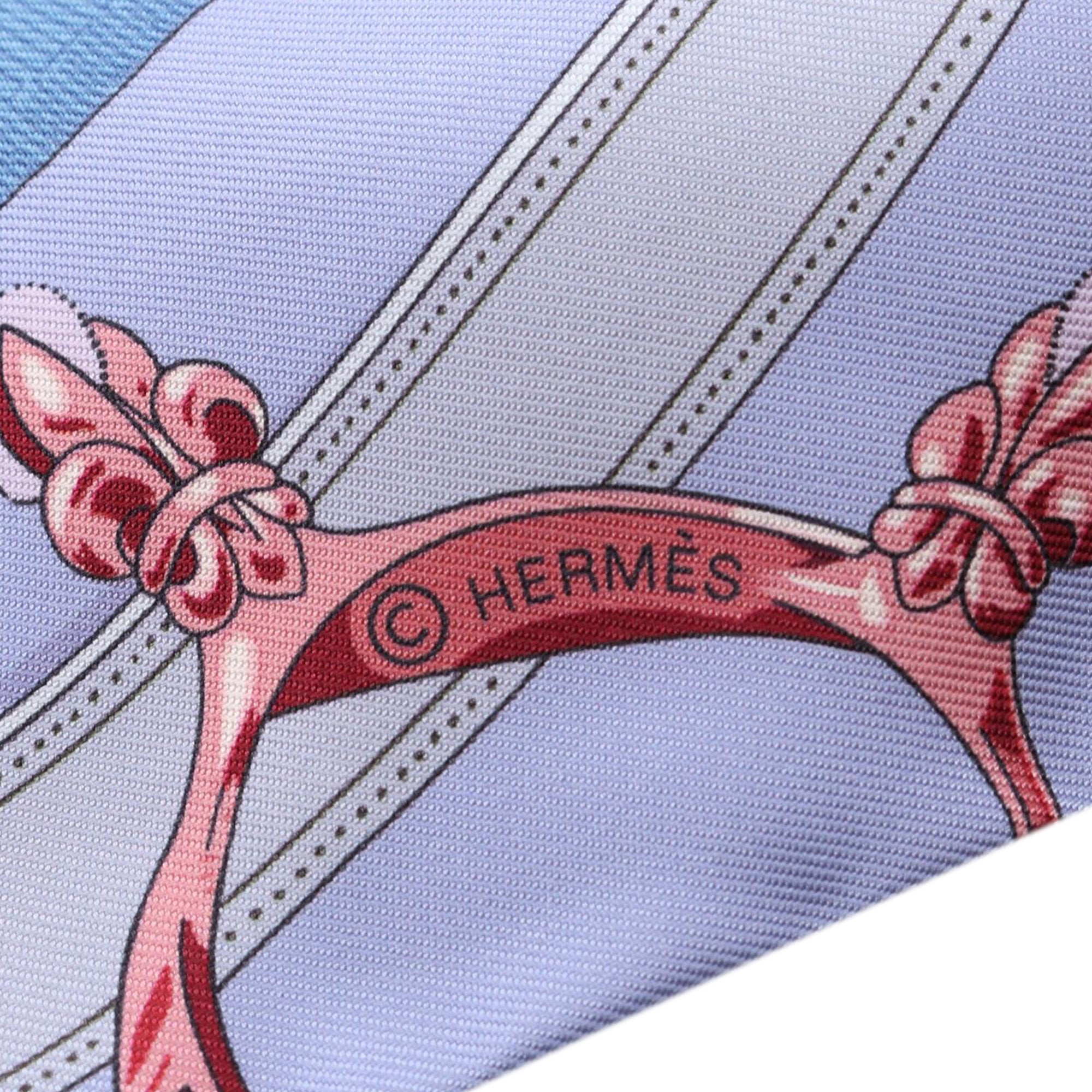 Product Details: Purple Hermès Maxi Cavalcadour a Cheval Silk Twilly Scarf. This twilly scarf features the Cavalcadour a Cheval print on 100% silk. 61" L x 7.9" W x 0" D.