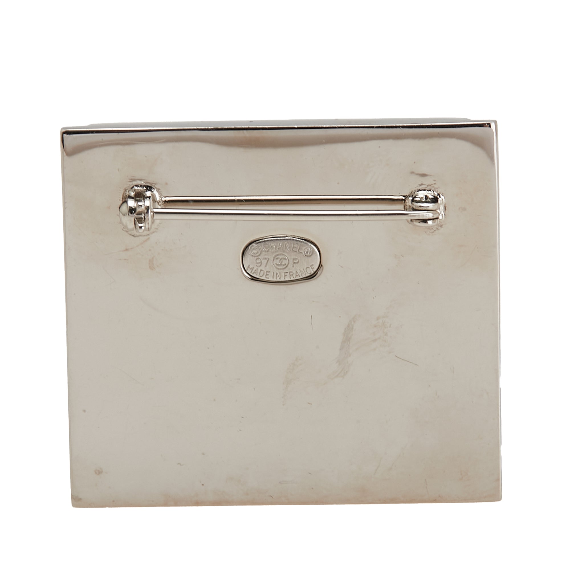 Silver Chanel Palladium Plated Enamel Logo Plate Brooch