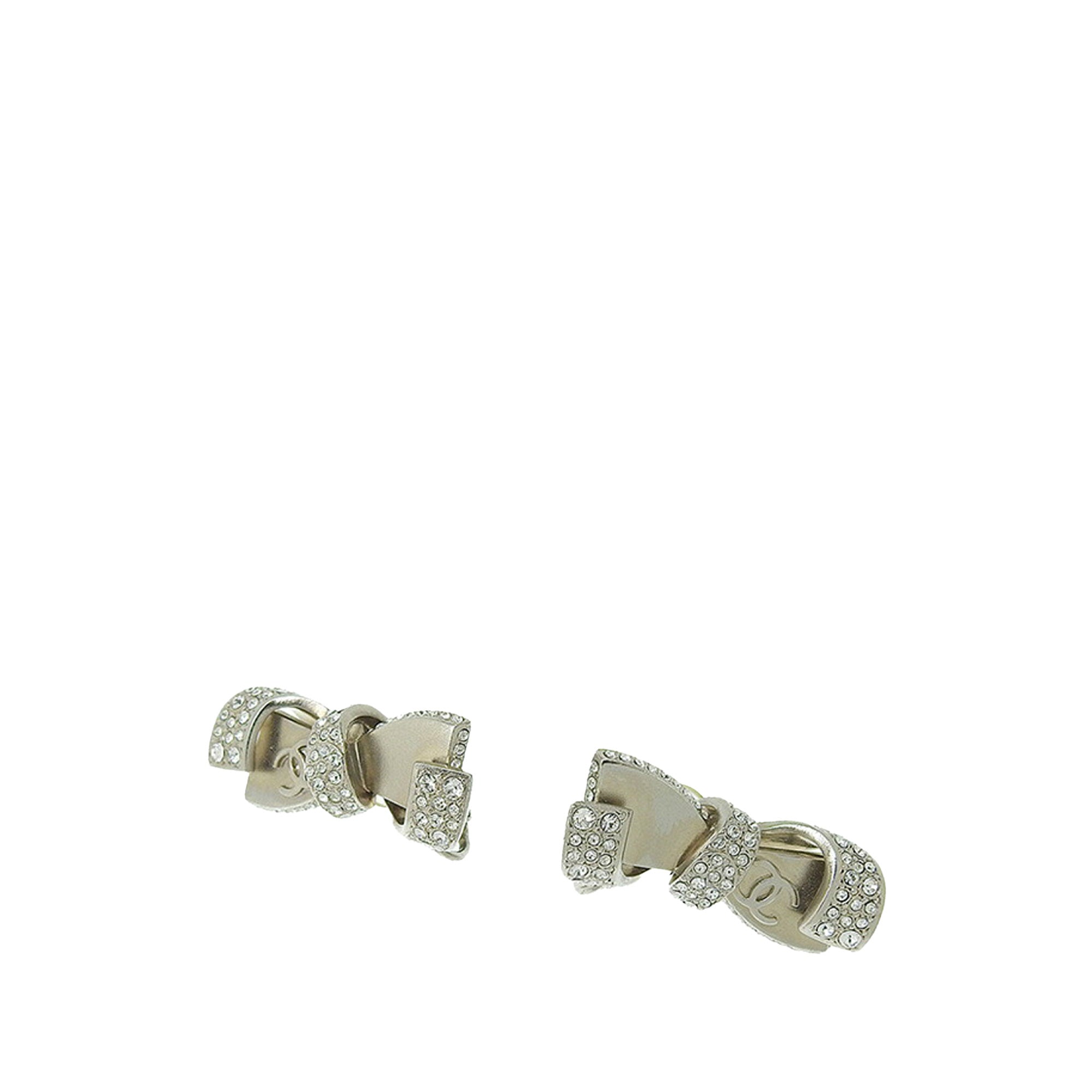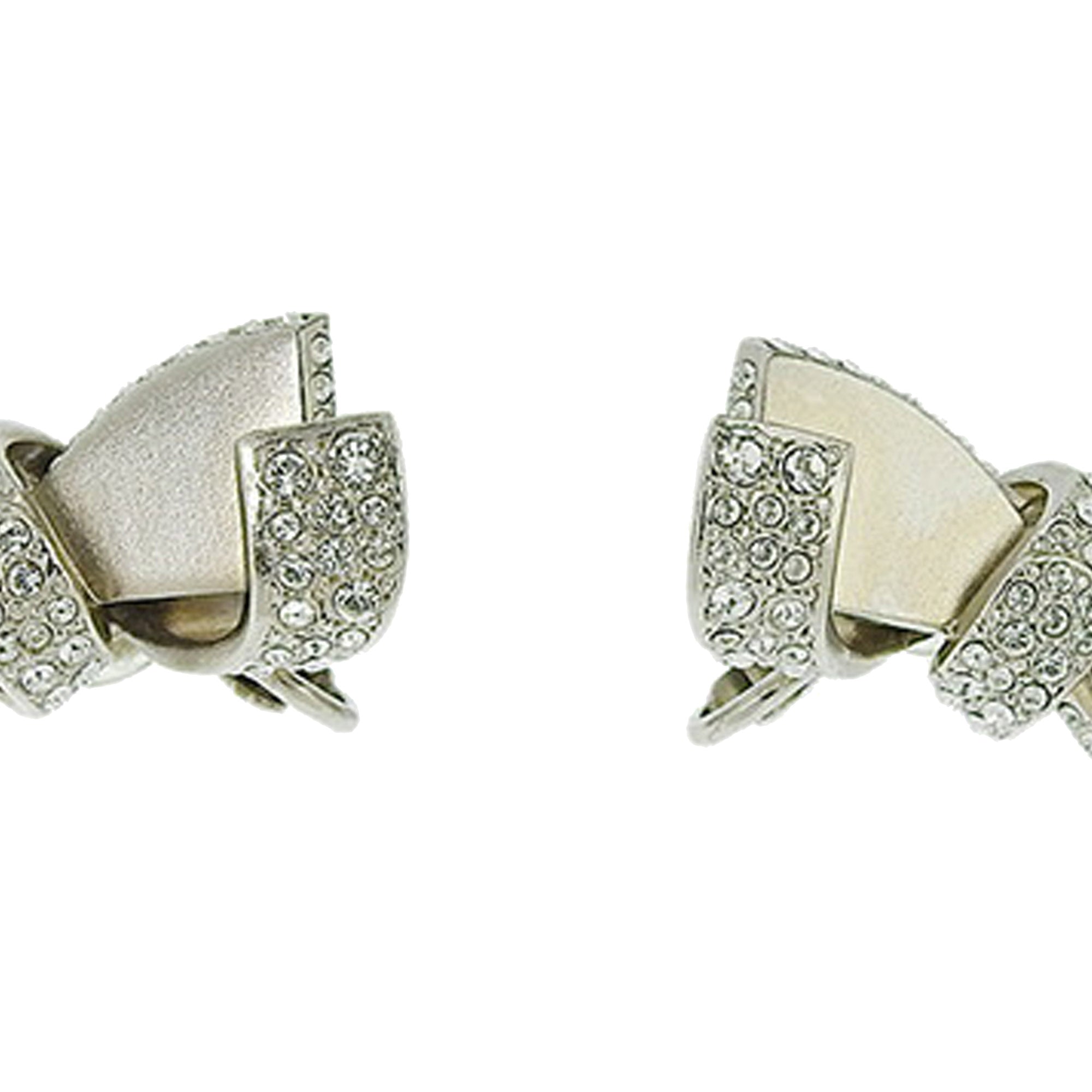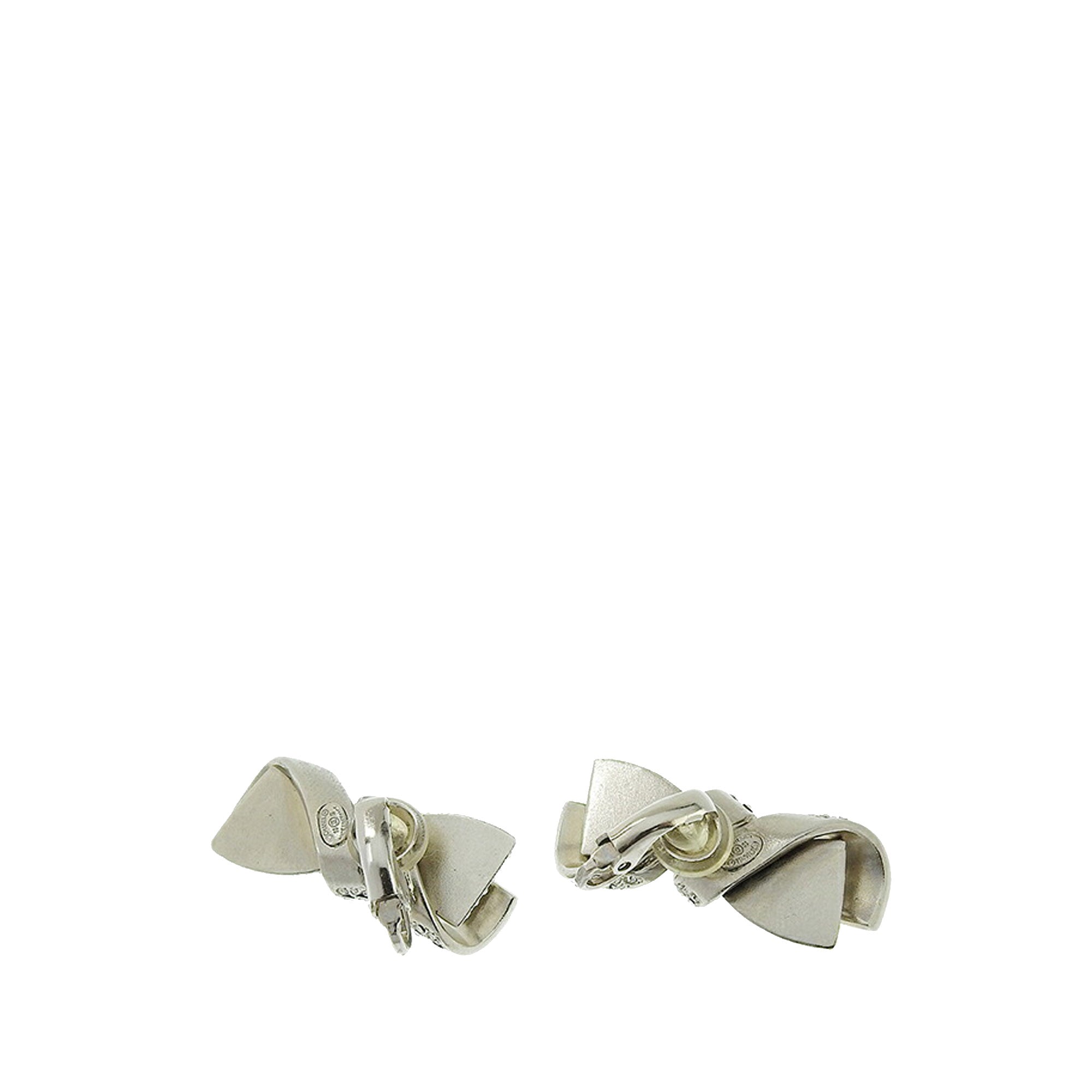 Silver Chanel Silver Rhinestones Ribbon Clip on Earrings - Designer Revival Silver Chanel Silver Rhinestones Ribbon Clip on Earrings - Designer Revival