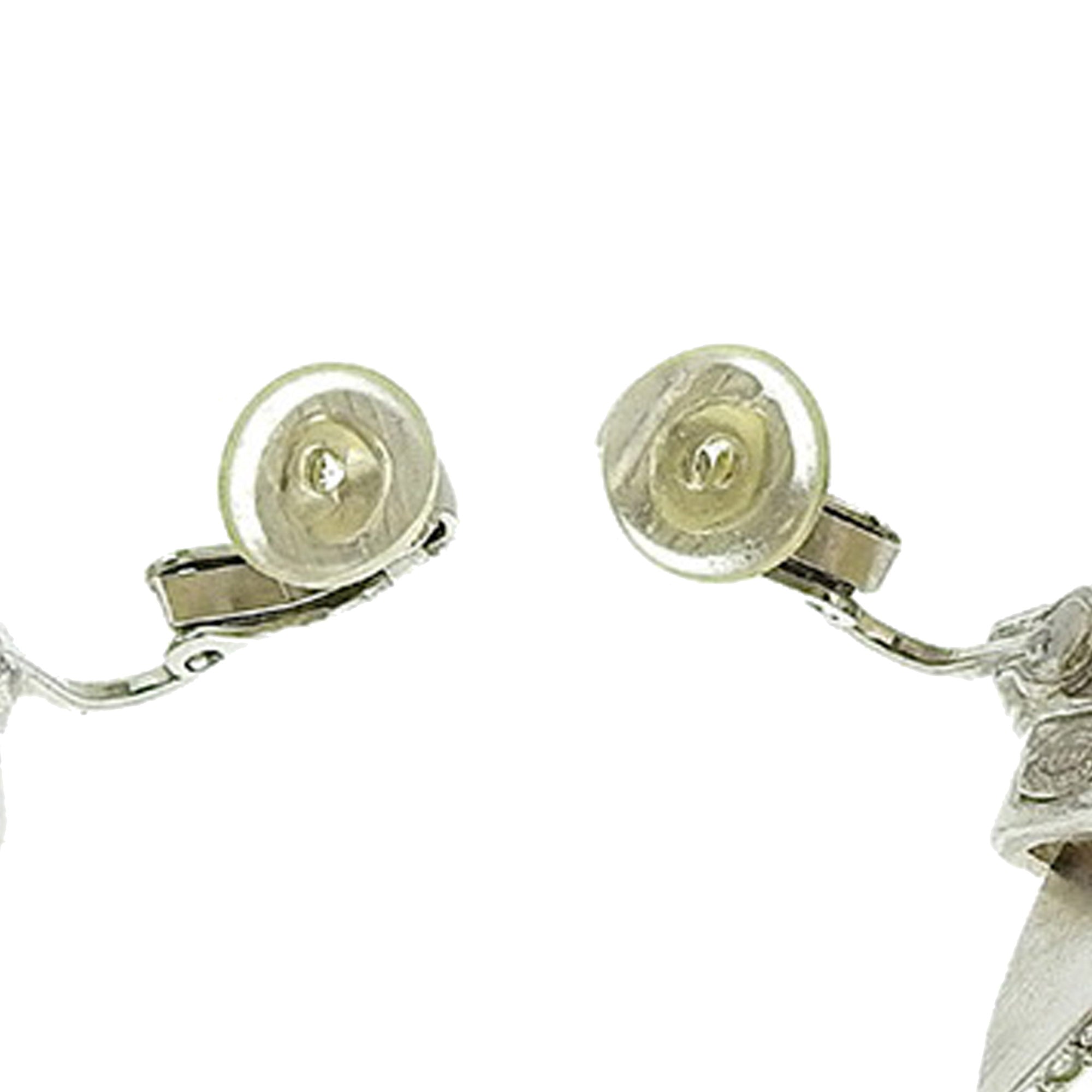 Silver Chanel Silver Rhinestones Ribbon Clip on Earrings