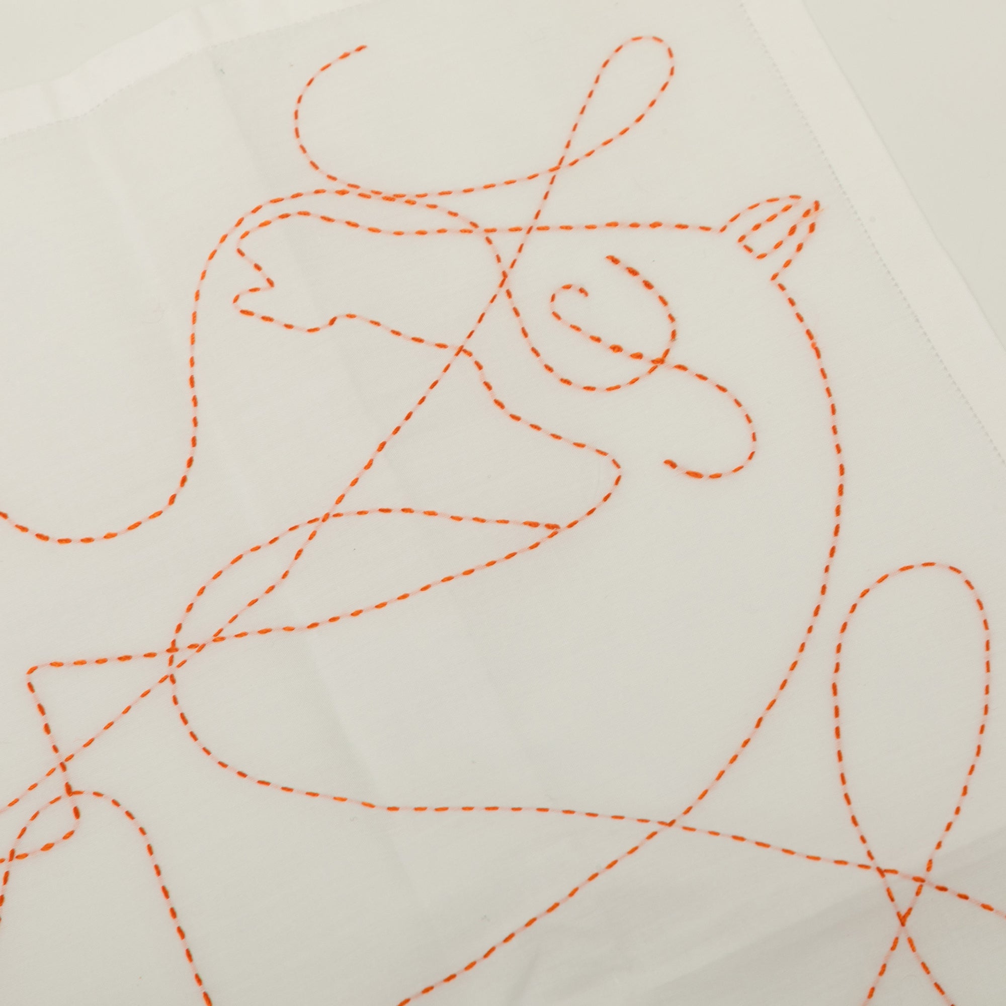 Product Details: White Hermès Embroidered Coup de Fouet Cotton Handkerchief. This handkerchief features the Coup de Fouet embroidery on 100% cotton. 16.1" L x 16.5" W x 0" D.