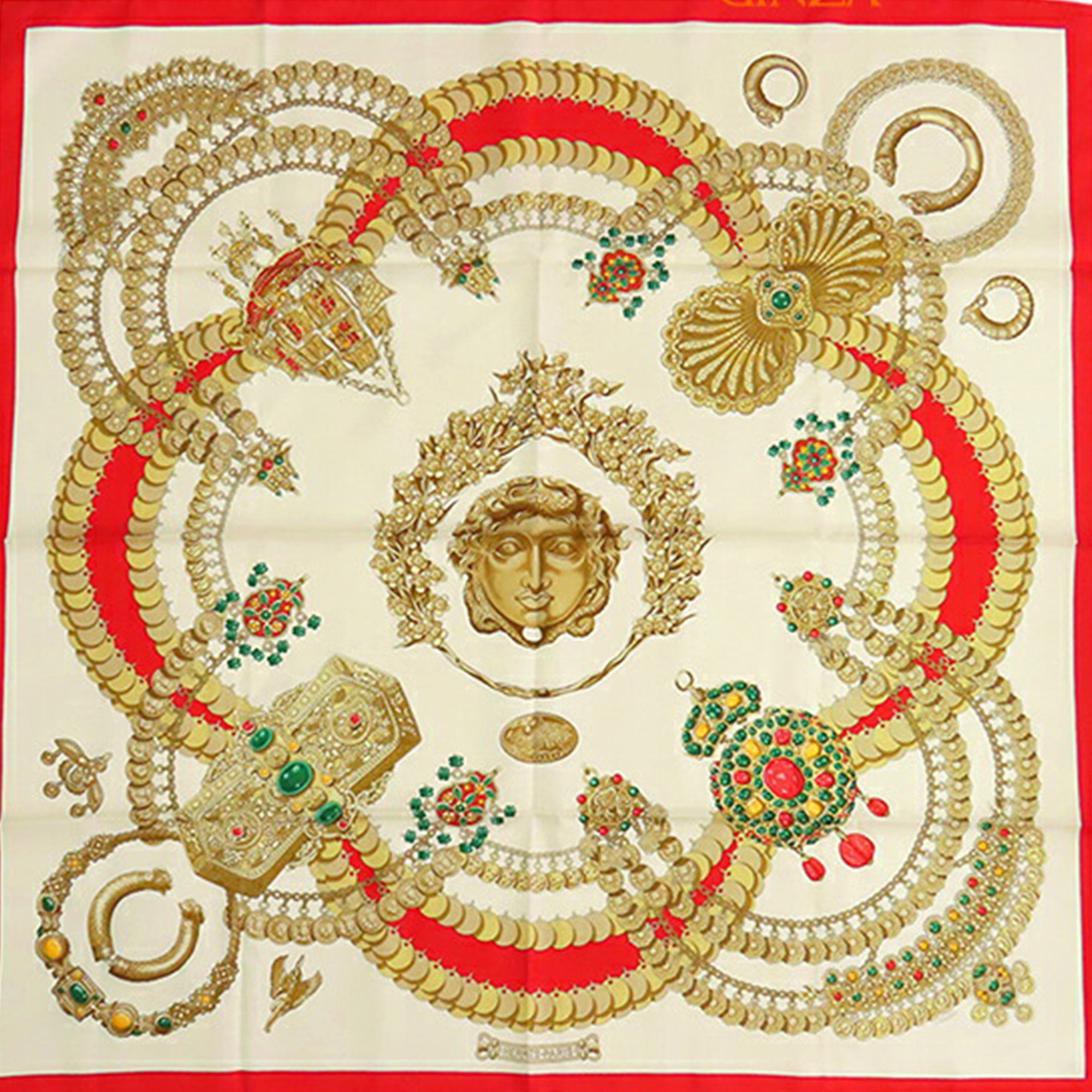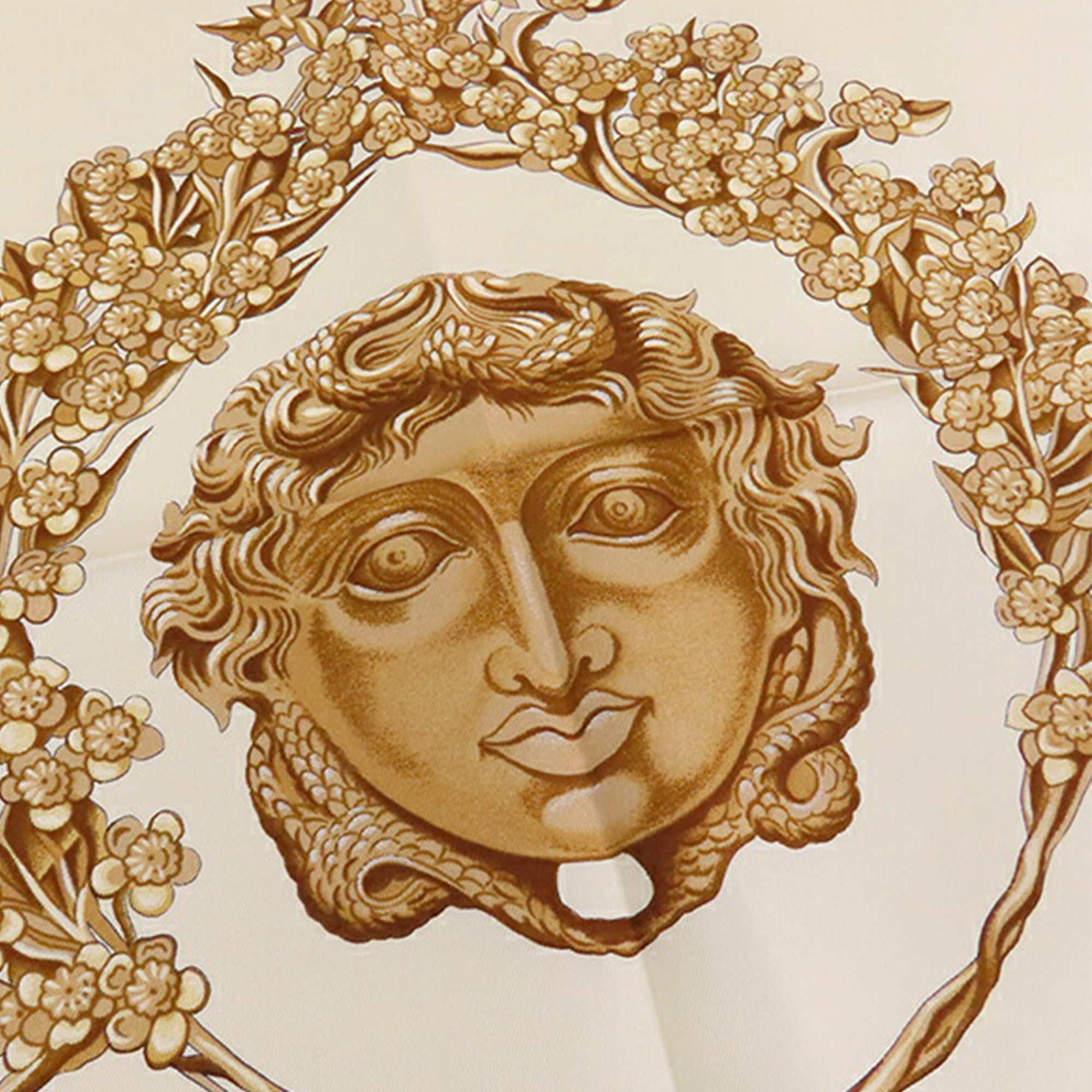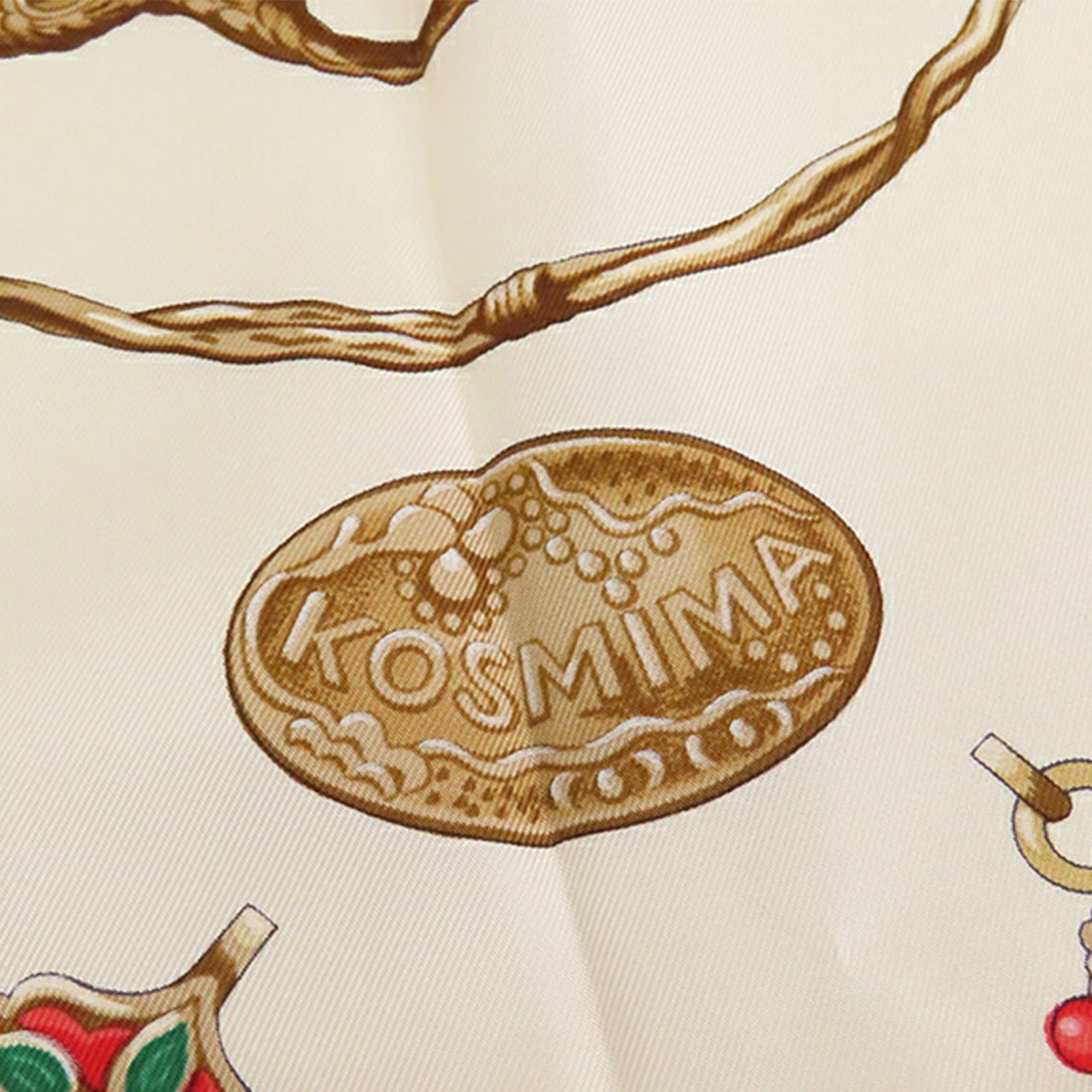 Product Details: White Hermès Kosmima Silk Scarf 90 Scarves. The Kosmima scarf features a print on 100% silk. 35" L x 35.2" W x 0" D.