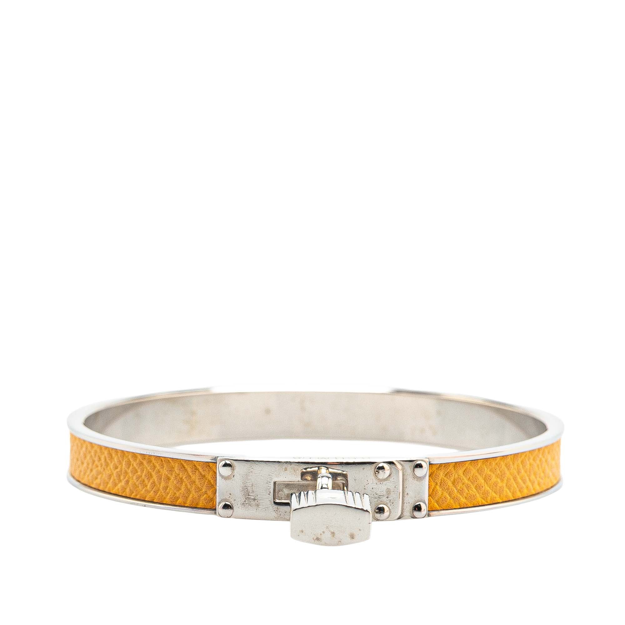 Yellow Hermès Leather Kelly Cadena Lock Bangle Bracelet