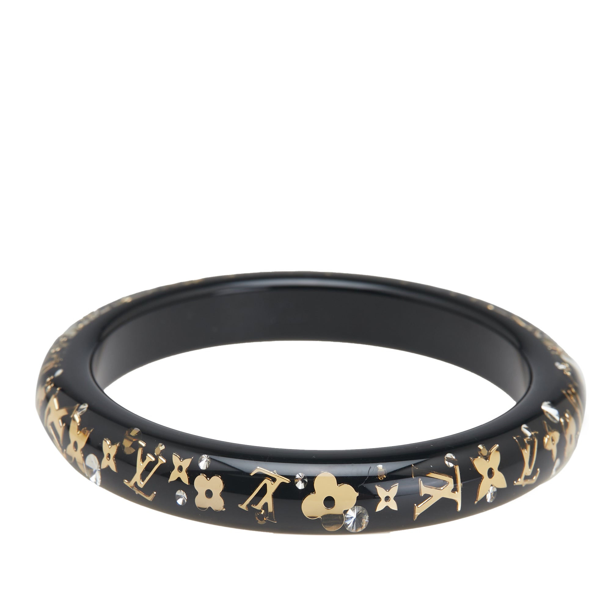 Black Louis Vuitton Narrow Monogram Resin Inclusion Bangle Costume Bracelet