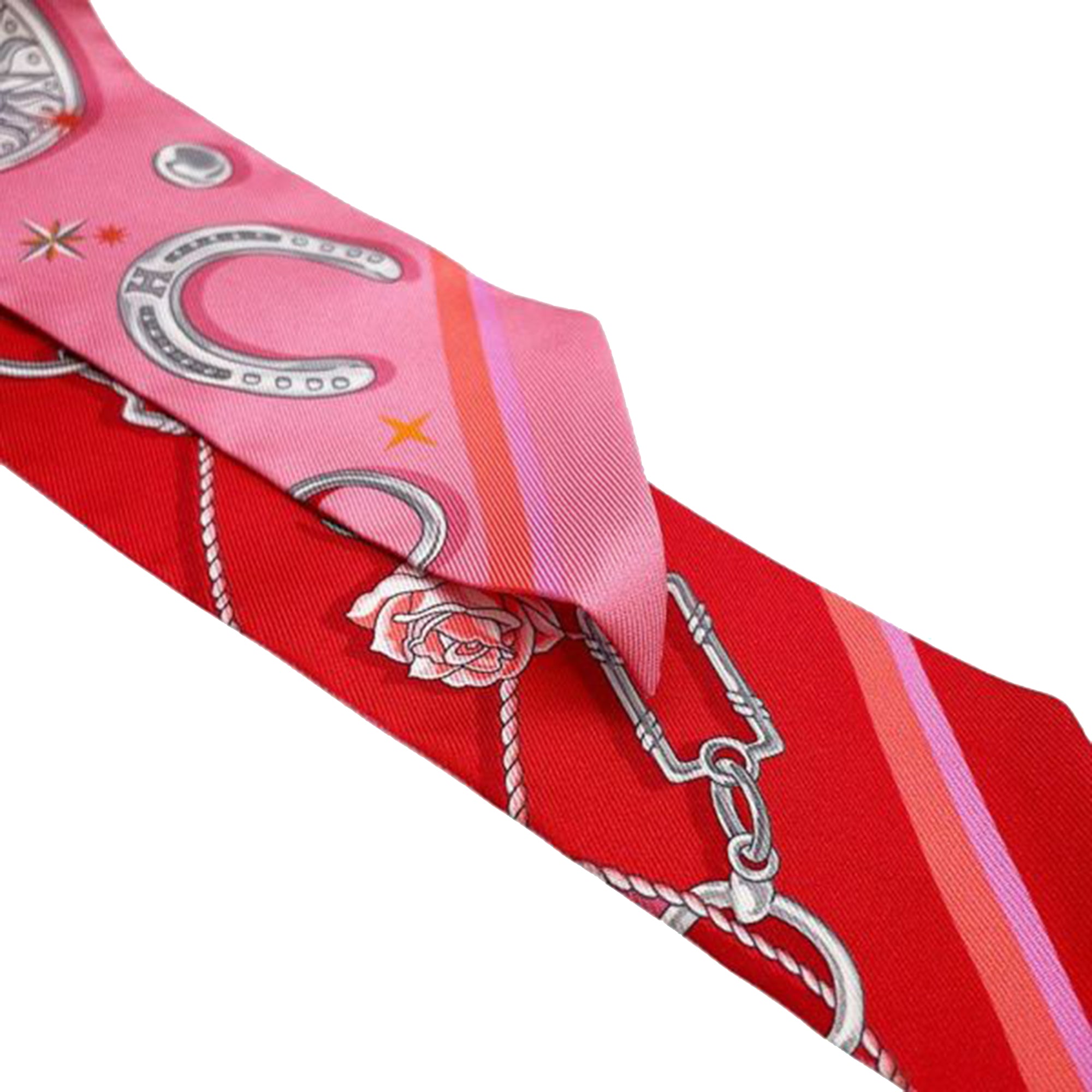 Red Hermès C'est La Fete Silk Twilly Scarf Scarves