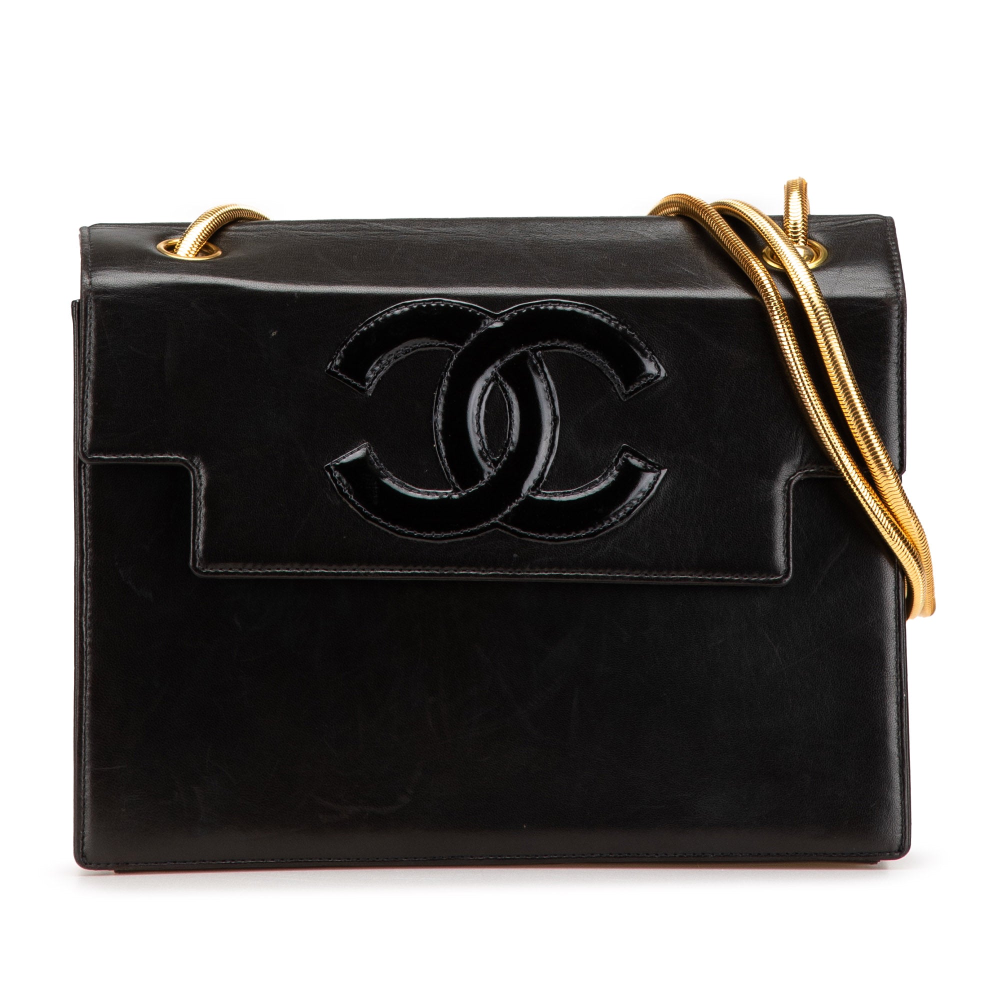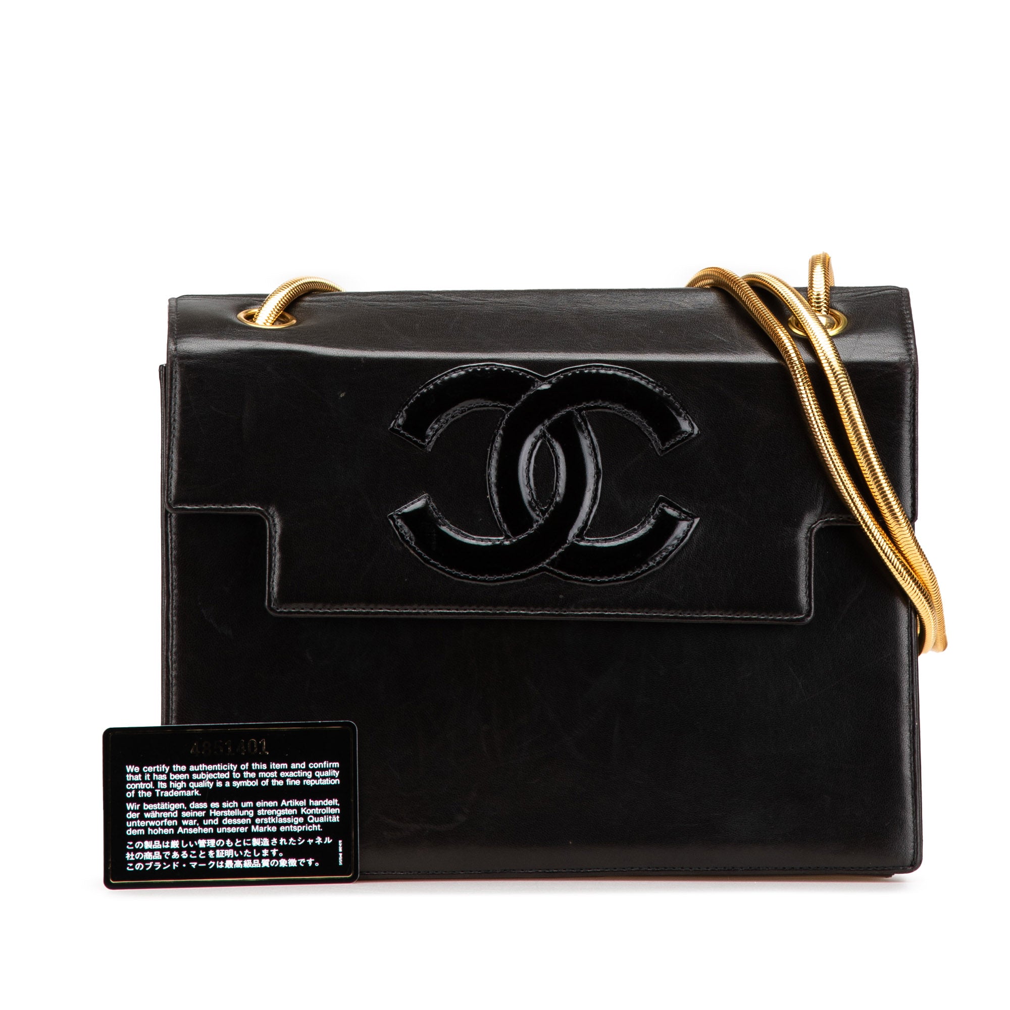 Black Chanel CC Patent Snake Chain Flap Shoulder Bag