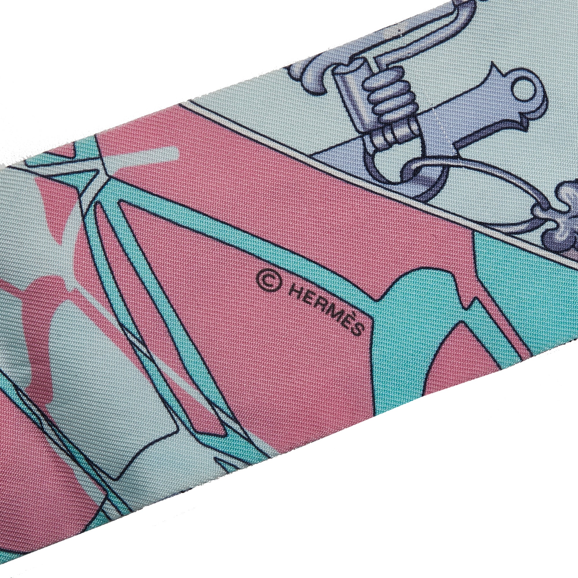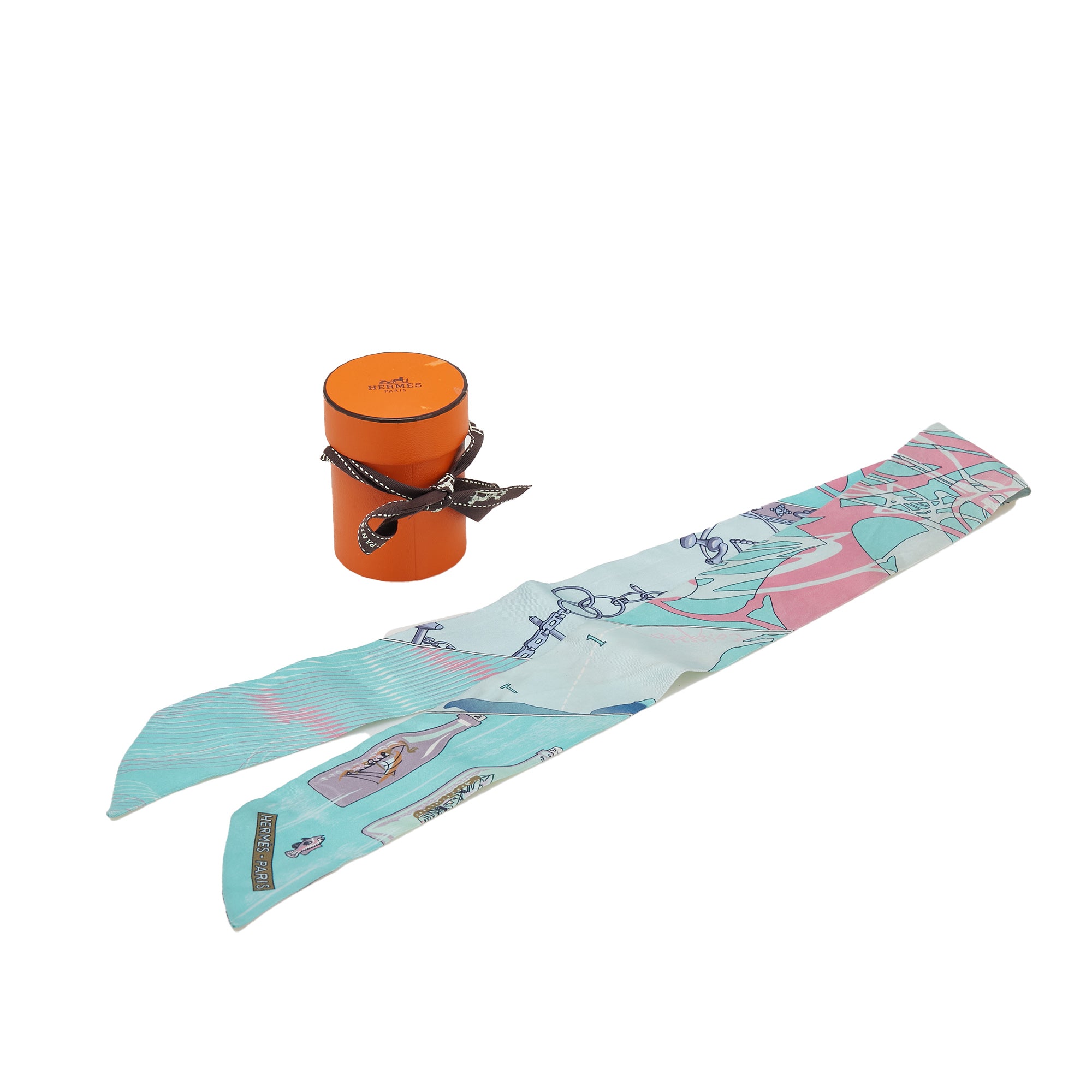 Blue Hermès Caleche Mors Et Bouteilles Silk Twilly Scarf Scarves
