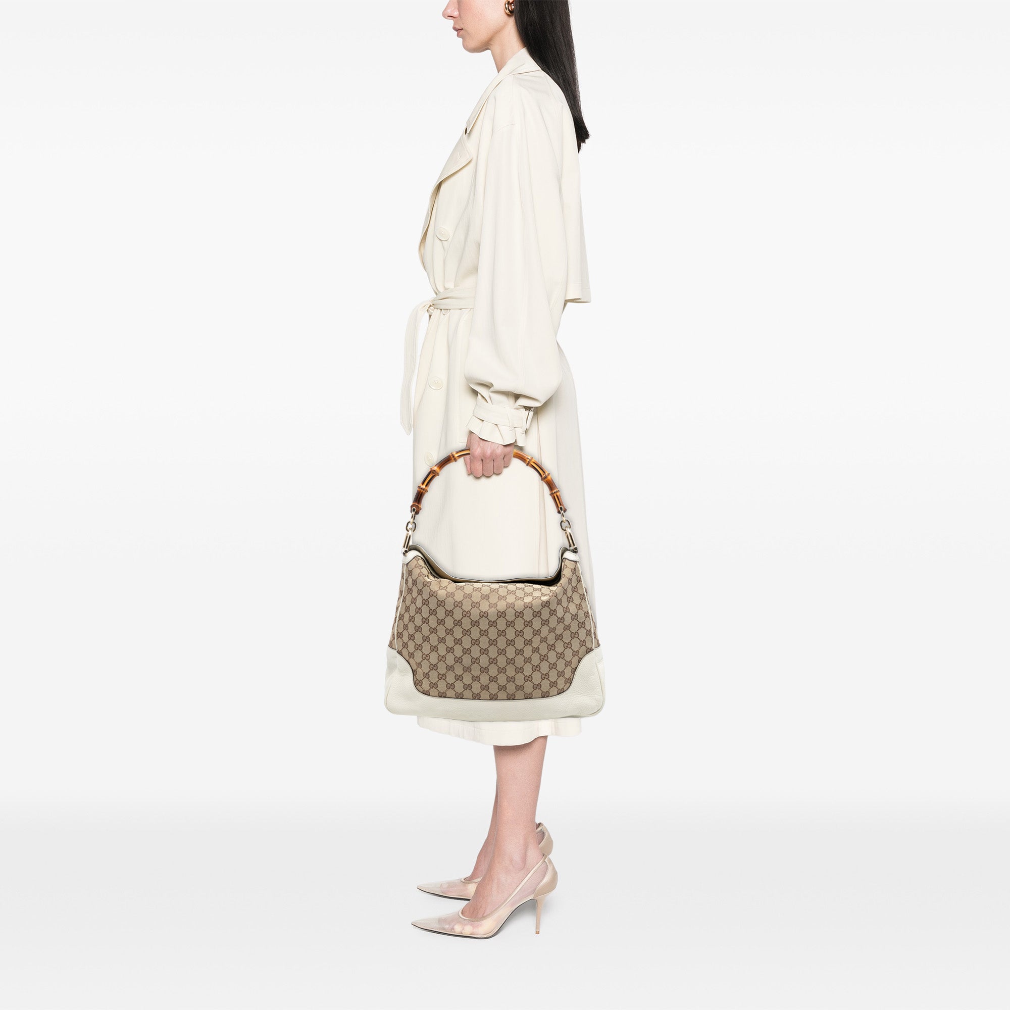 Beige Gucci GG Canvas Bamboo Diana Satchel