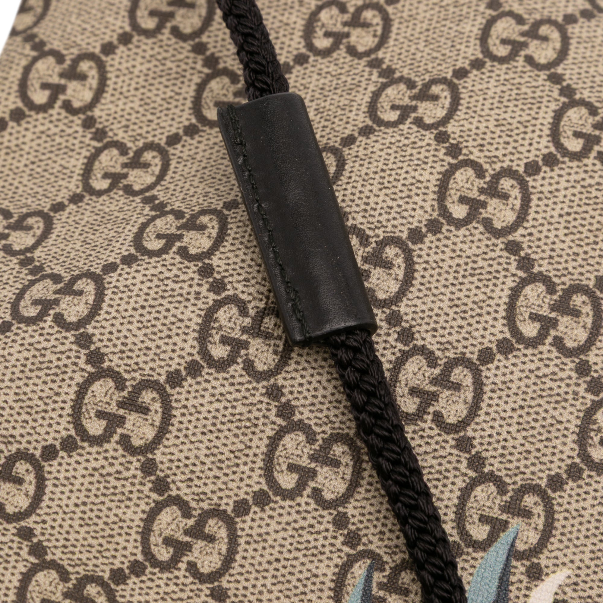 Brown Gucci GG Supreme Angry Cat Drawstring Backpack