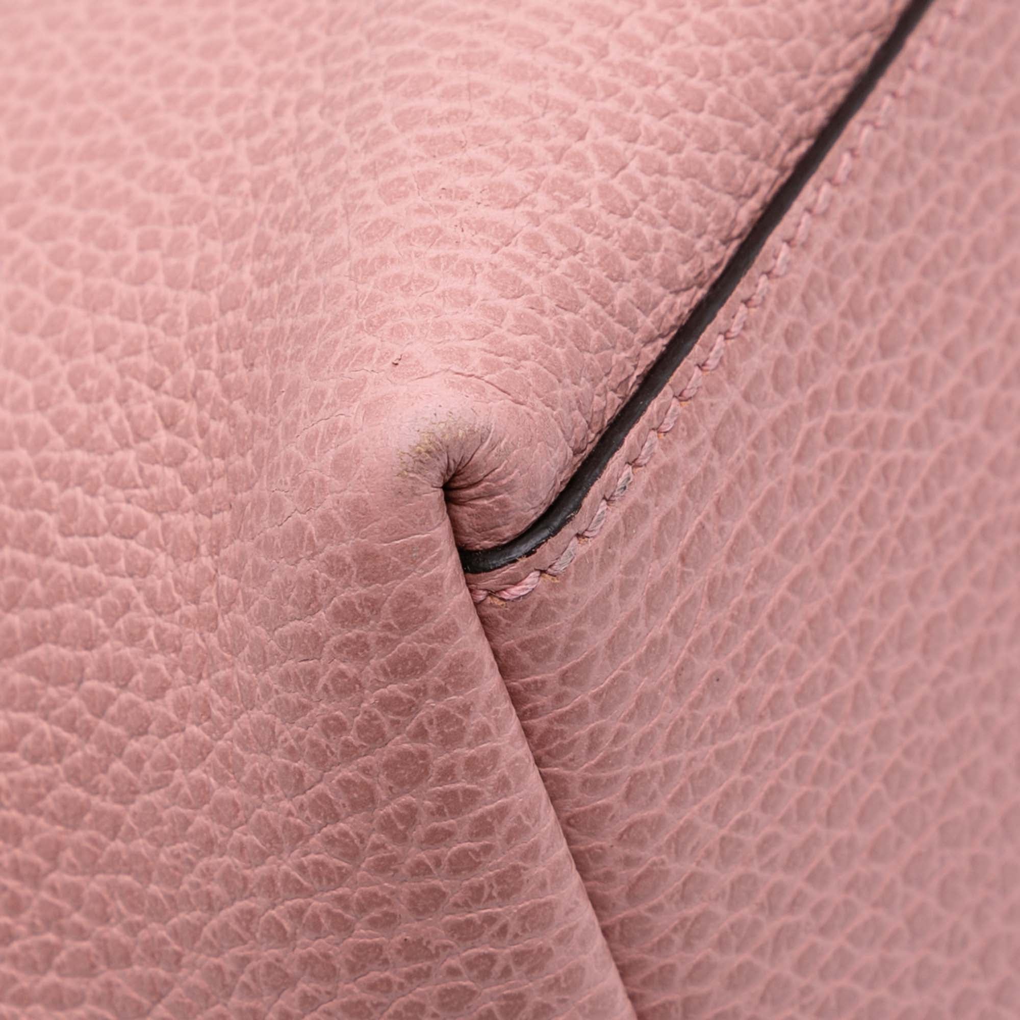 Product Details: Pink Gucci Medium Leather GG Charm Dome Satchel. This satchel features a leather body with interlocking G charm, rolled leather handles, a top zip closure, and interior zip and slip pockets. 10.8" L x 12.8" W x 5.9" D, 5.7" drop. Serial number 449651 493075.
