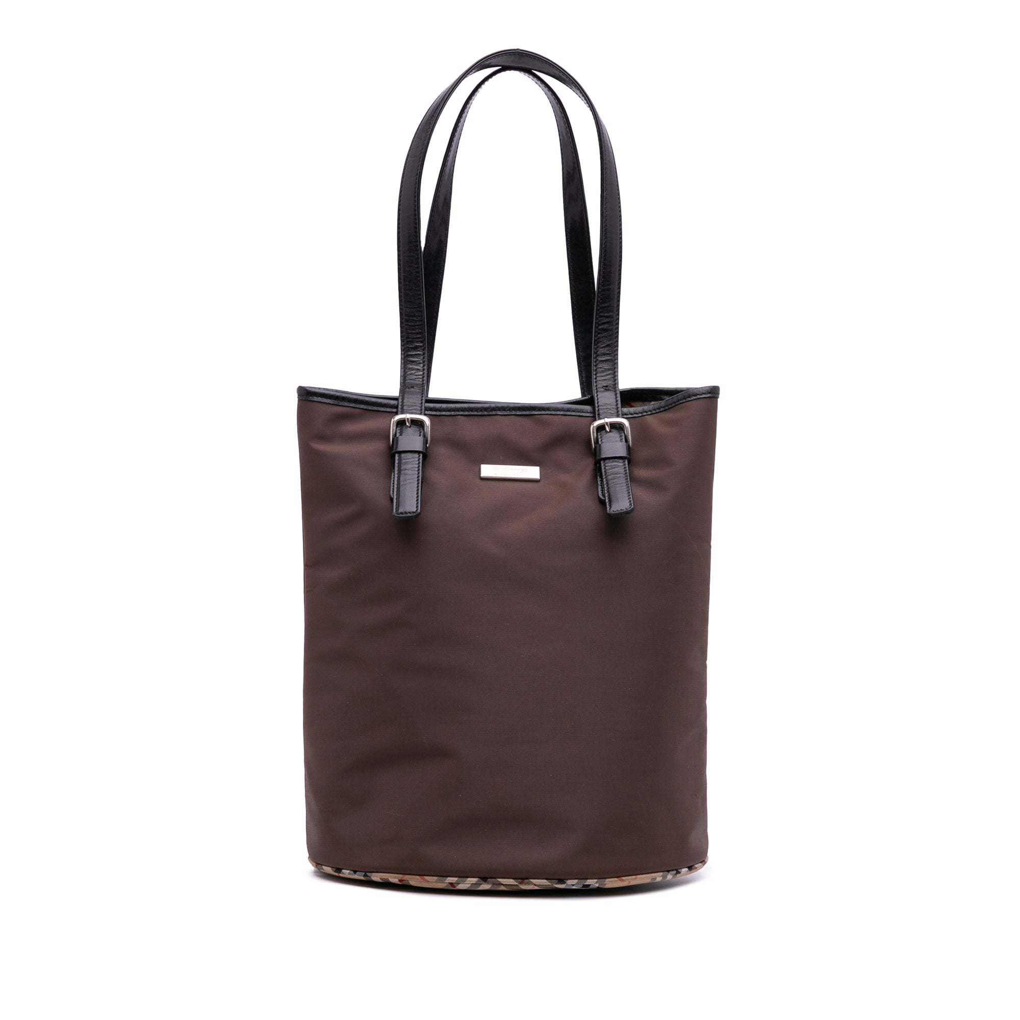 Brown Burberry Nova Check Trimmed Nylon Tote - Designer Revival Brown Burberry Nova Check Trimmed Nylon Tote - Designer Revival