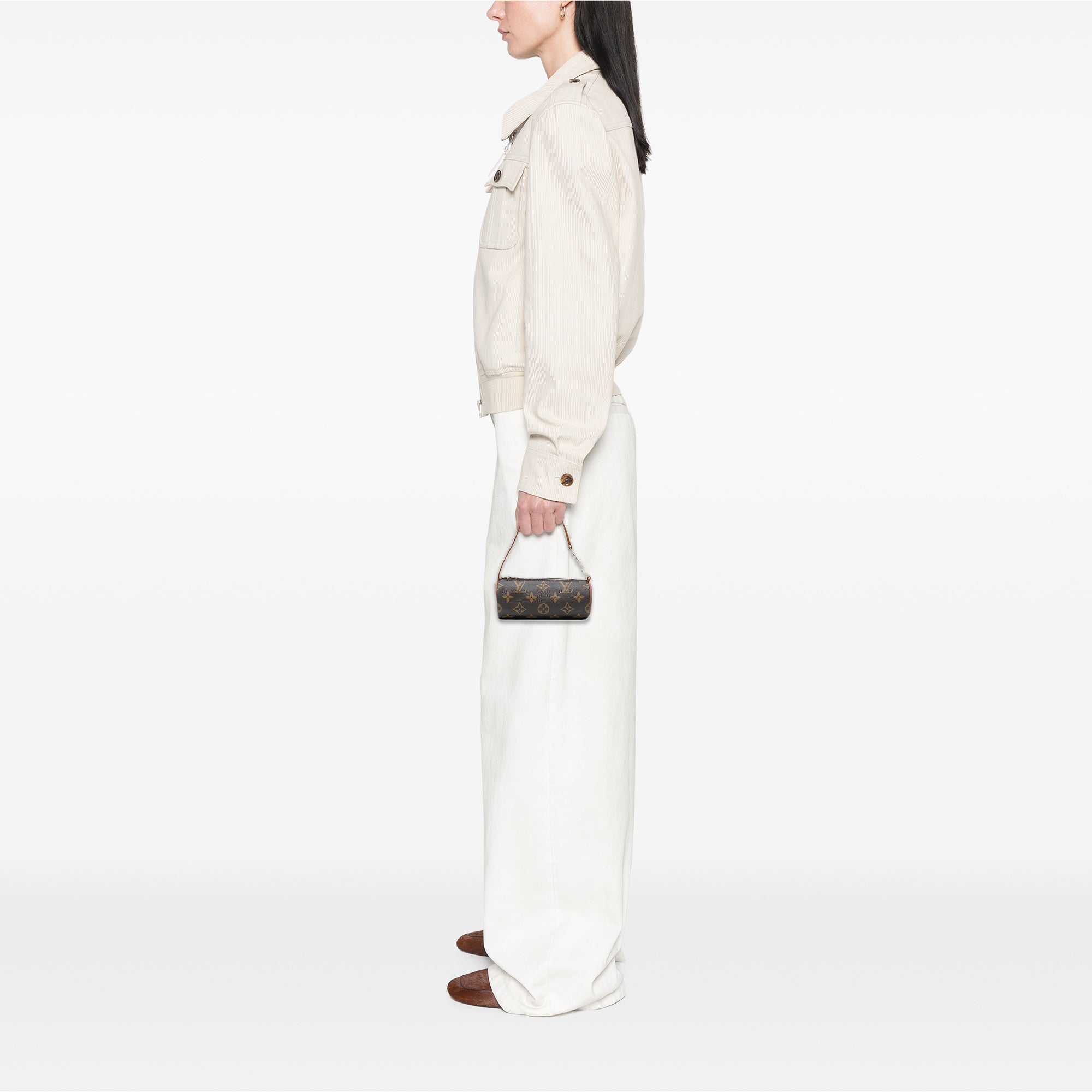 Product Details: Brown Louis Vuitton Monogram Papillon Pochette Handbag. The Pochette Papillon features a monogram canvas body, a detachable leather strap, and a top zip closure. 2.4" L x 6.1" W x 2.4" D, 6.3" drop.