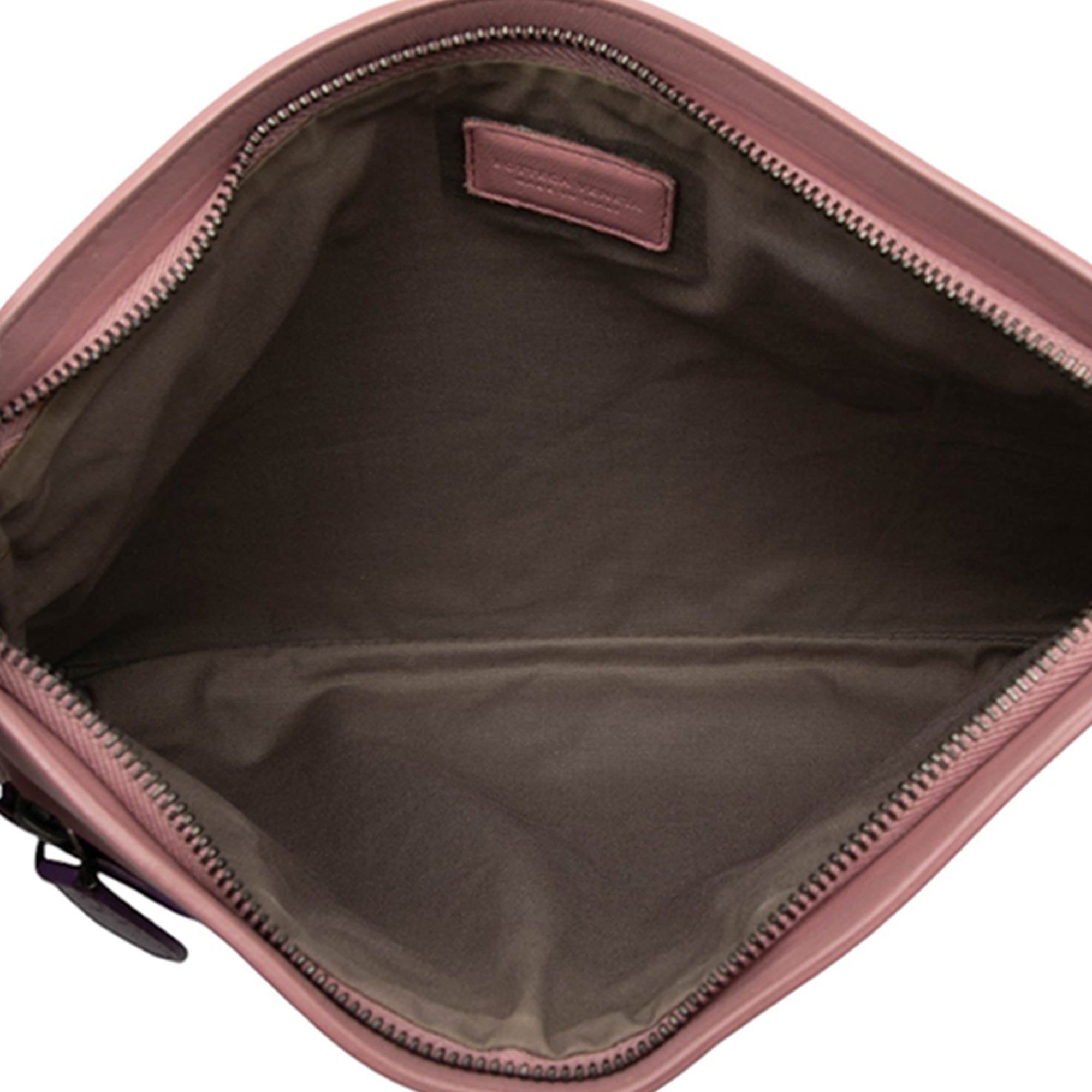 Product Details: Purple Bottega Veneta Bicolor Nappa Intrecciato Wristlet Clutch. This clutch bag features a woven nappa leather, a top zip closure, and an exterior zip pocket. 6.7" L x 9.8" W x 0.4" D, 6.7" drop. Serial number B04441194P.