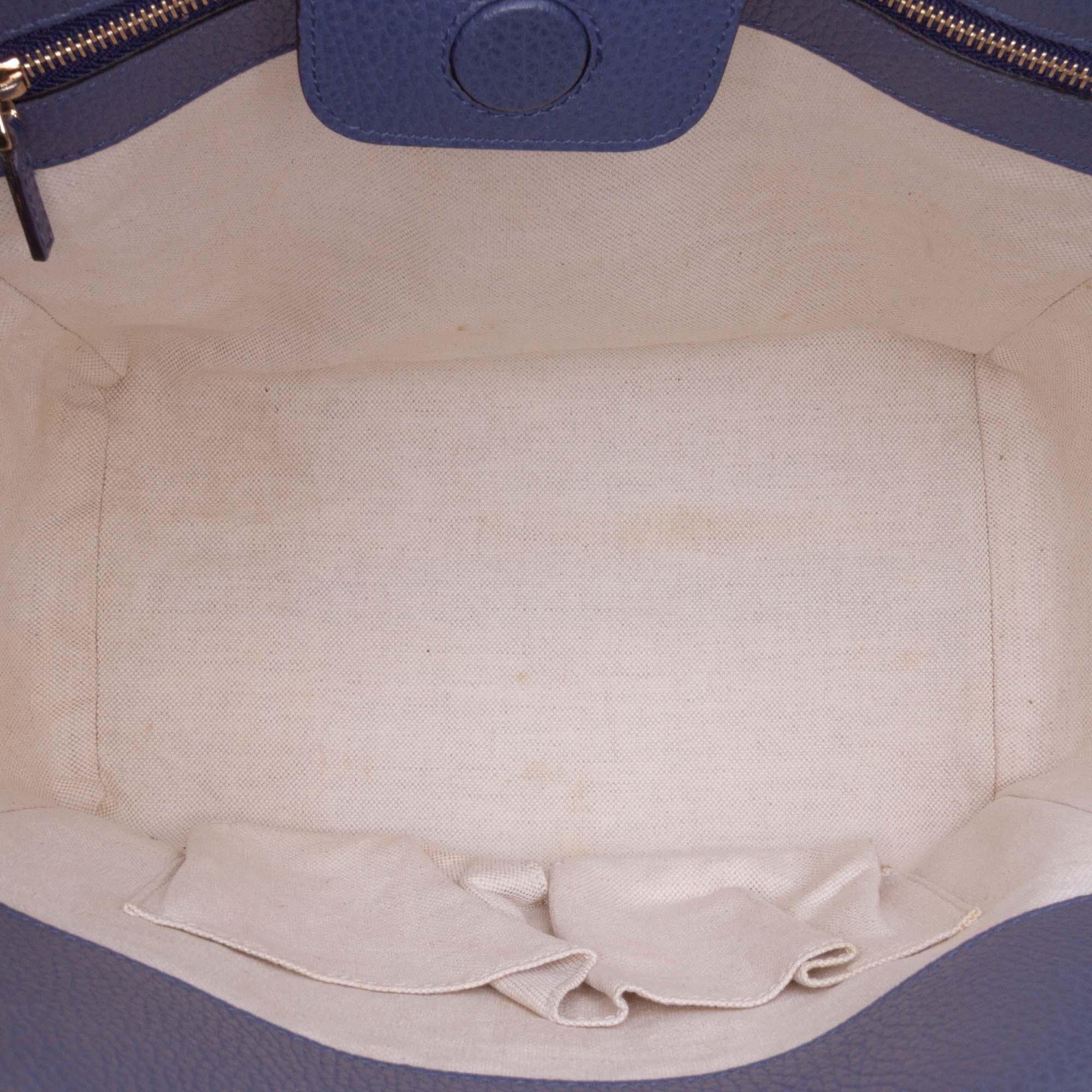 Please note this is a pre-owned item that may display signs of wear consistent with the condition listed above and shown in photos. Designer Revival guarantees this is an authentic Purple Gucci Medium Leather Swing Tote or 100% of your money back. Learn more about our authentication process.