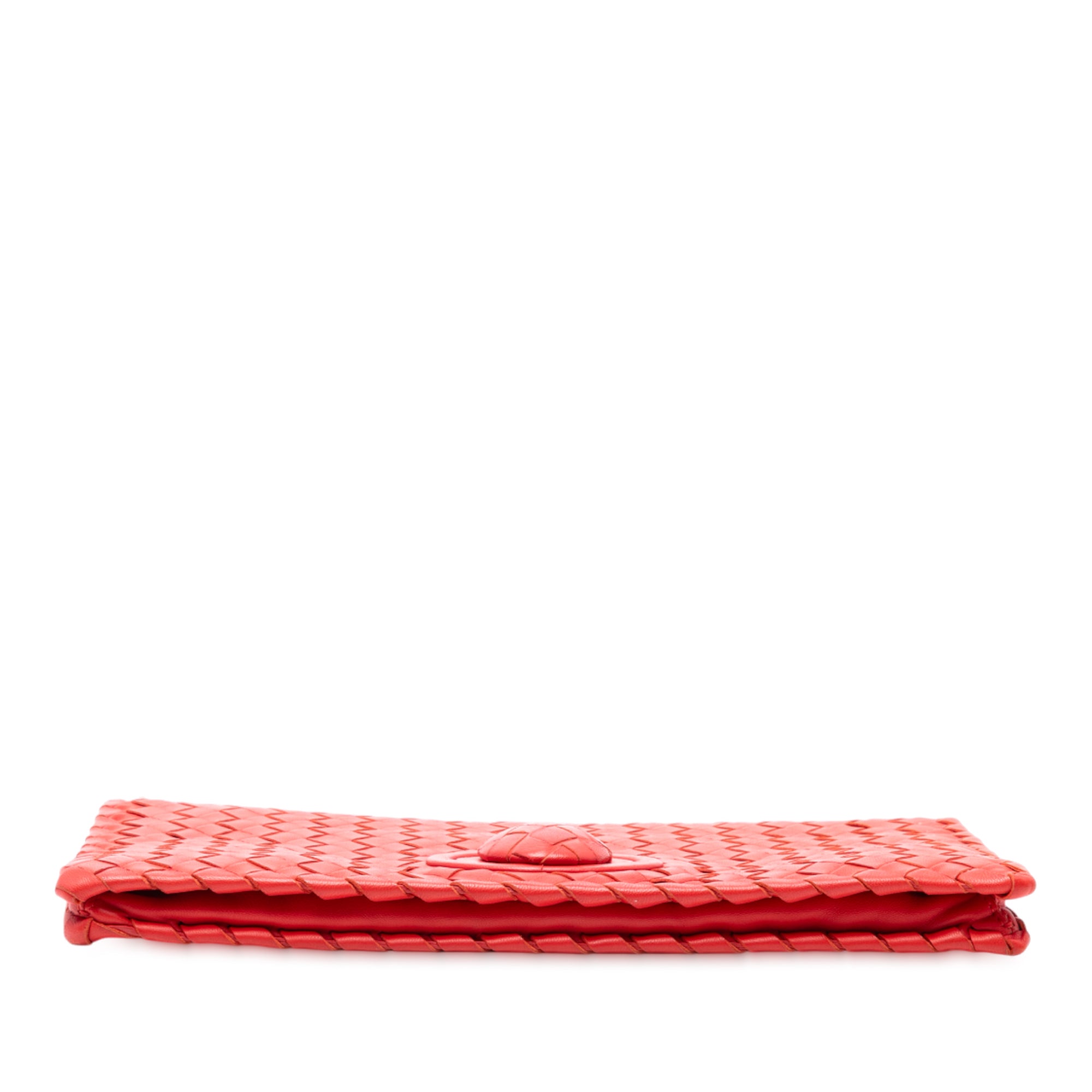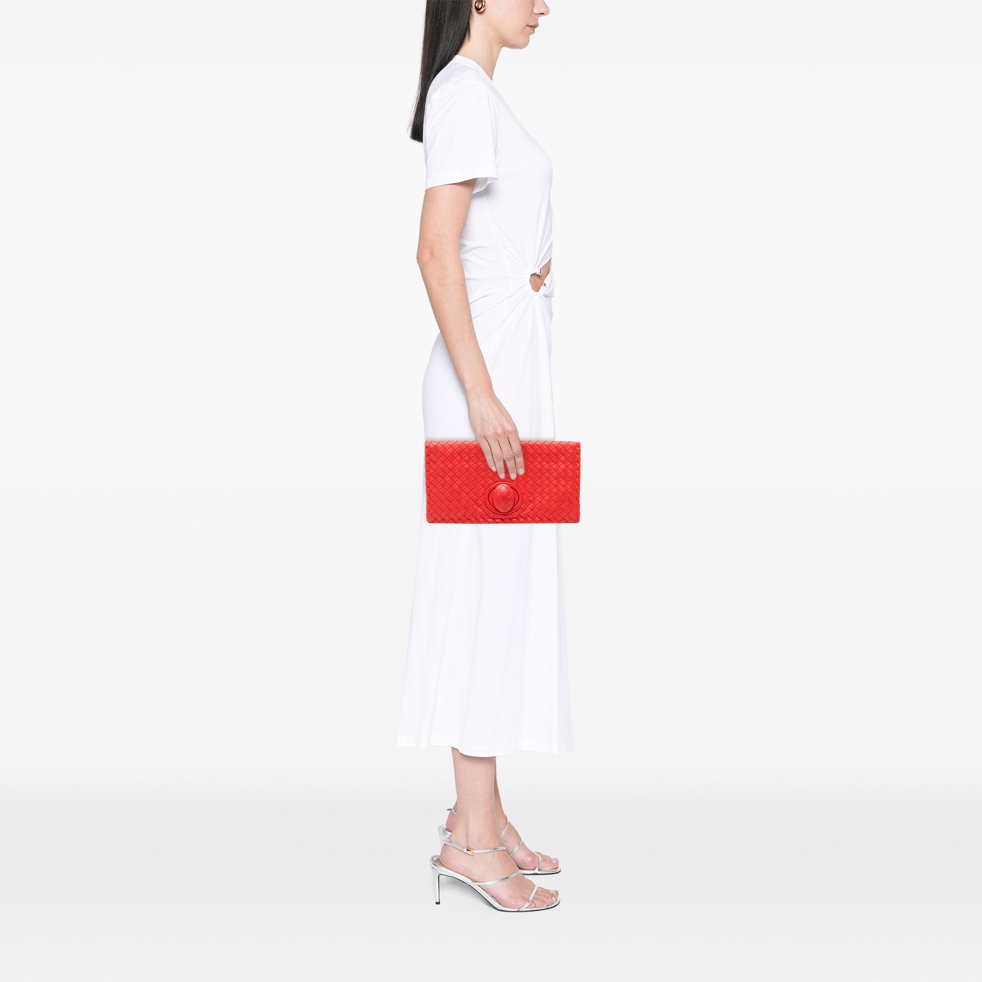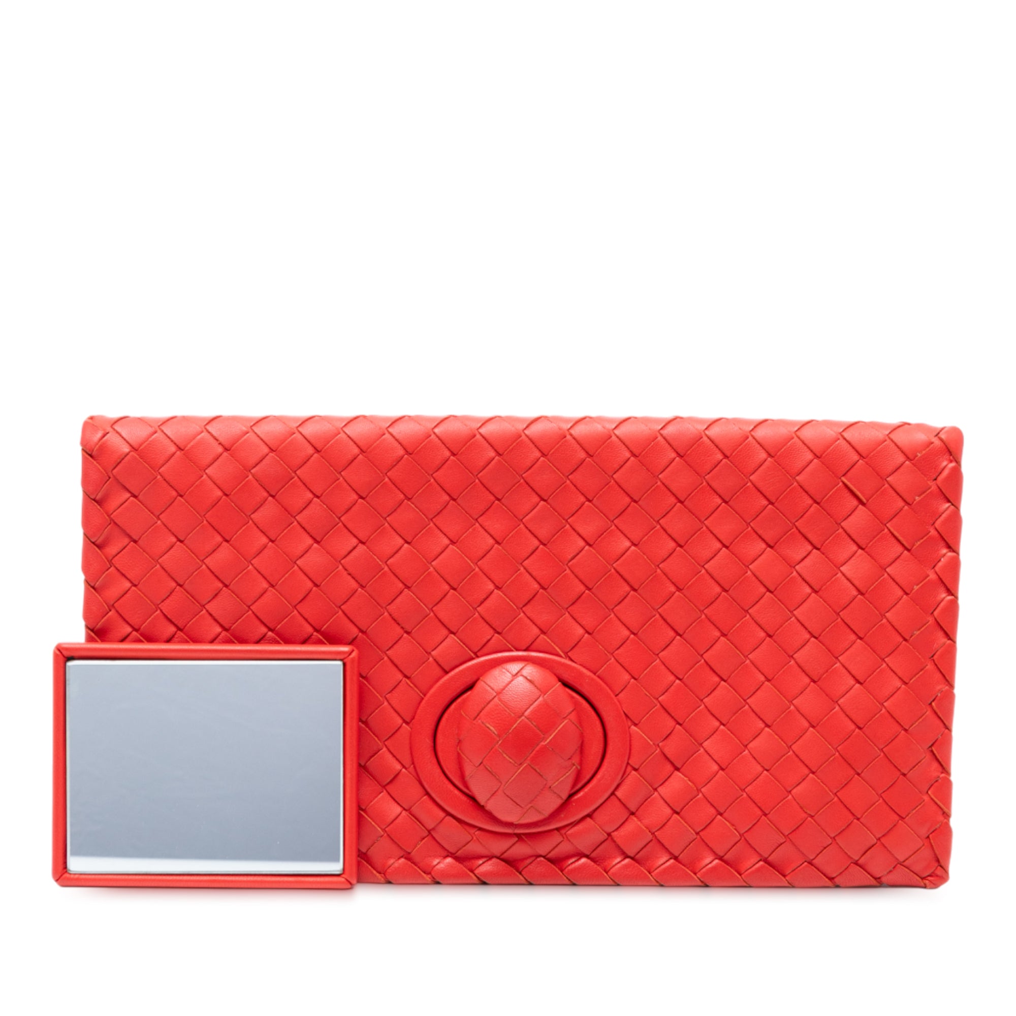 Red Bottega Veneta Nappa Intrecciato Turn Lock Clutch