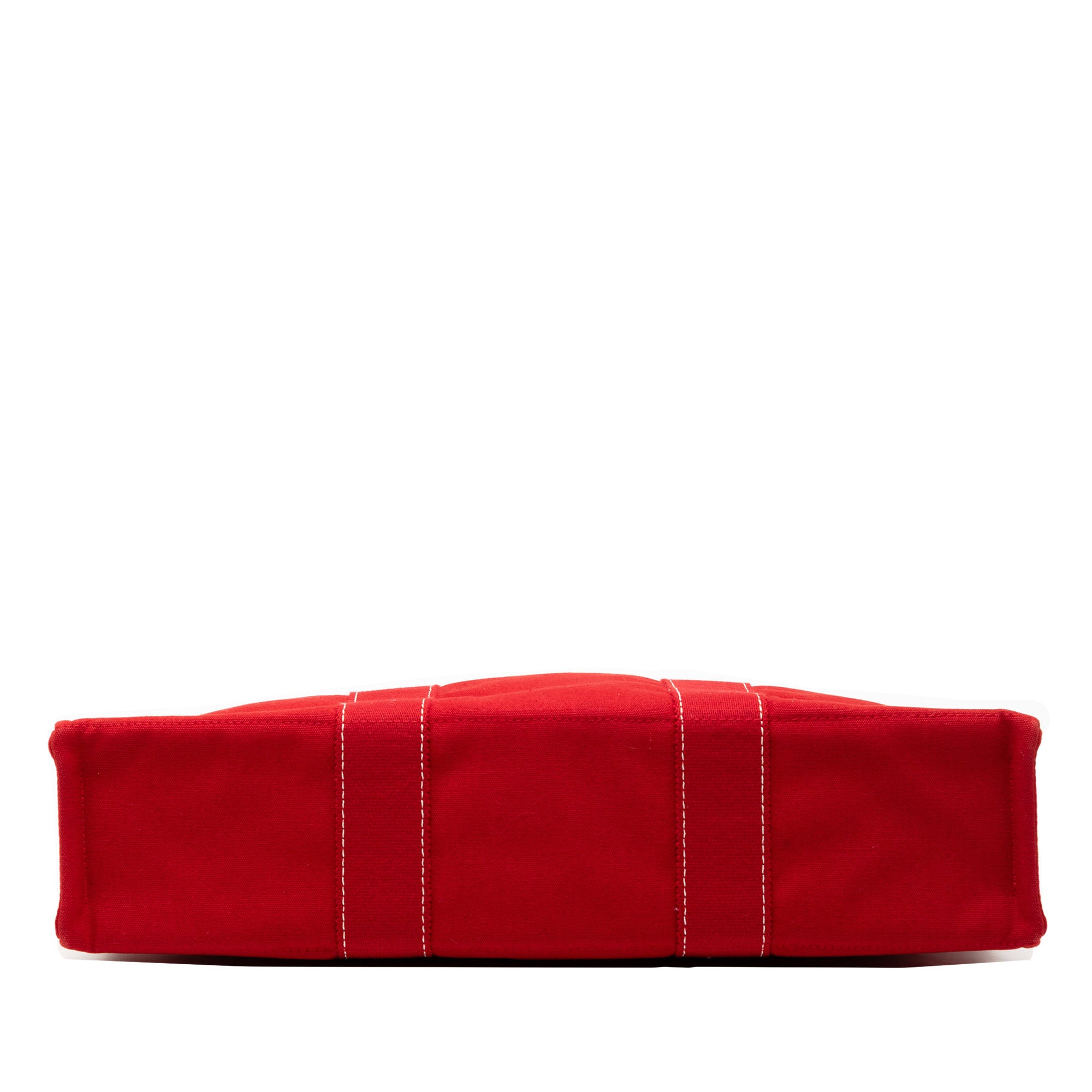 Red Hermès Canvas Sac Deauville MM Tote Bag