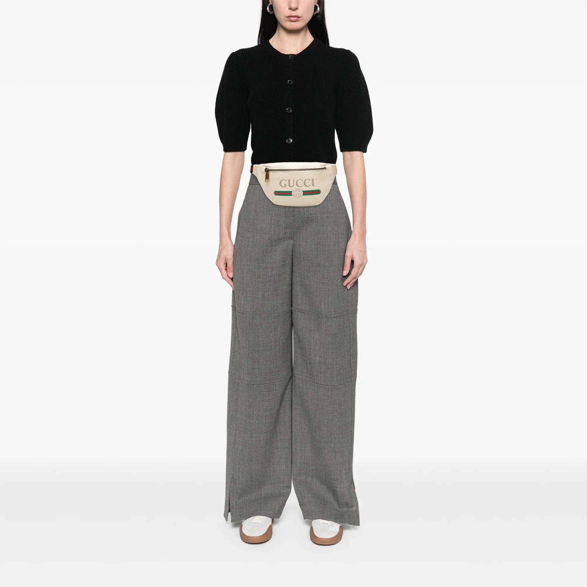 White Gucci Leather Logo Belt Bag