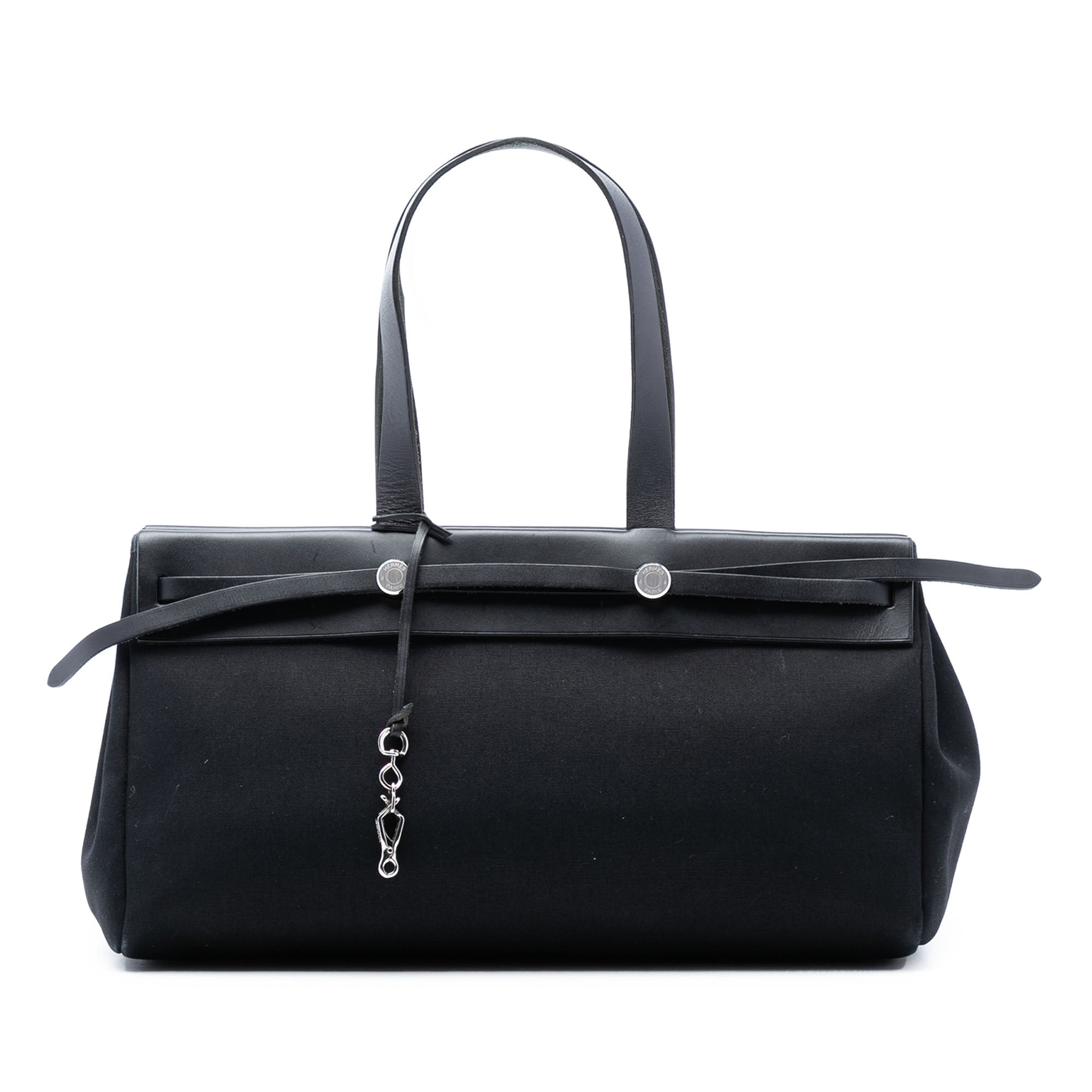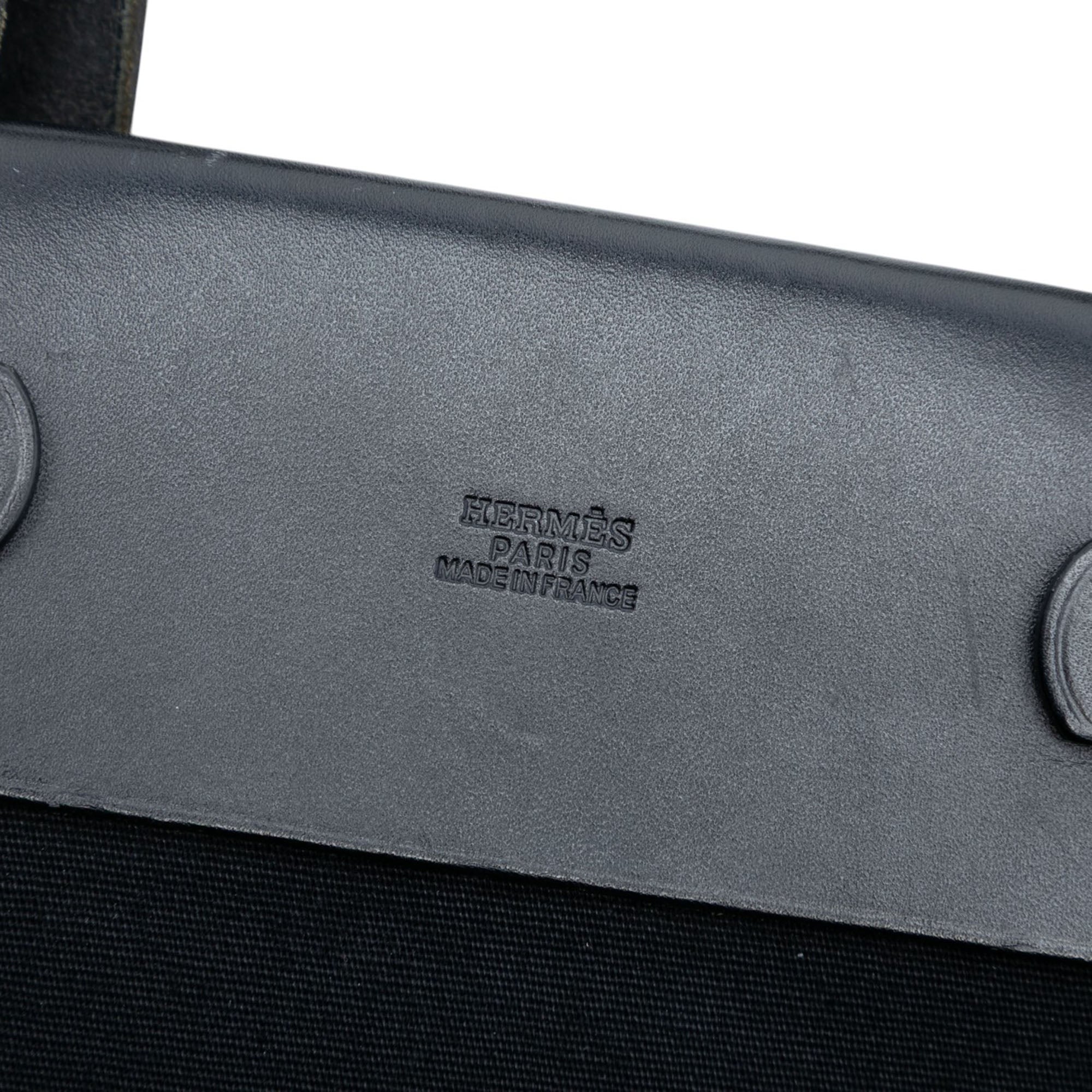 Black Hermès Toile and Vache Hunter Leather Herbag Cabas MM Tote Bag