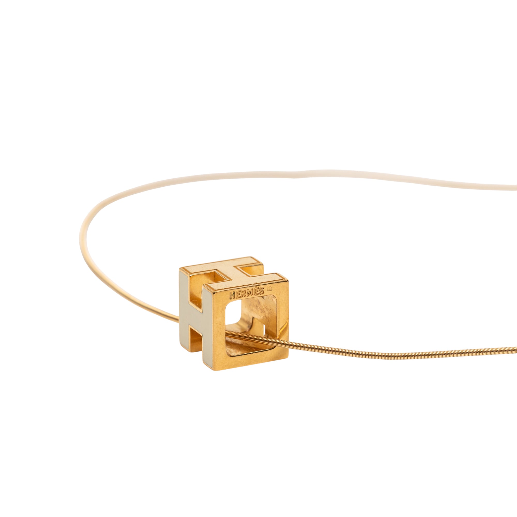 Gold Hermès Gold Plated Enamel Cage D H Pendant Necklace