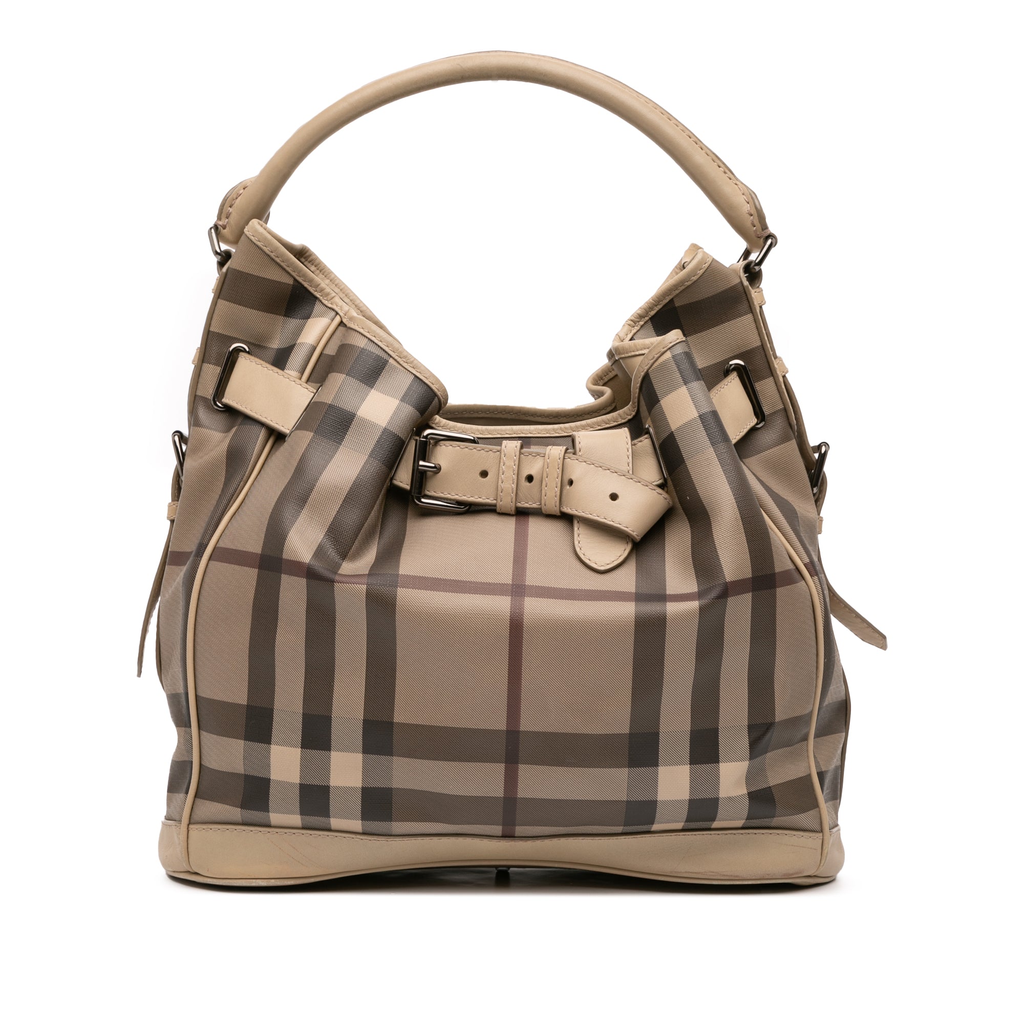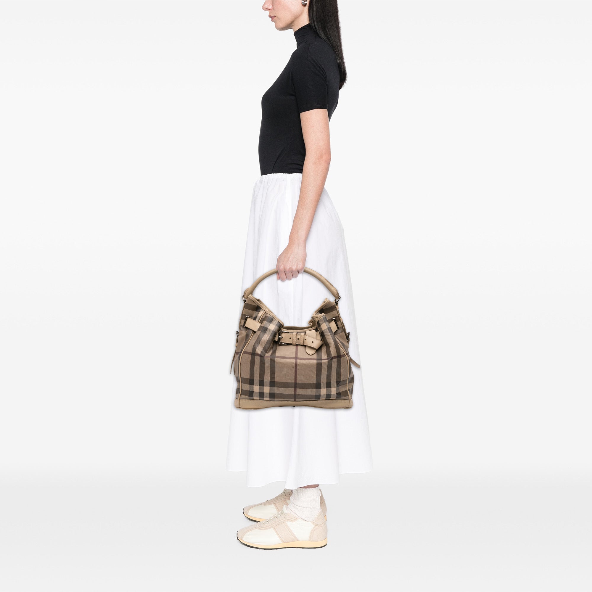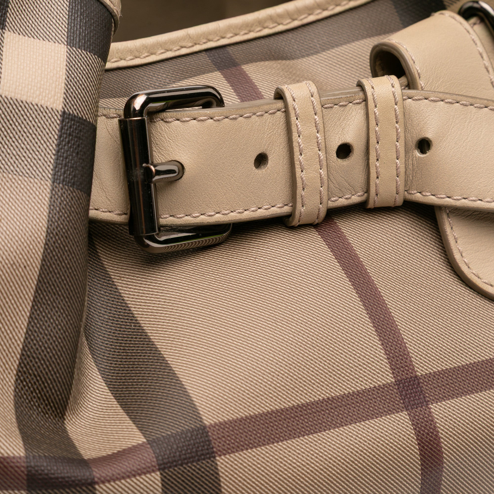 Brown Burberry Medium Smoke Check Coated Canvas Walden Belted Hobo Shoulder Bag