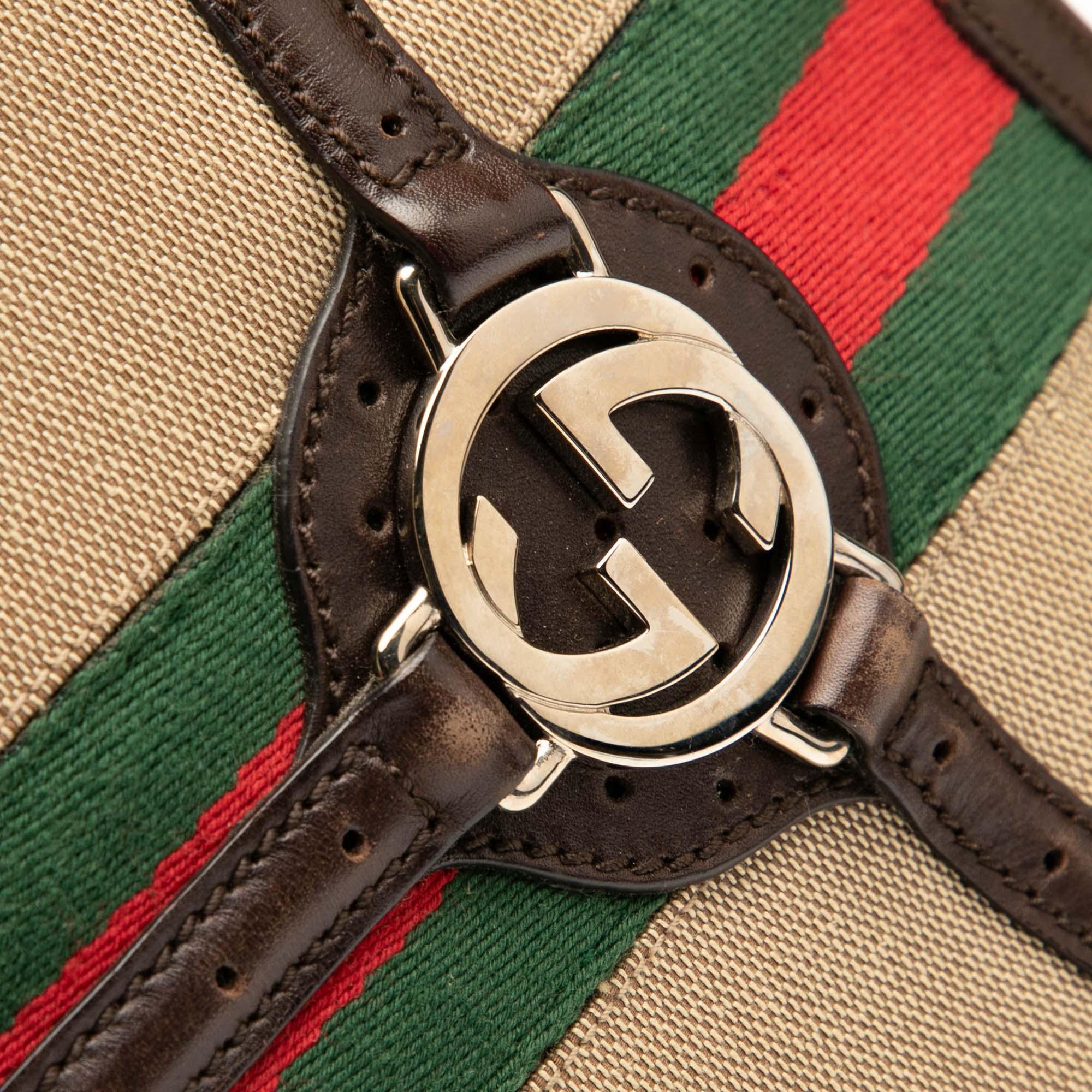 Brown Gucci Canvas Web Reins Hobo